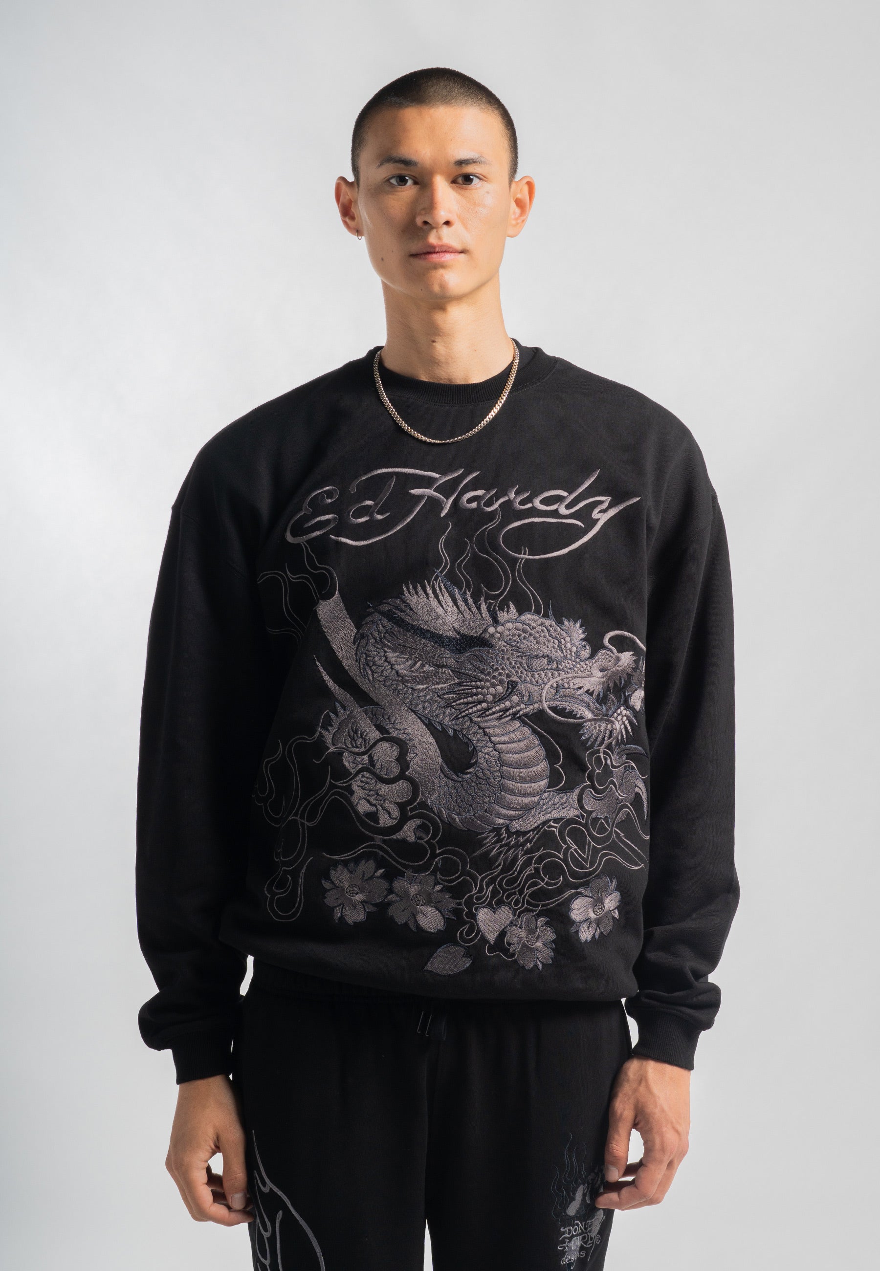 This jumper, featuring vintage-inspired tonal embroidery, pays homage to Ed Hardy's iconic designs.