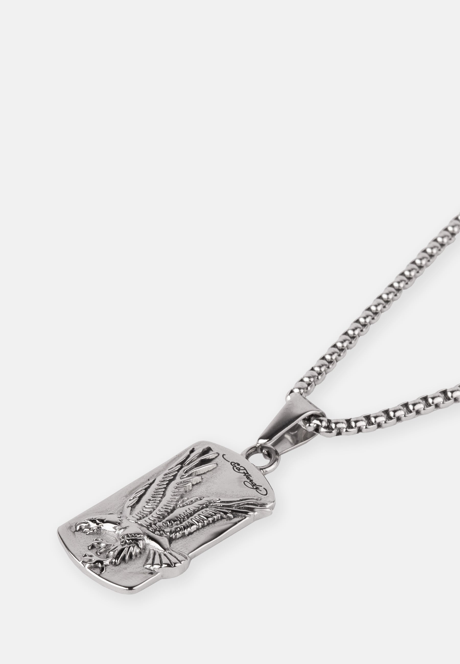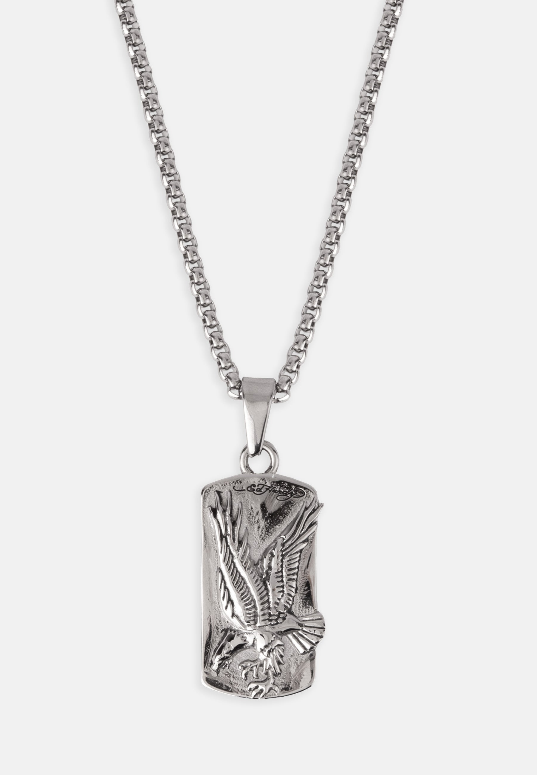 Stainless Steel Rounded box chain necklace with custom cast Ed Hardy Eagle in a silver finish.