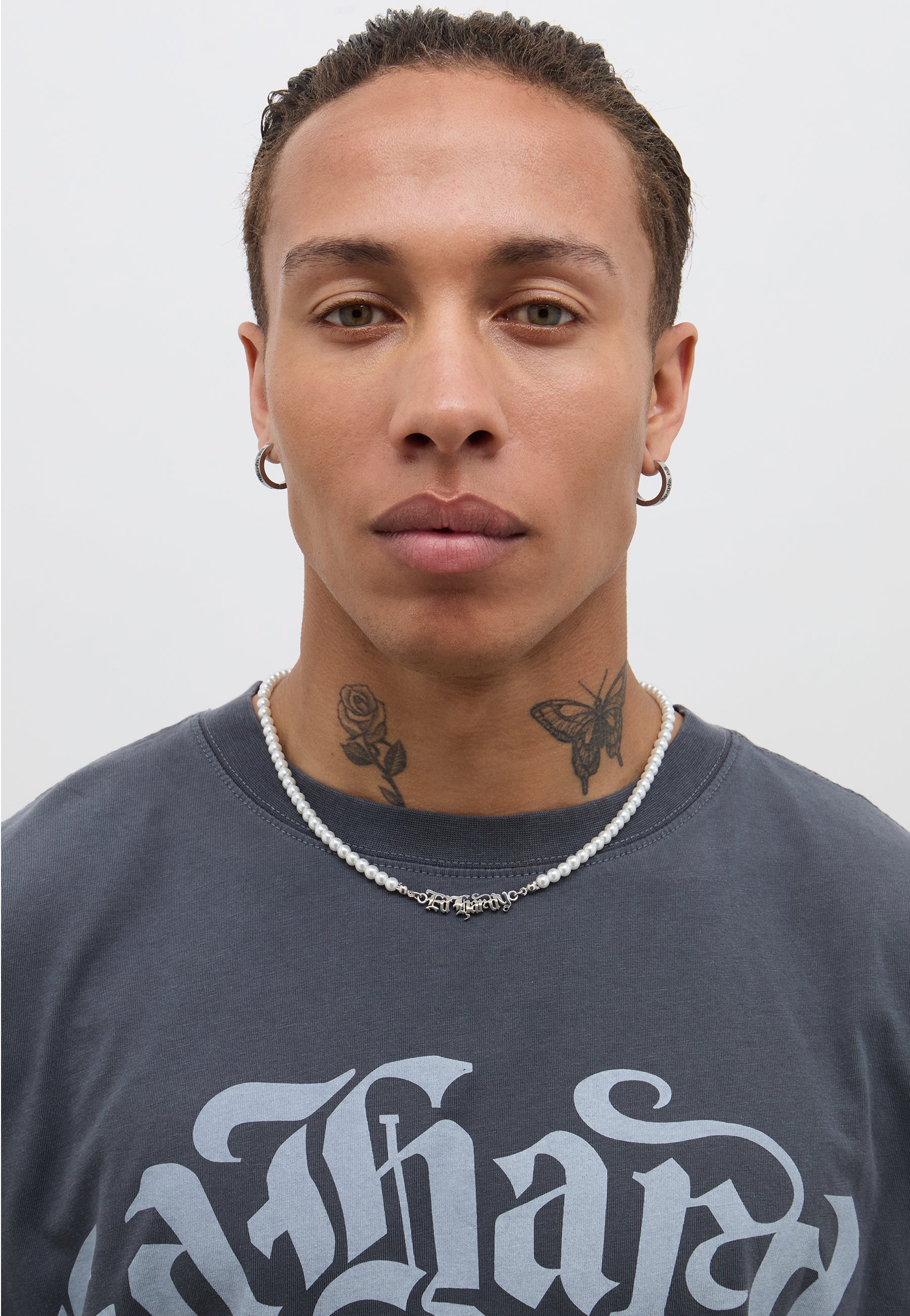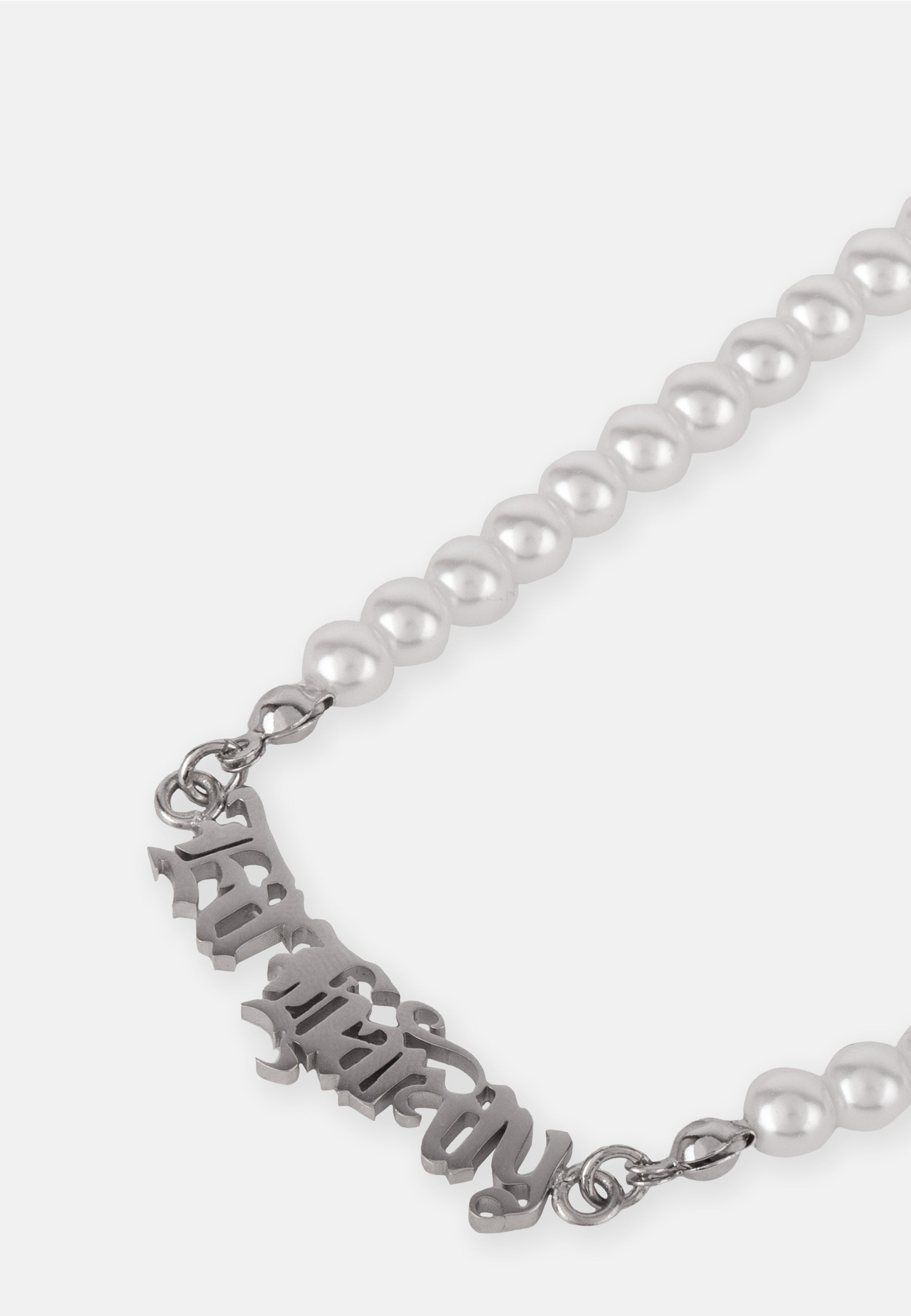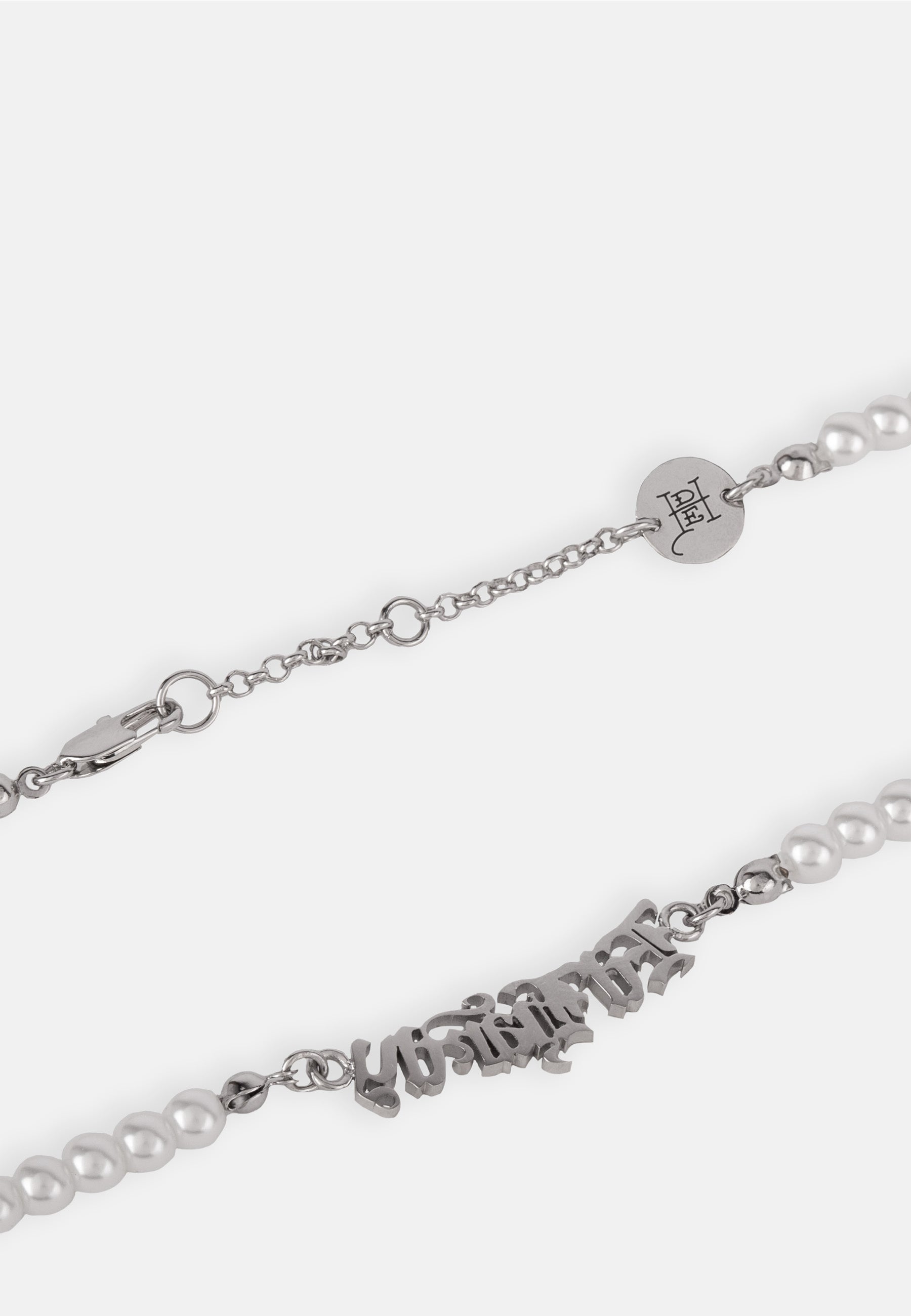 Stainless Steel Gothic Logo Pearl Necklace - Silver