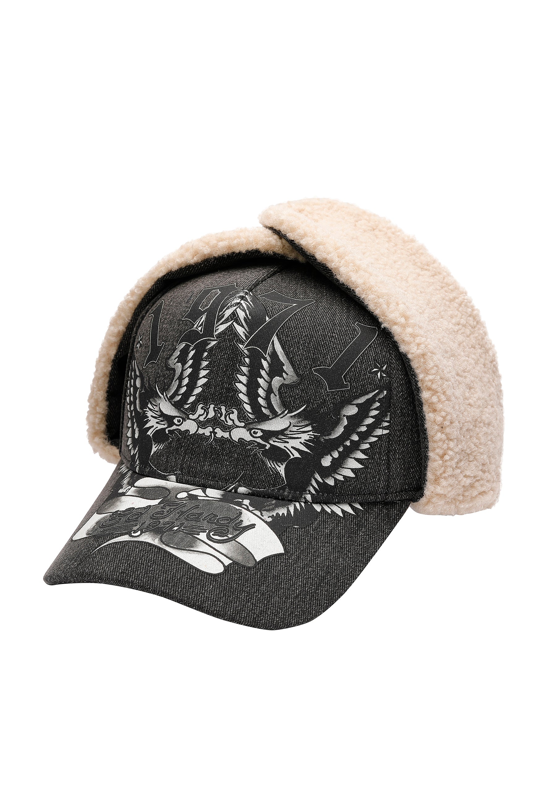 1971 EAGLE ACID WASH 5 PANEL TRAPPER CAP in Black