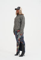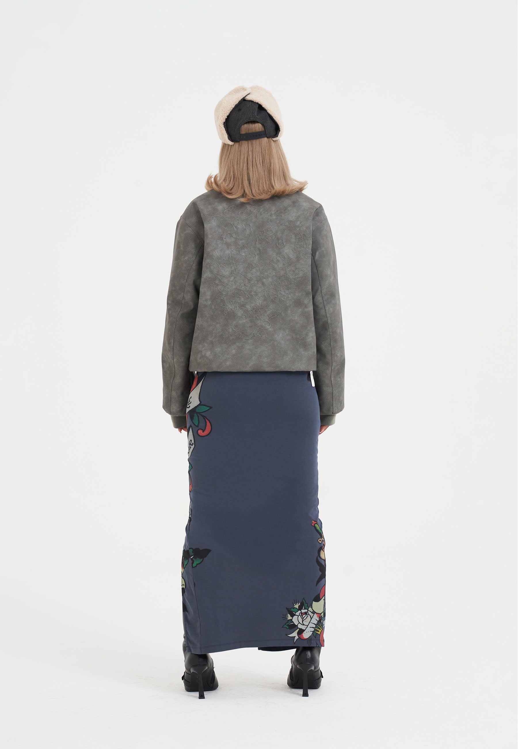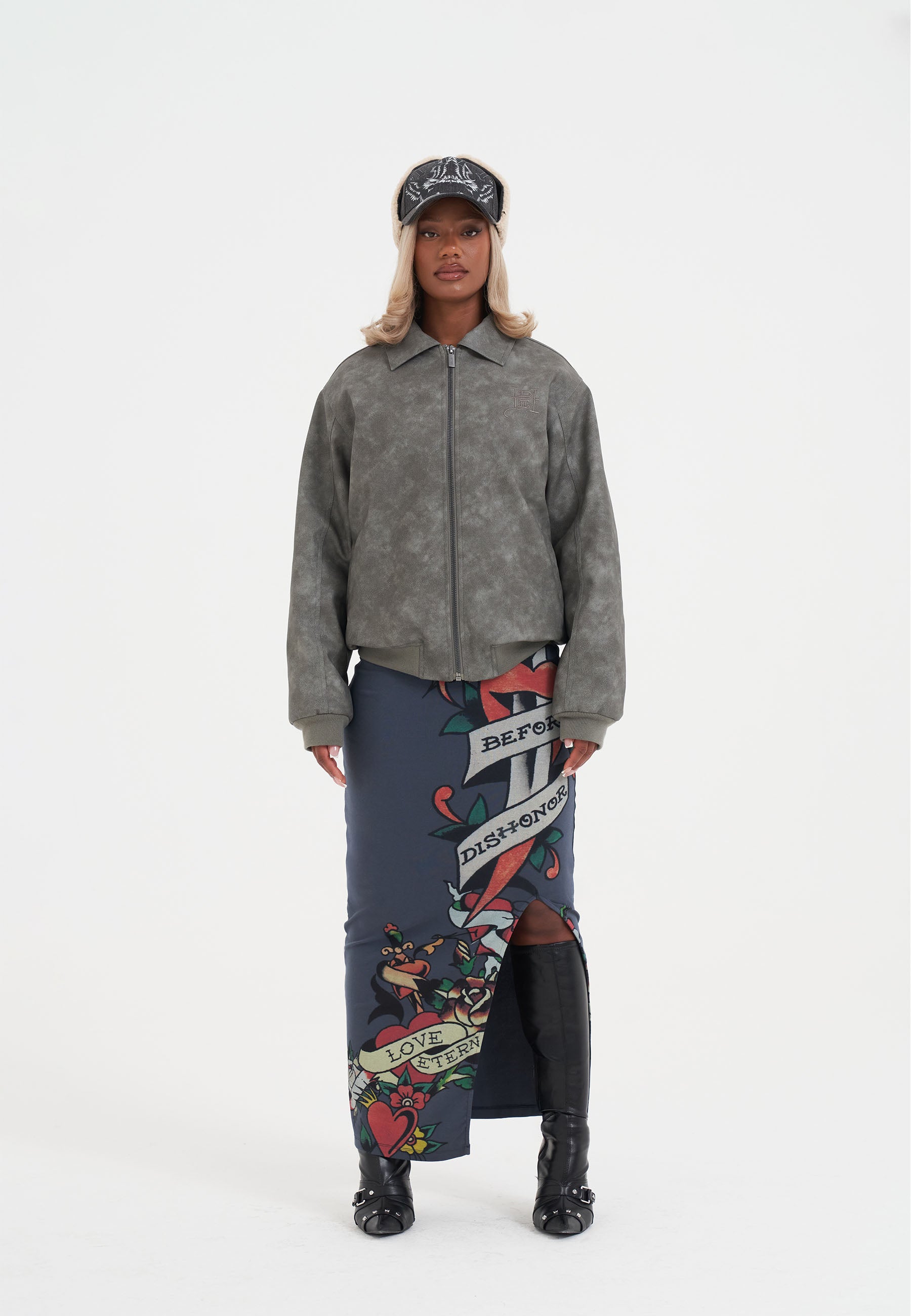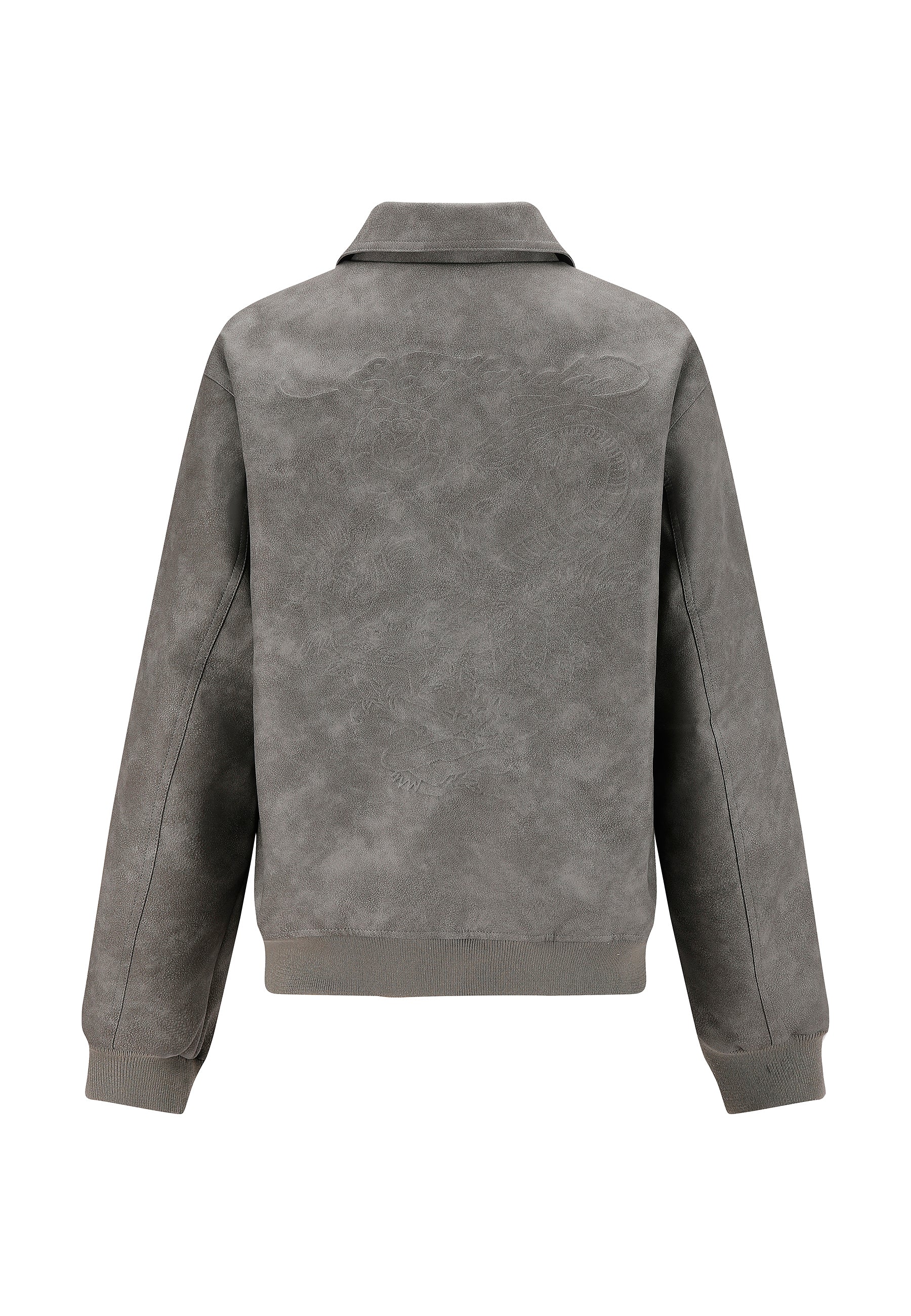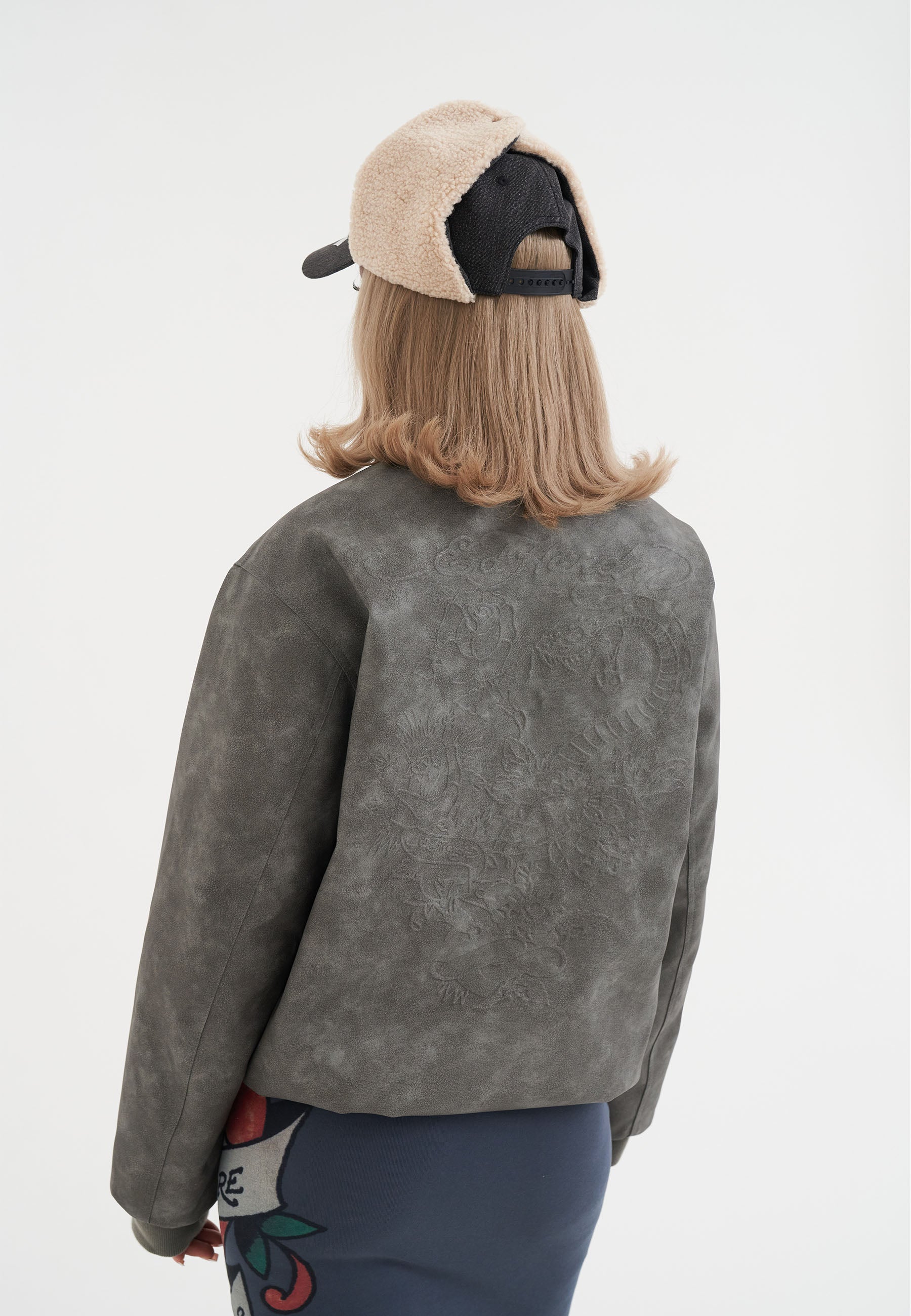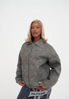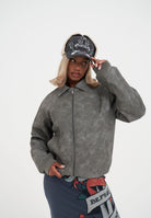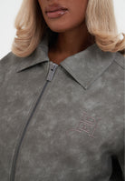 WOMENS BLACK COBRA EMBOSSED VEGAN LEATHER JACKET in Grey