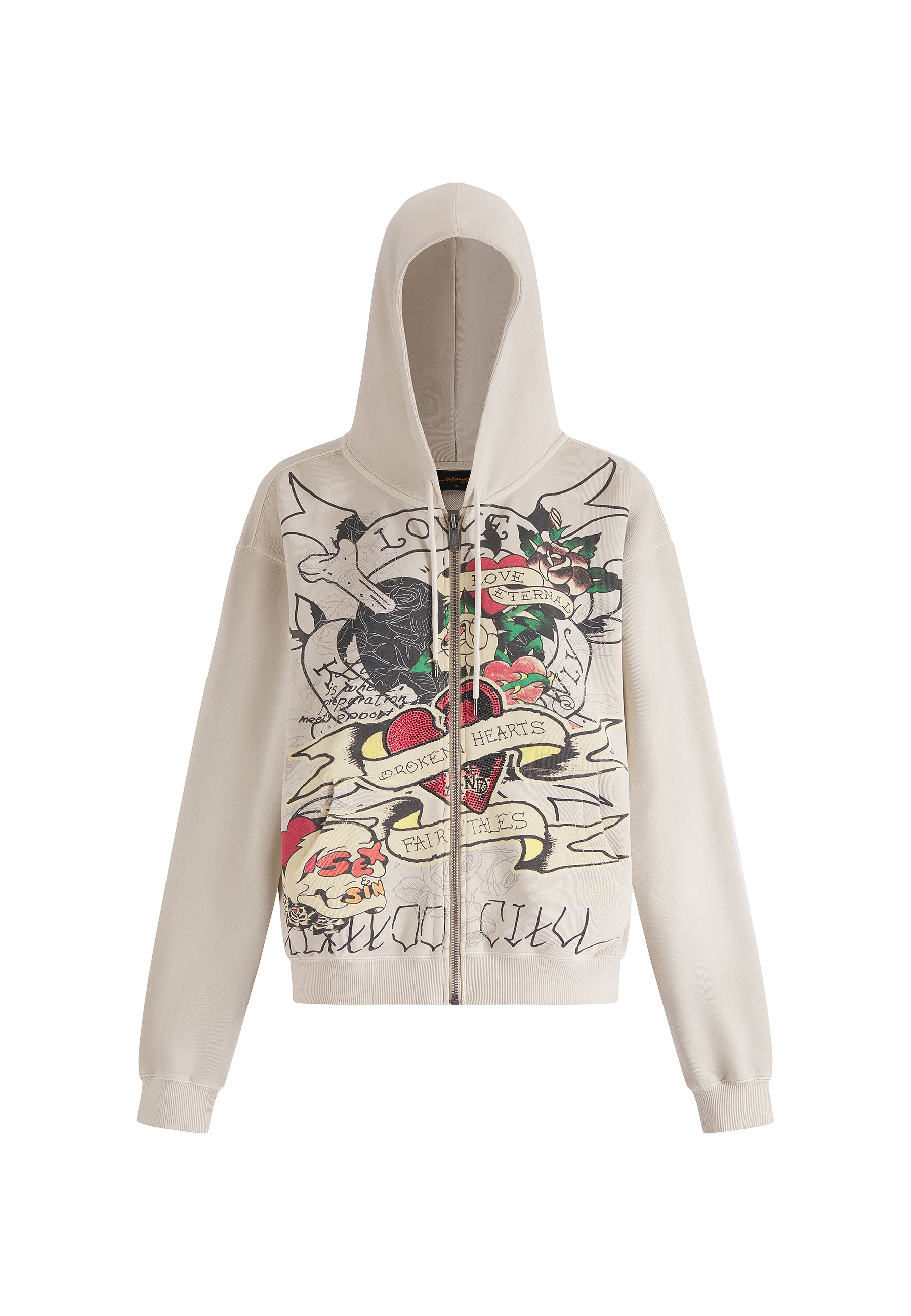WOMENS BROKEN HEARTS AND FAIRYTALES ZIP THRU HOODIE in Ecru