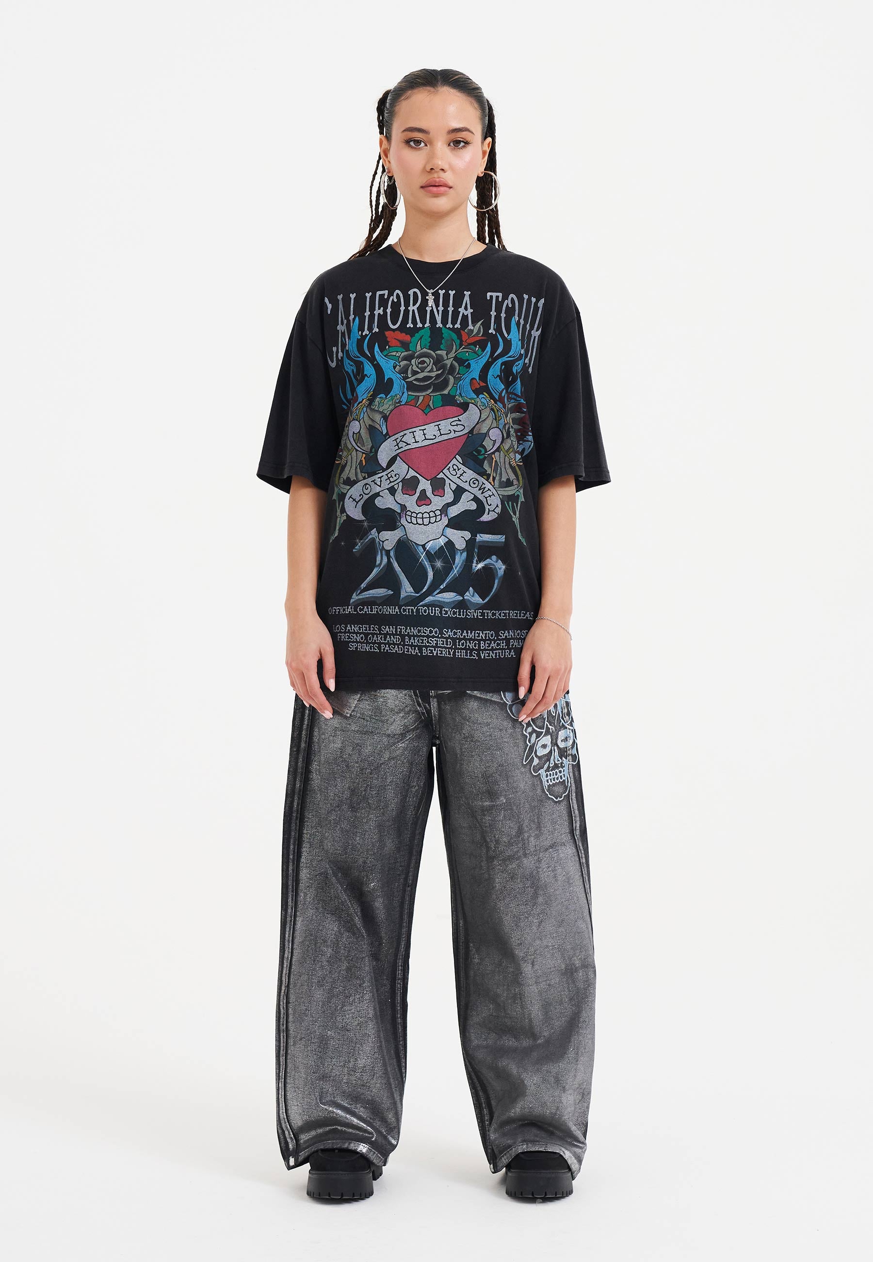 Womens California Love Kills Relaxed T-Shirt Top - Black