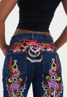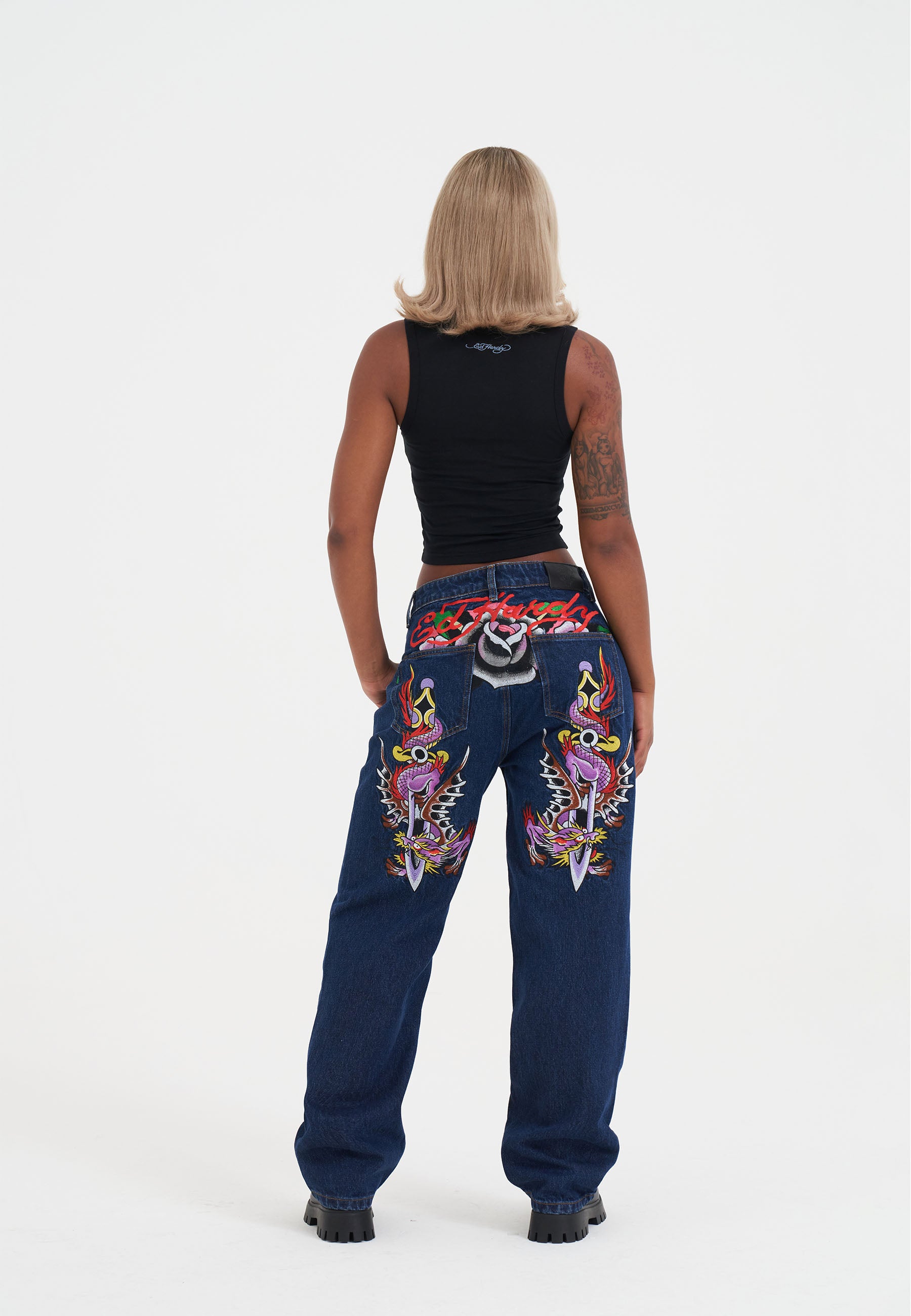 Womens Dragon And Sword Relaxed Jeans - Indigo