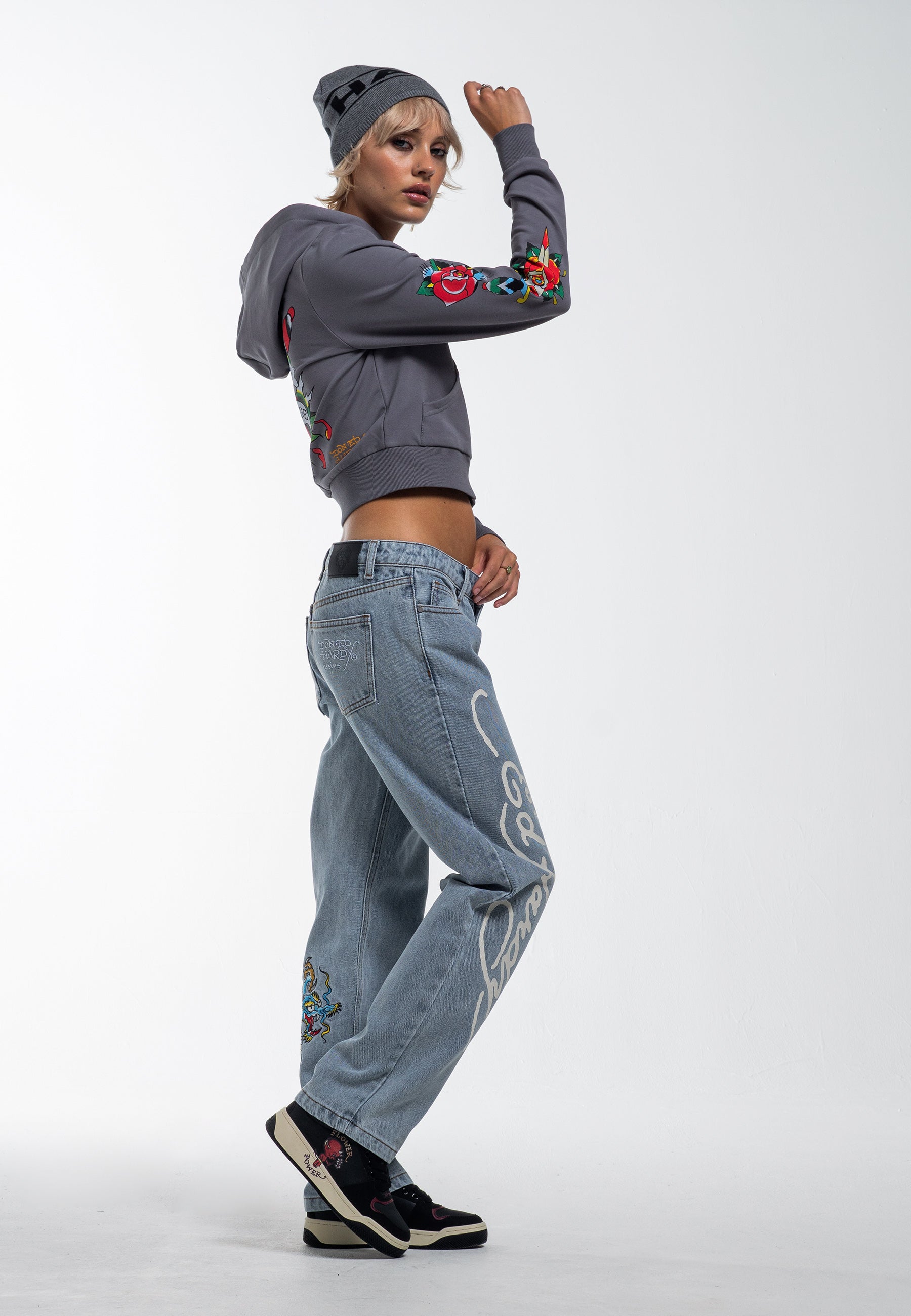 Step into a new era of femme aesthetics with the Dragon Flame Wide Leg Jeans, inspired by the iconic 90s silhouette.
