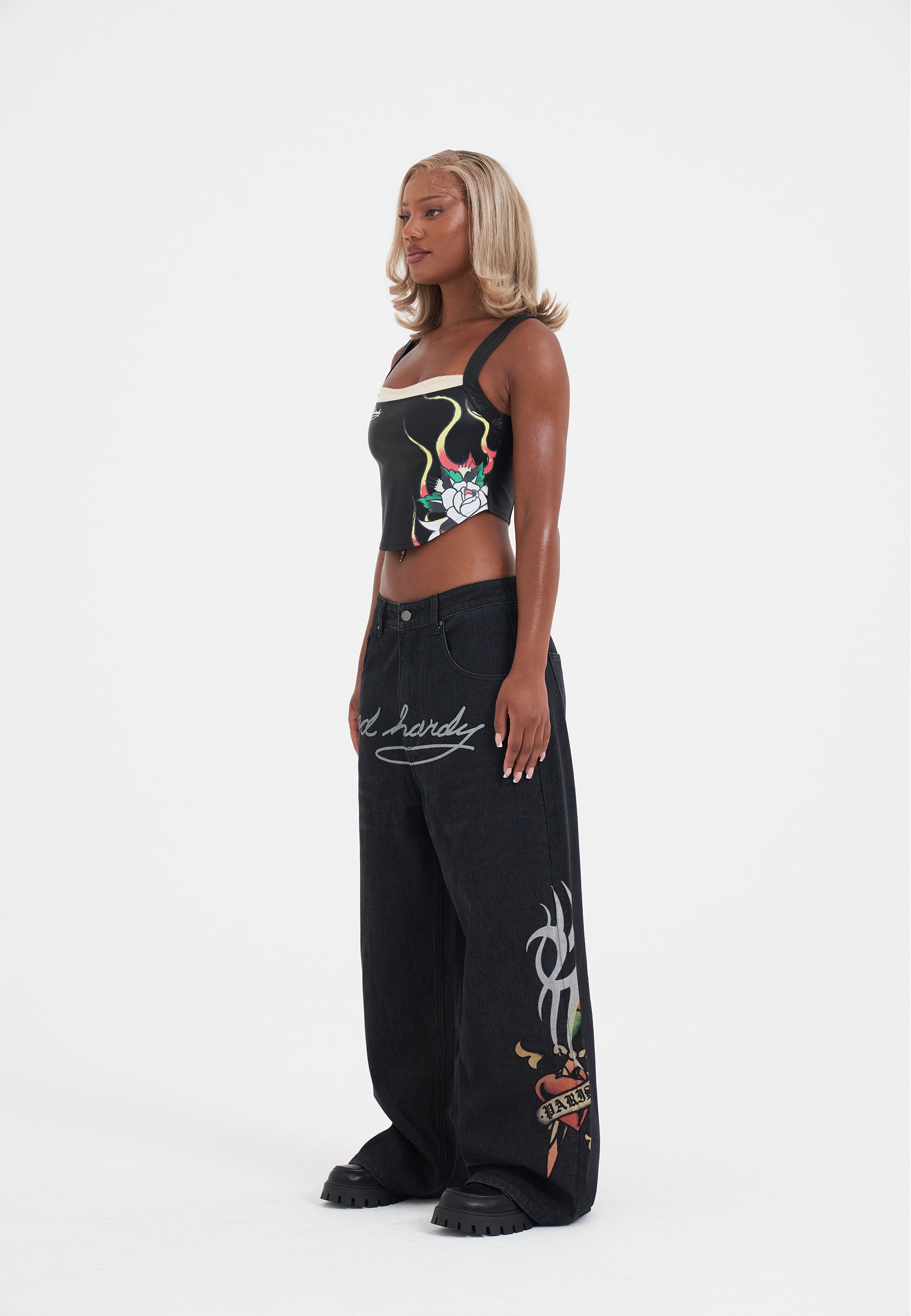 - FLAMING HEART PRINT AND LOGO EMBROIDERY TO FRONT