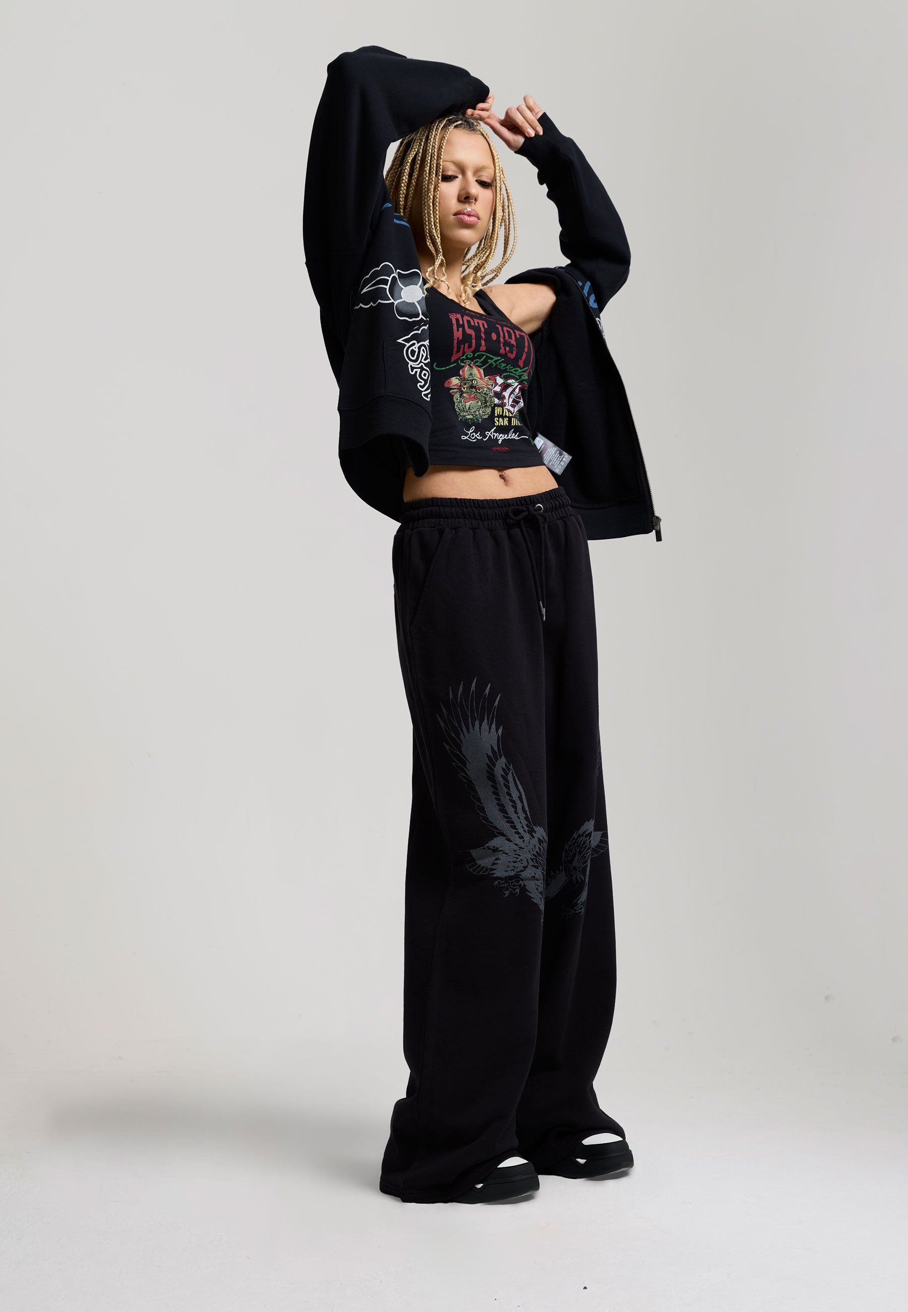 - FLYING EAGLE GRAPHIC PRINT TO BOTH LEGS