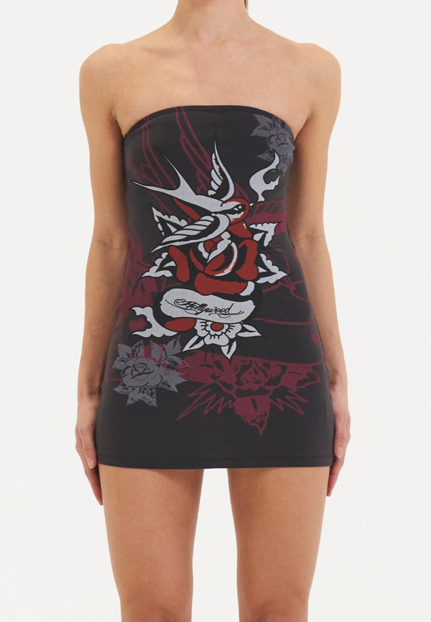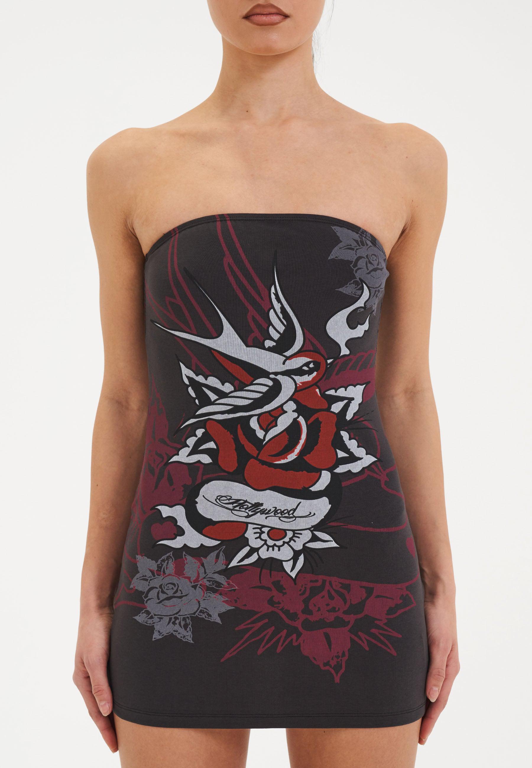 Womens Hollywood Swallow Bandeau Dress - Grey