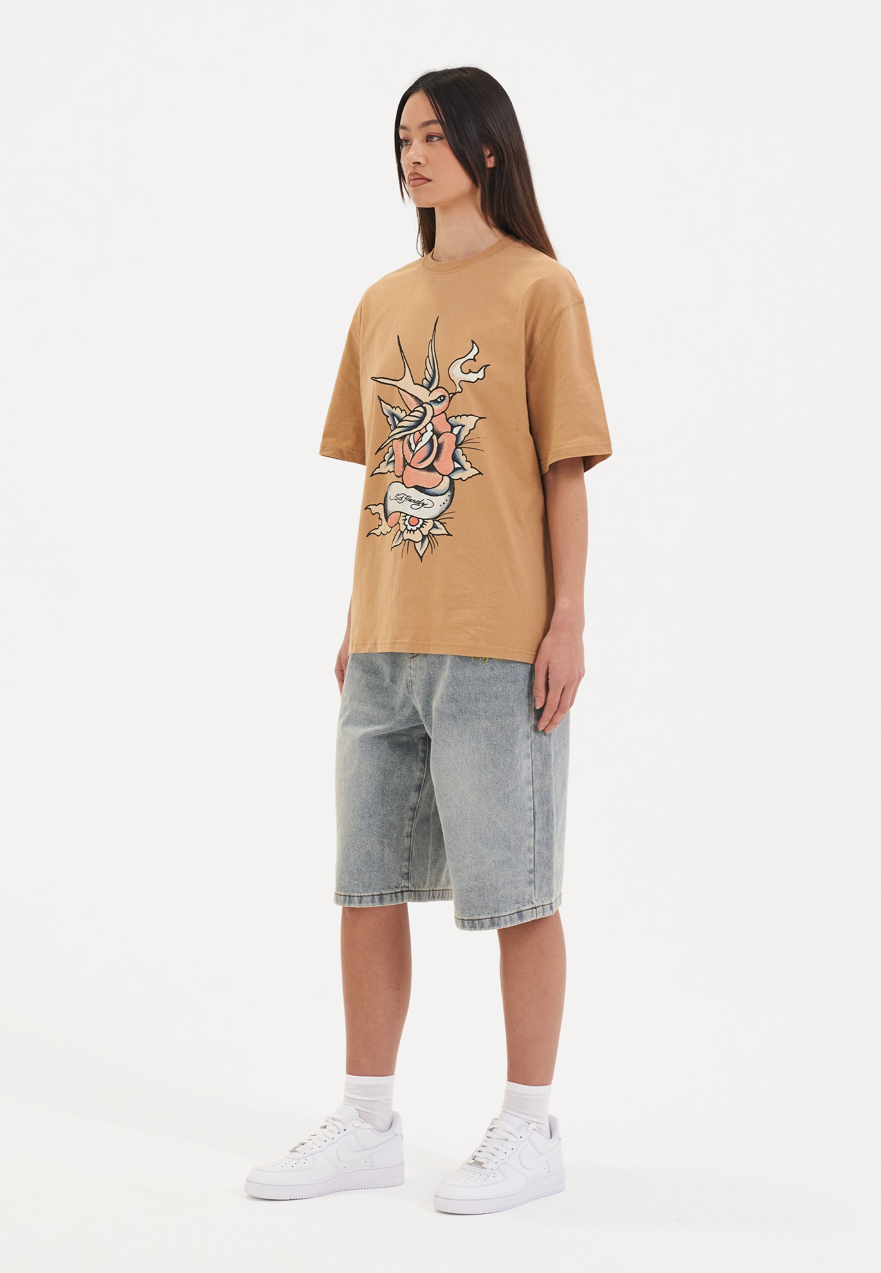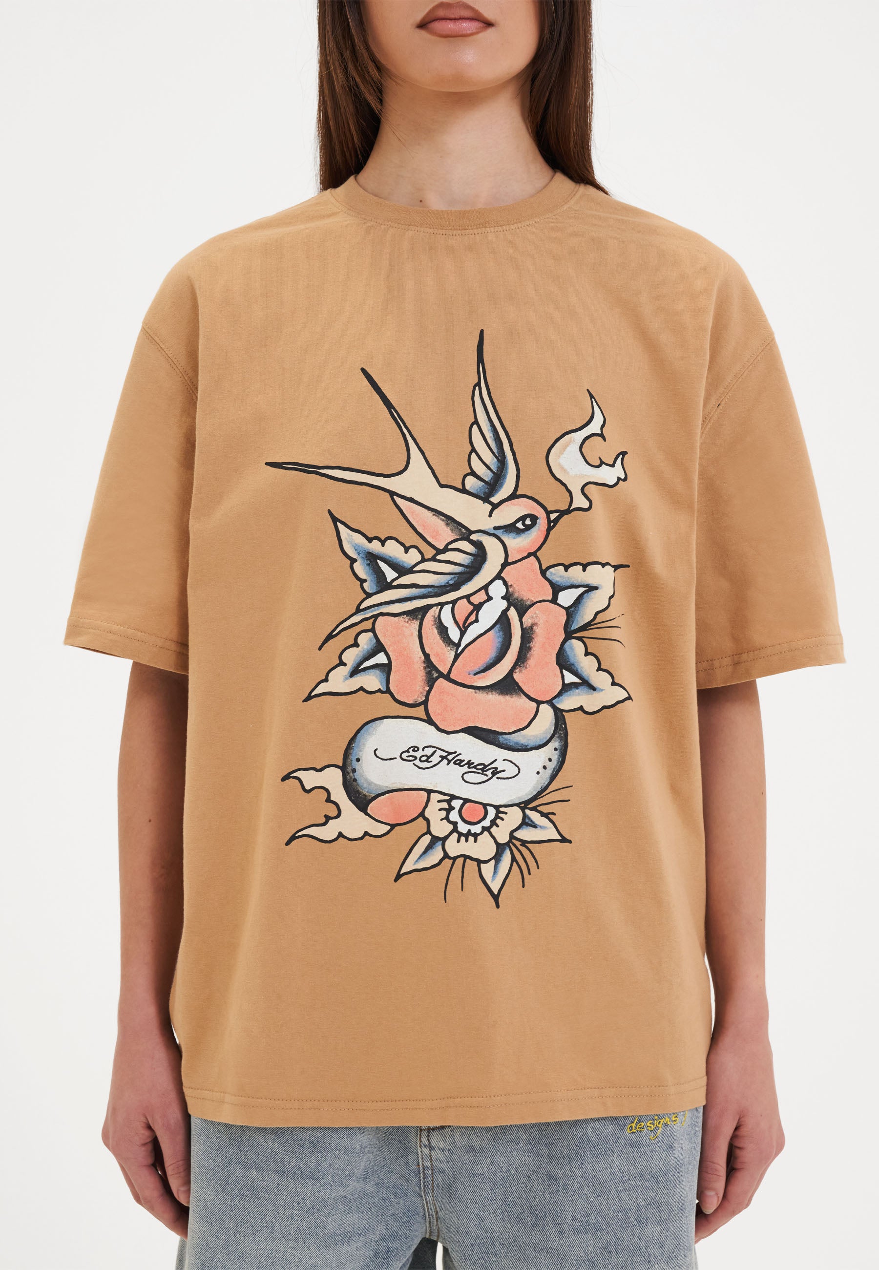 Womens Hummer Bird Relaxed Tshirt Top - Brown