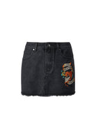 Womens Life-Before Drop Hem Embroidered Denim Mini Skirt - Black