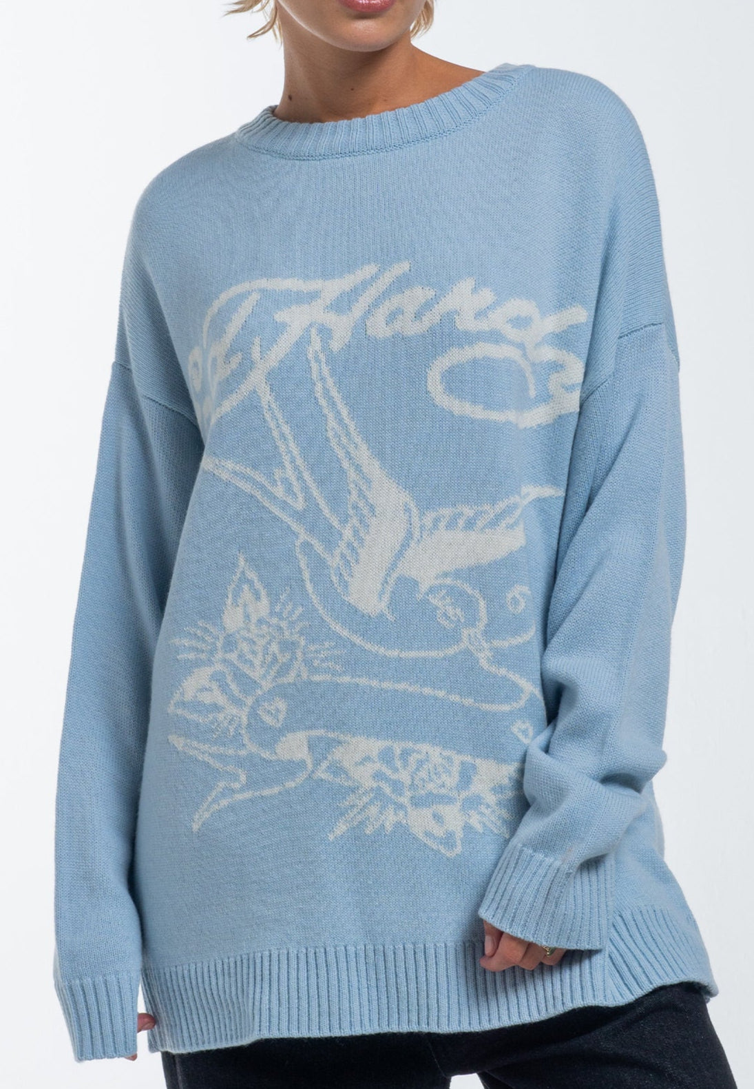 Step into your own, with our Women's Love Bird Jaquard Knitted Crewneck Jumper, an undeniable standout from Ed Hardy's A/W Collection.