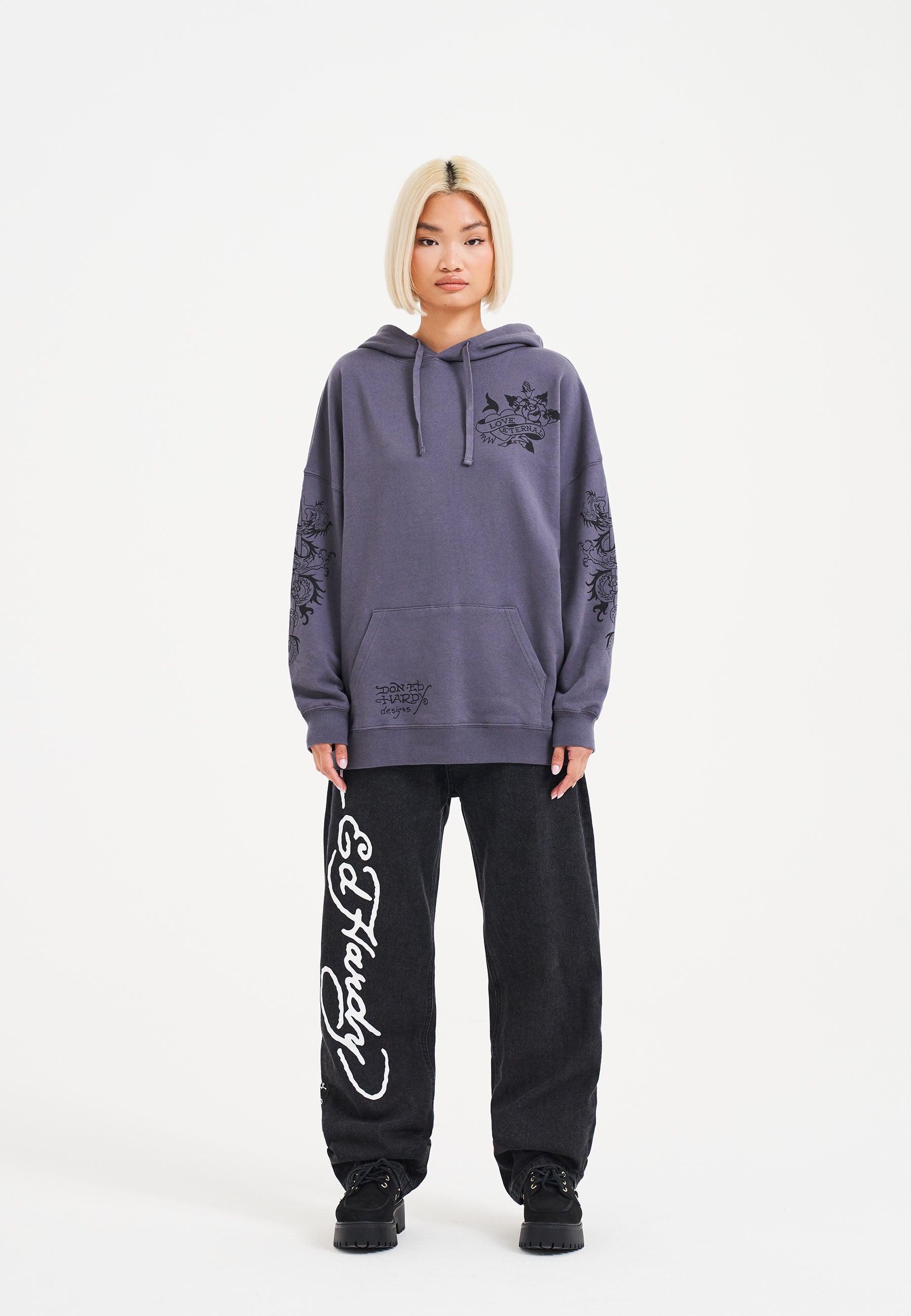 Featuring all-over tonal floral graphic prints from Ed's old sketchbooks; including both sleeves, across the back and an additional Ed Hardy monogram across the pocket. Crafted from 100% Grey Cotton Terry.