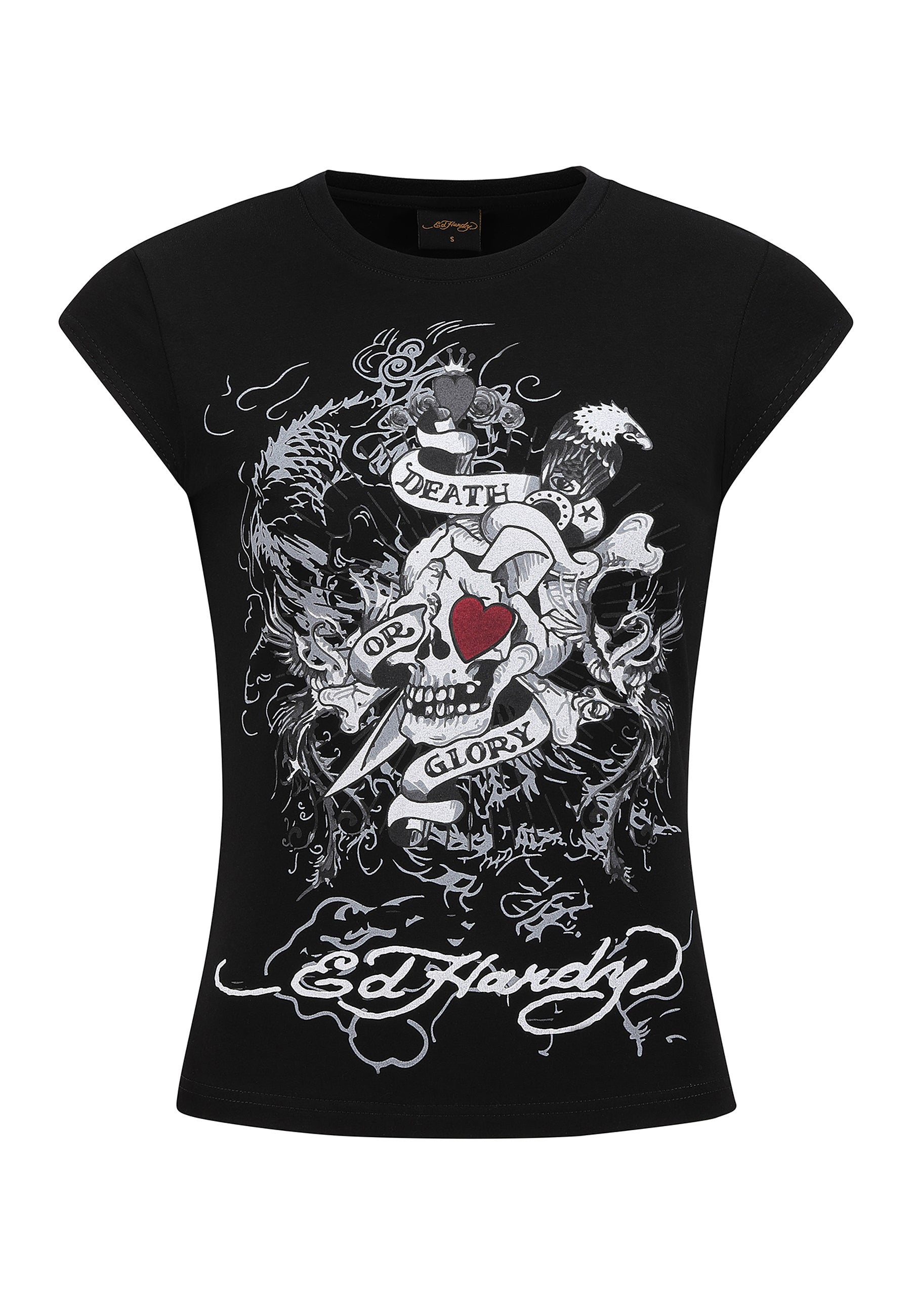Womens Death Or Glory Love Cap Sleeve T-Shirt Top - Black