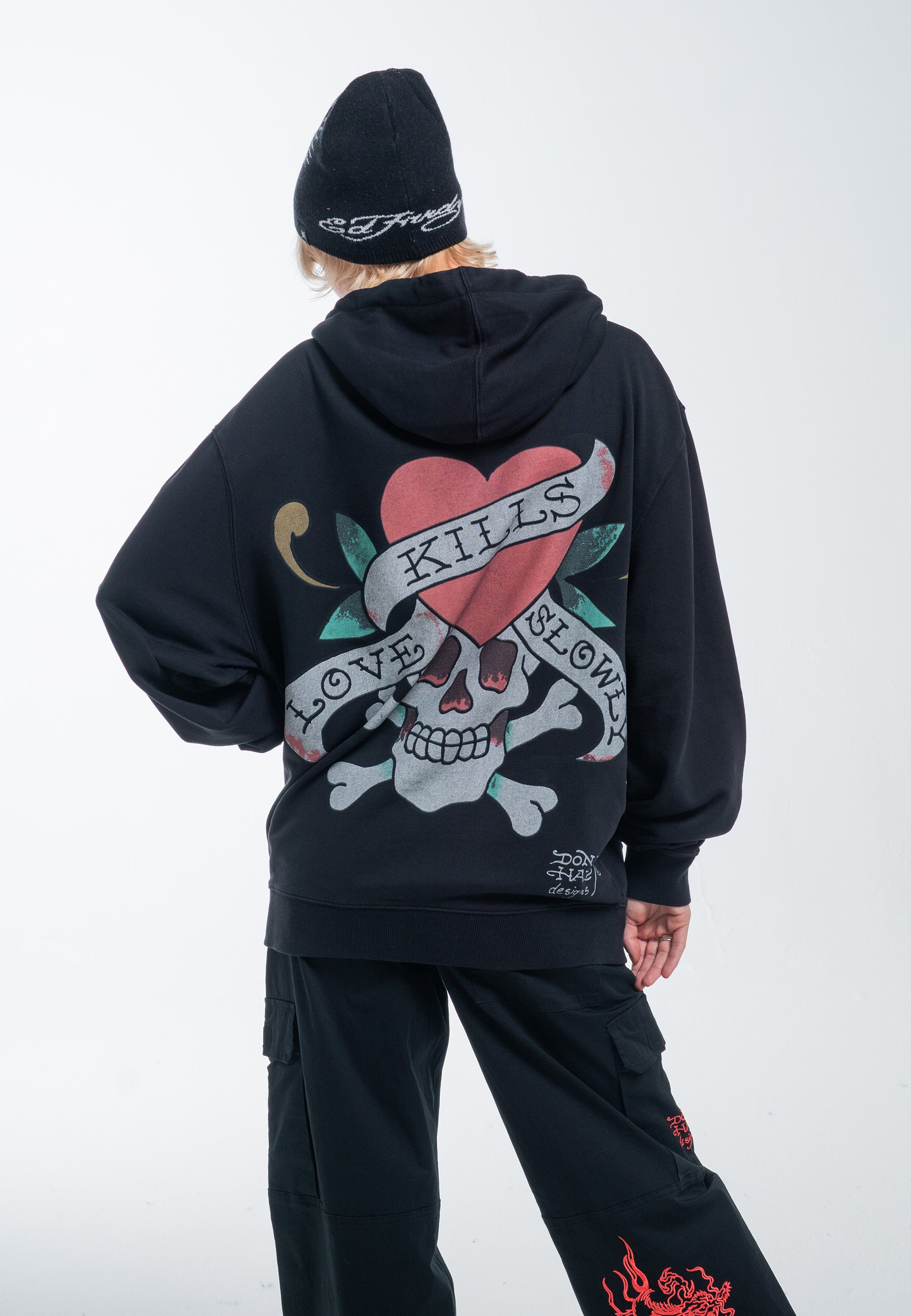 The Love Kills Slowly emblem, an enduring symbol of Ed Hardy, has evolved with fresh interpretations over the years.