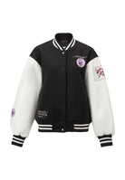 Introducing the Love Wrapped Varsity Bomber Jacket, a two-tone masterpiece in black and white. Crafted from 70% woolen and 30% tumbled PU.