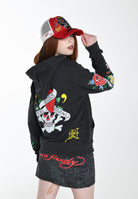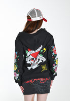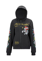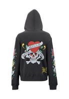 Womens Lucky-Love Graphic Zip Through Hoodie - Charcoal