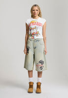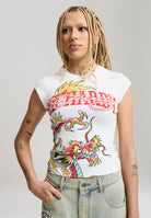 Womens Varsity Dragon Cap Sleeve Tee - Ecru
