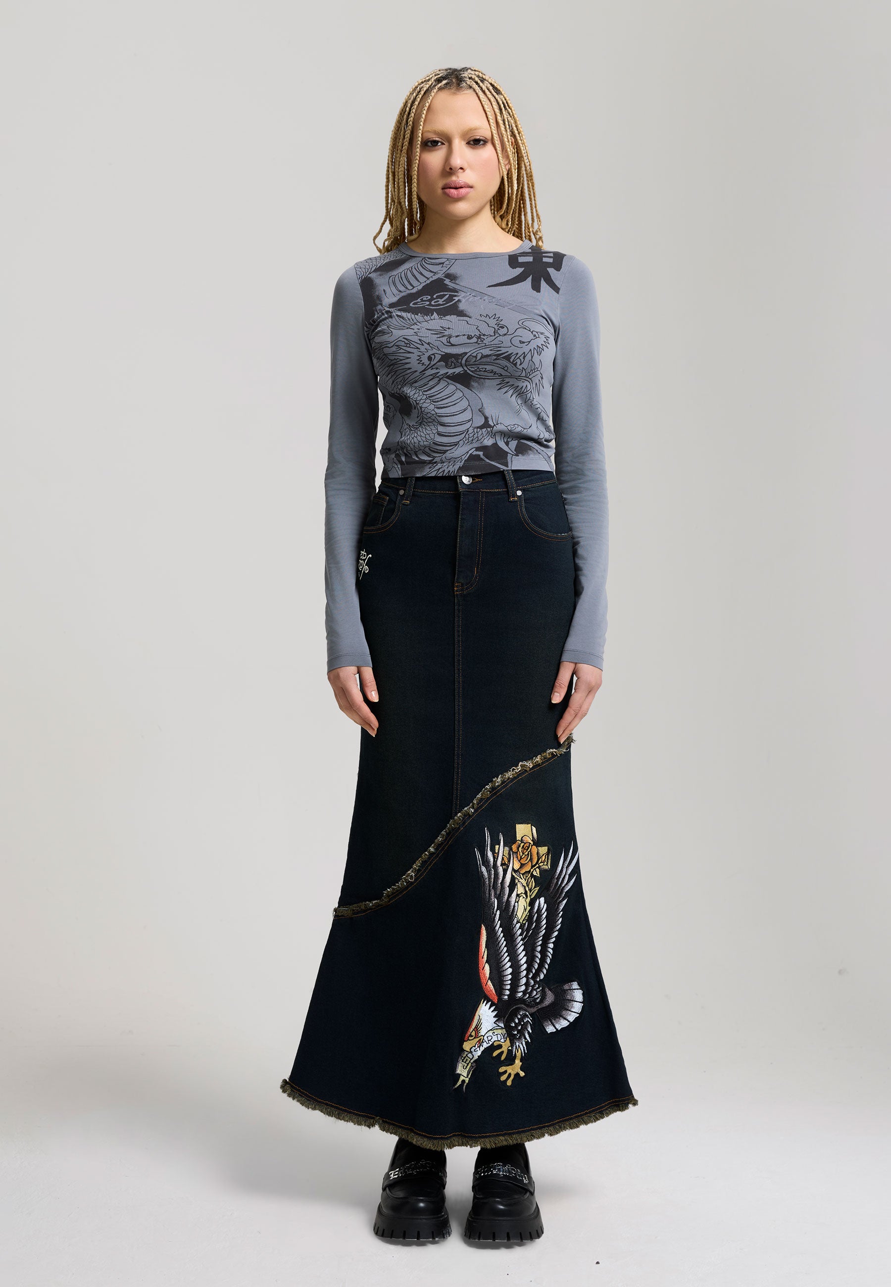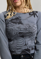 Showcasing a tonal dragon graphic inspired by Ed Hardy’s flashbook designs and a Don Ed Design print on the back hem, this piece carries forward Ed's iconic legacy. A versatile must-have for every season.