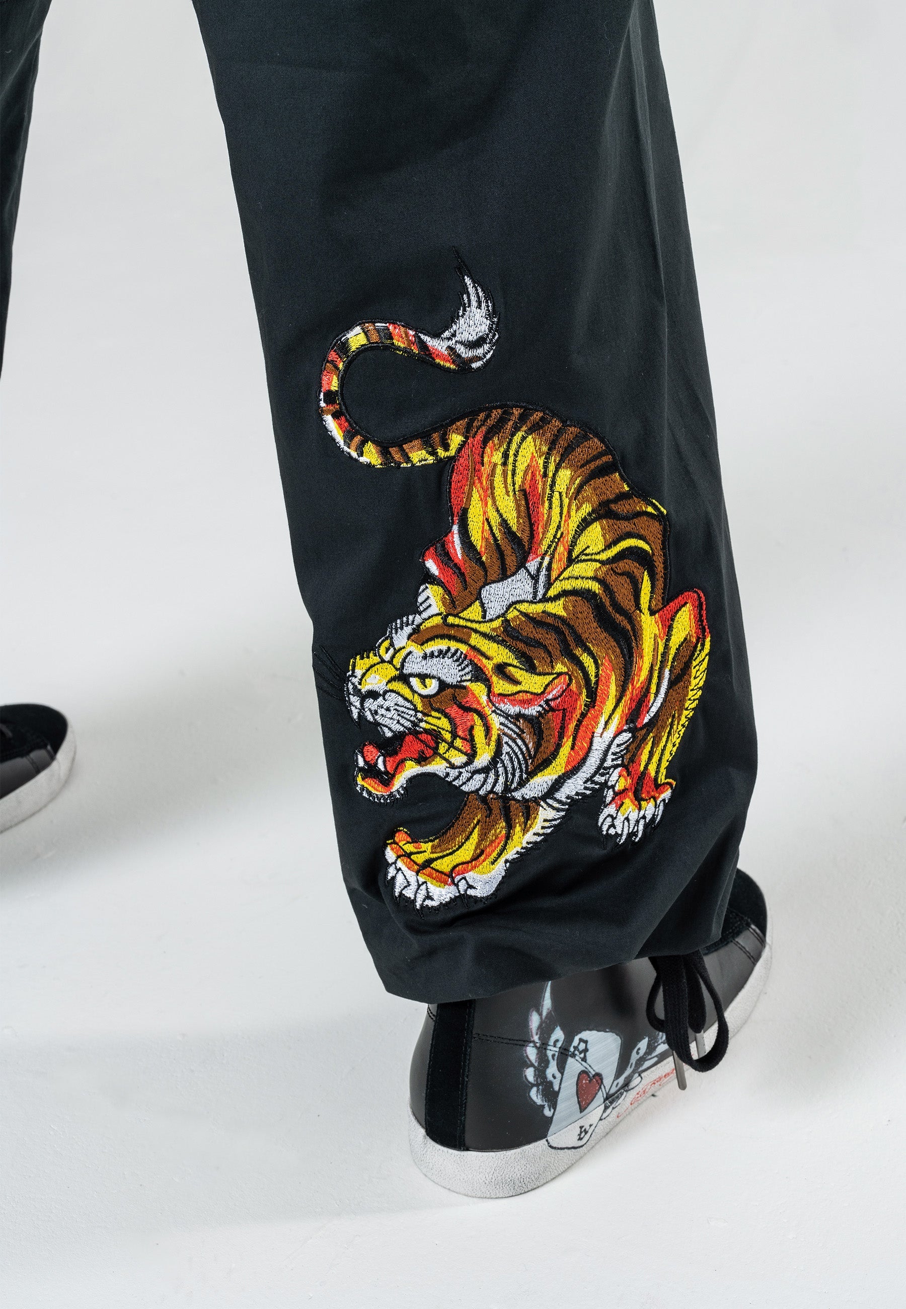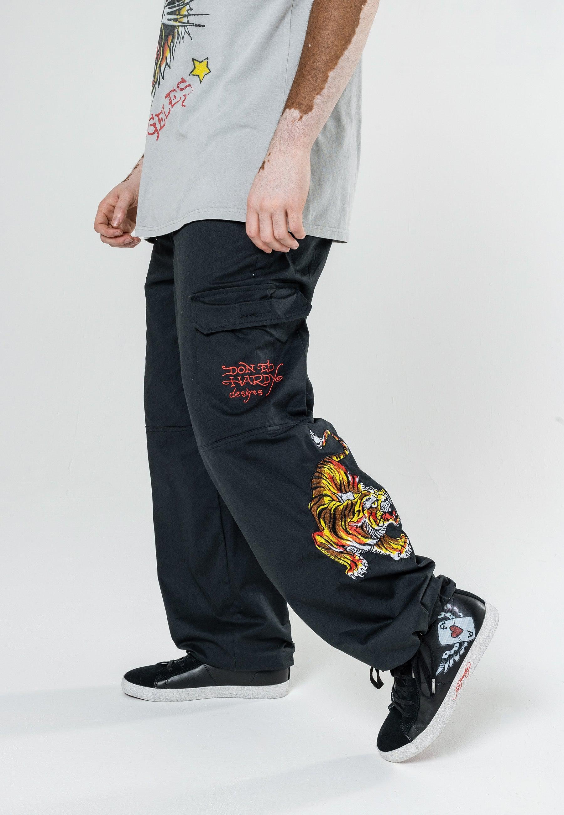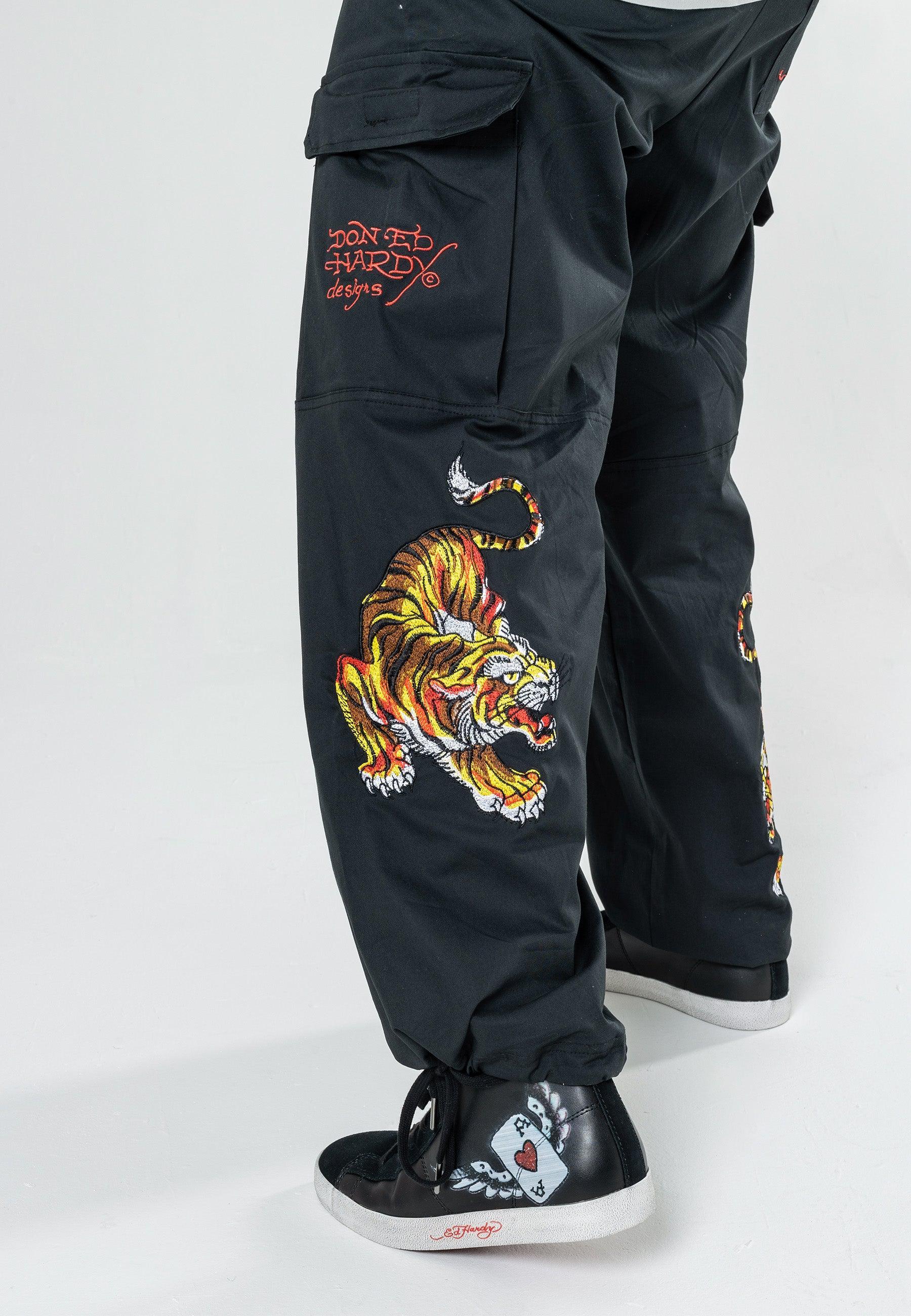 Este Double Tiger Cargo Pant-Washed Black apresenta o infame arquivo Eds de Tigers bordados em alta definição em ambas as pernas traseiras, bem como o logotipo Ed Hardy bordado no bolso traseiro com zíper. Essas calças cargos confortáveis são perfeitas para climas frios, diurnos e noturnos.