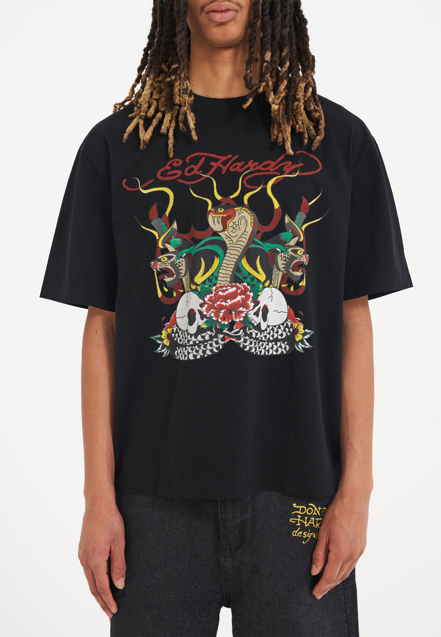 Inspirada nos patches punk, a camiseta Snake and Skull dá nova vida à arte inconfundível de Ed em uma estampa colorida vibrante.