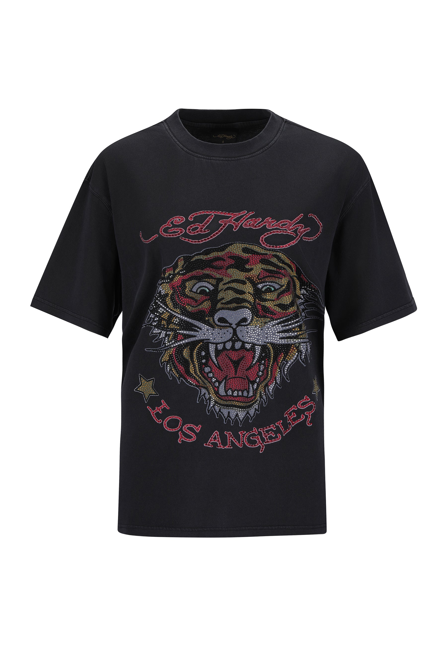 Camiseta feminina La Tiger Vintage Diamante - Preto