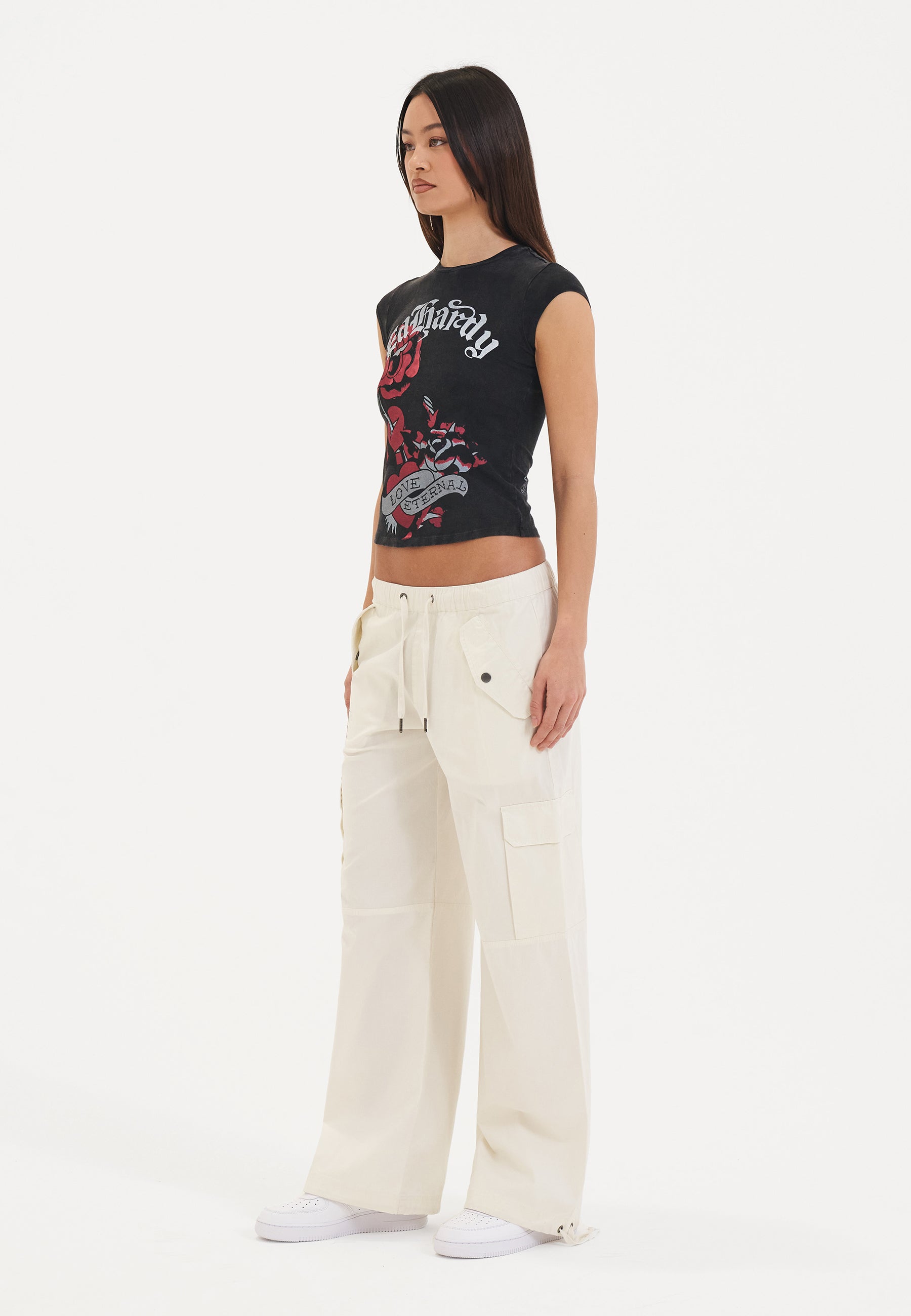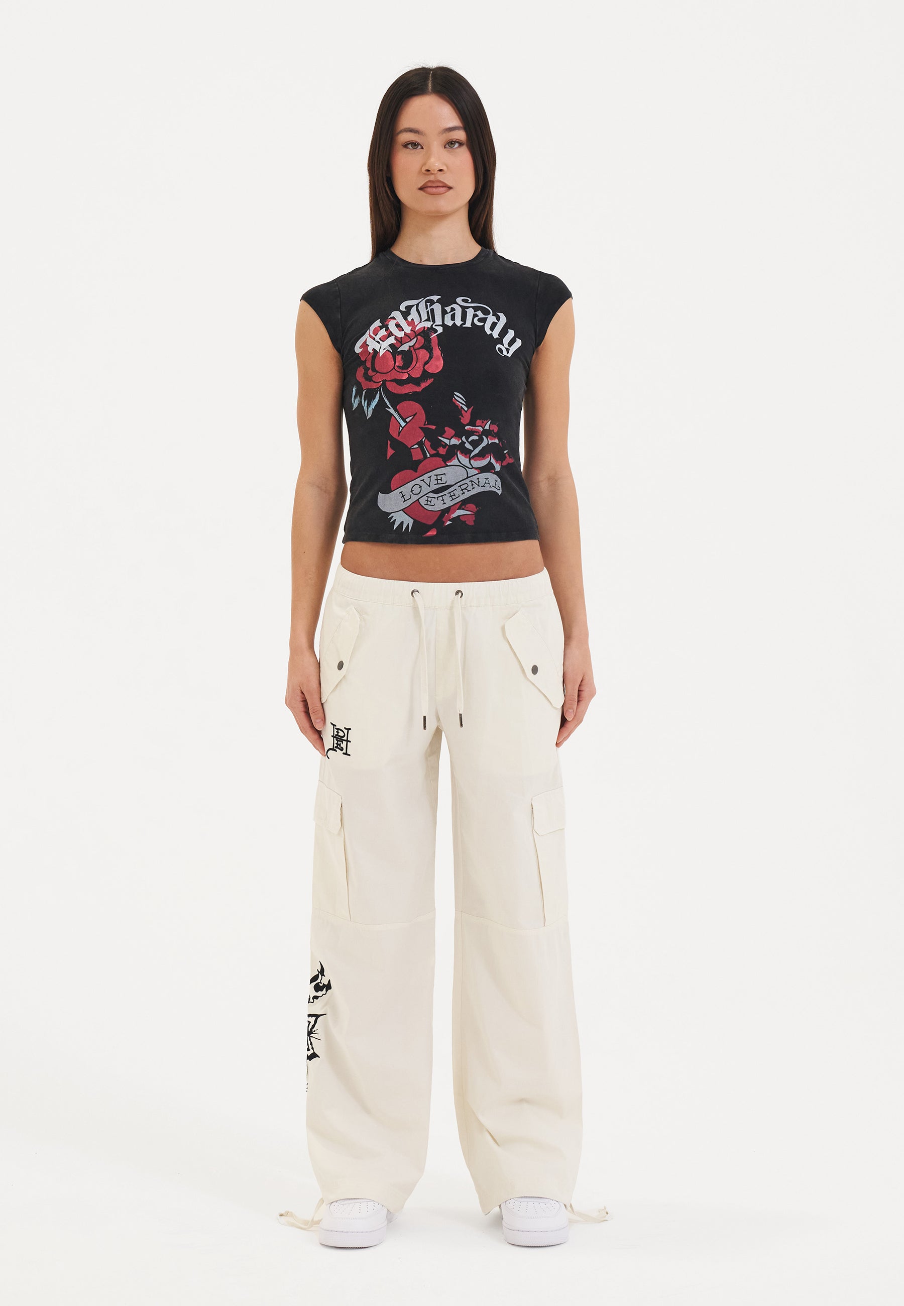 Apresentando gráficos icônicos de arquivo em contraste com algodão preto premium, a Camiseta Love Eternal Cap Sleeve foi criada para ser um item essencial do guarda-roupa, oferecendo uma tela para o seu estilo.