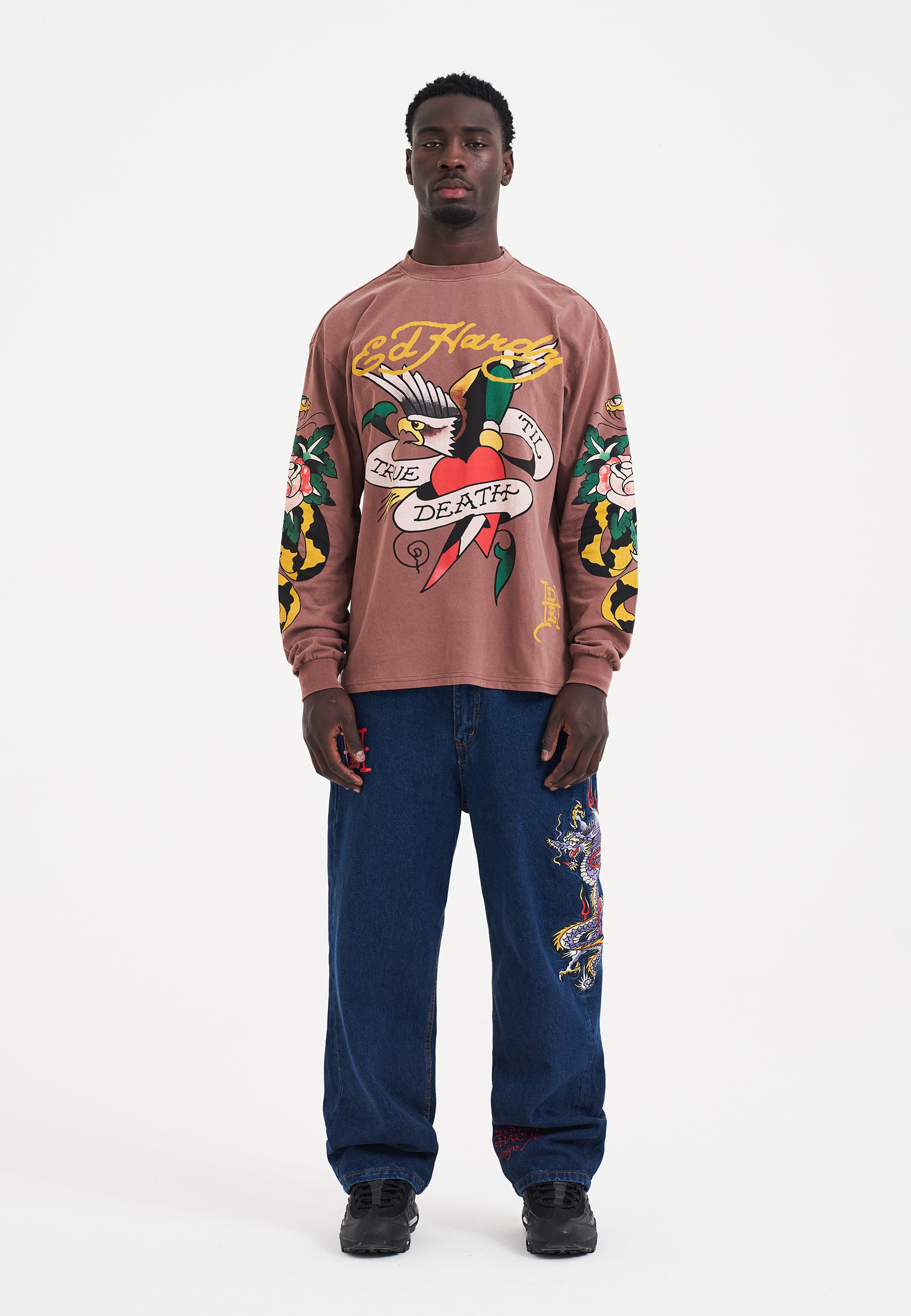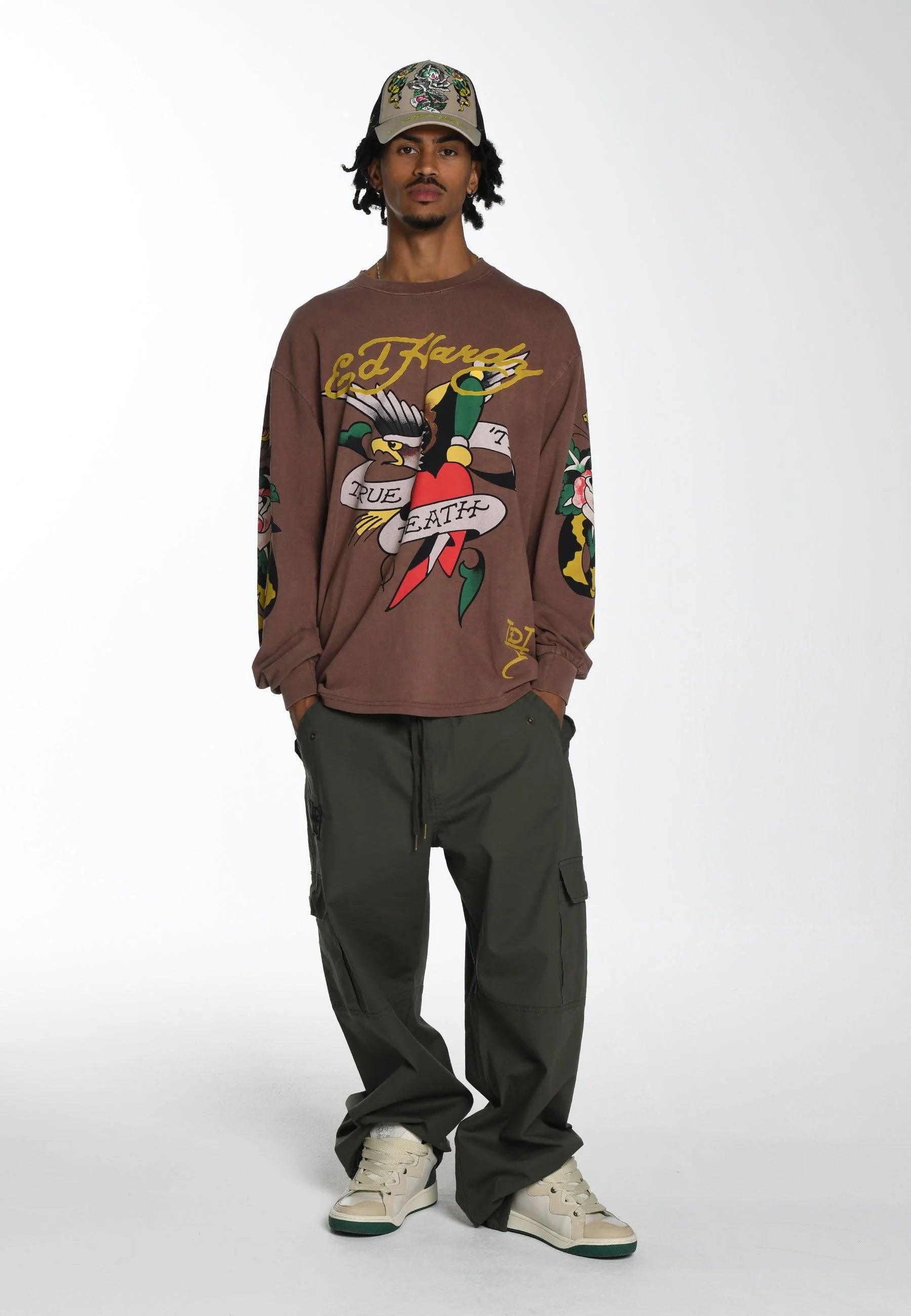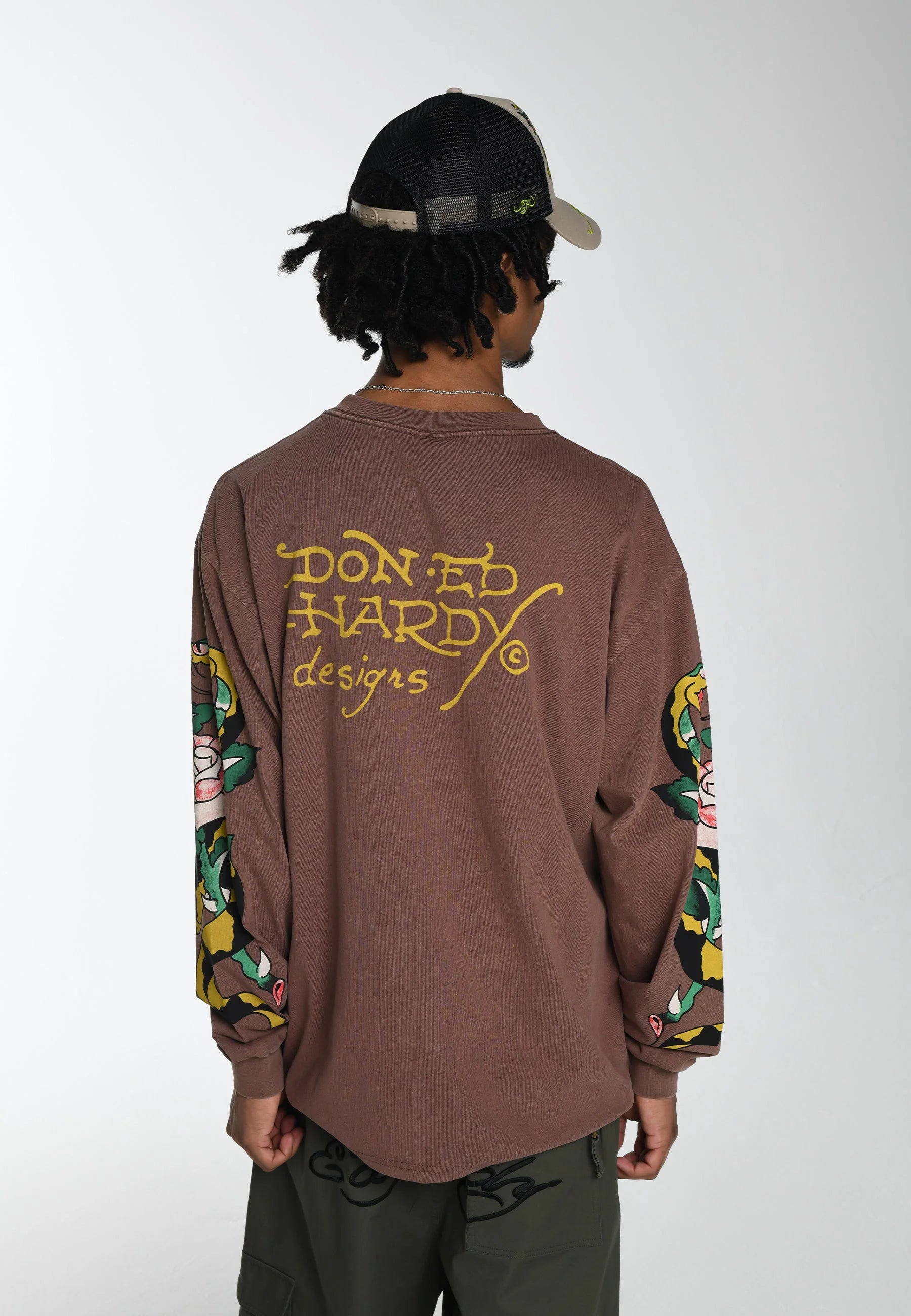 - Grande logotipo “DON ED HARDY designs” no verso