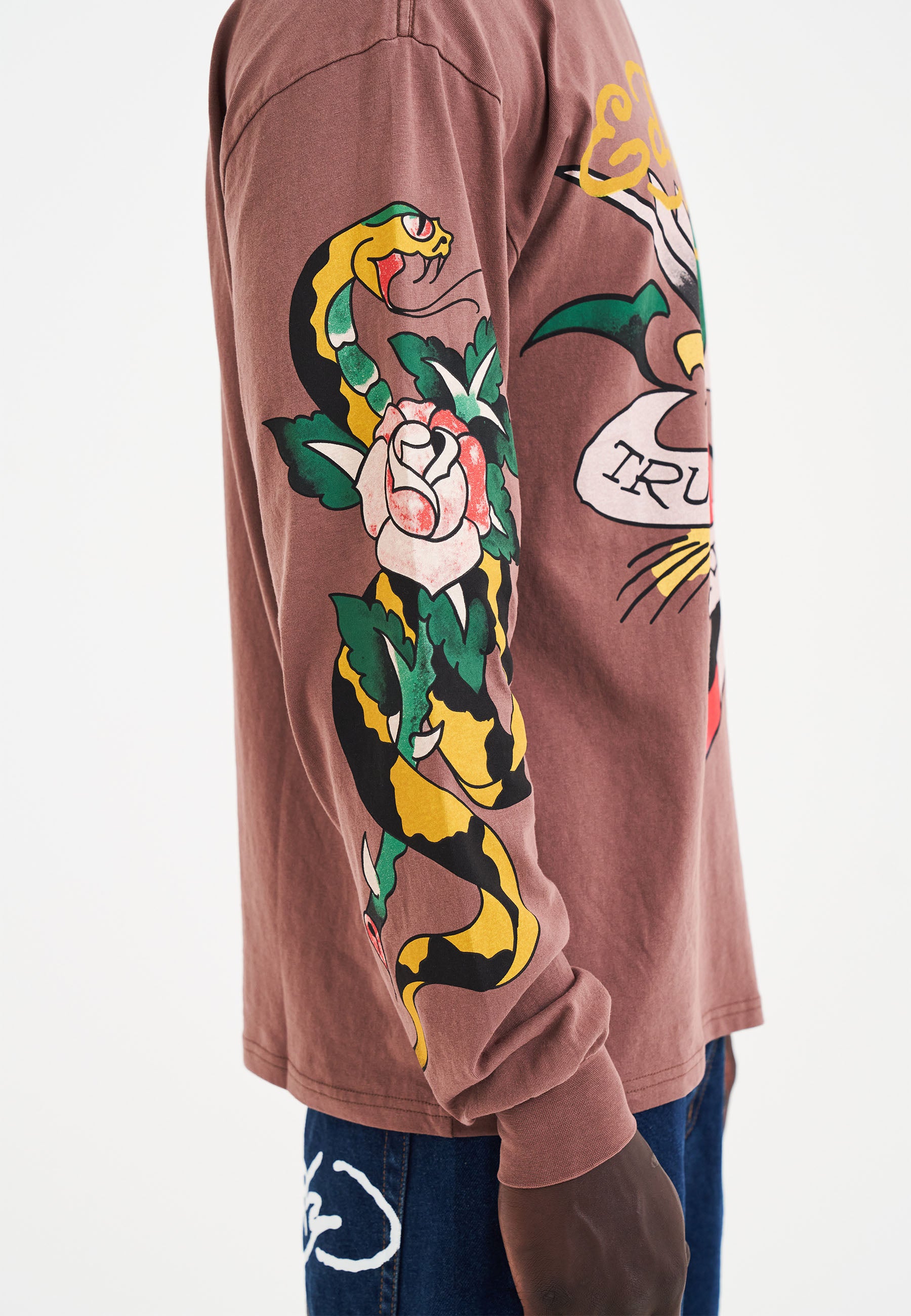 Fabricado em jersey 100% algodão premium e adornado com verdes, vermelhos e amarelos vibrantes, o Camiseta True Till Rose Snake oferece um ajuste descontraído e mangas compridas para conforto ideal.