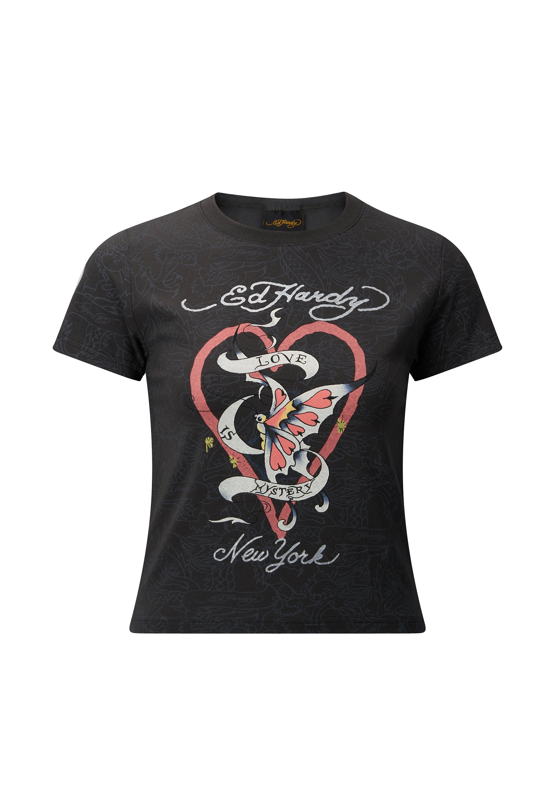 Camiseta feminina Mystery-Butterfly para bebê - preta