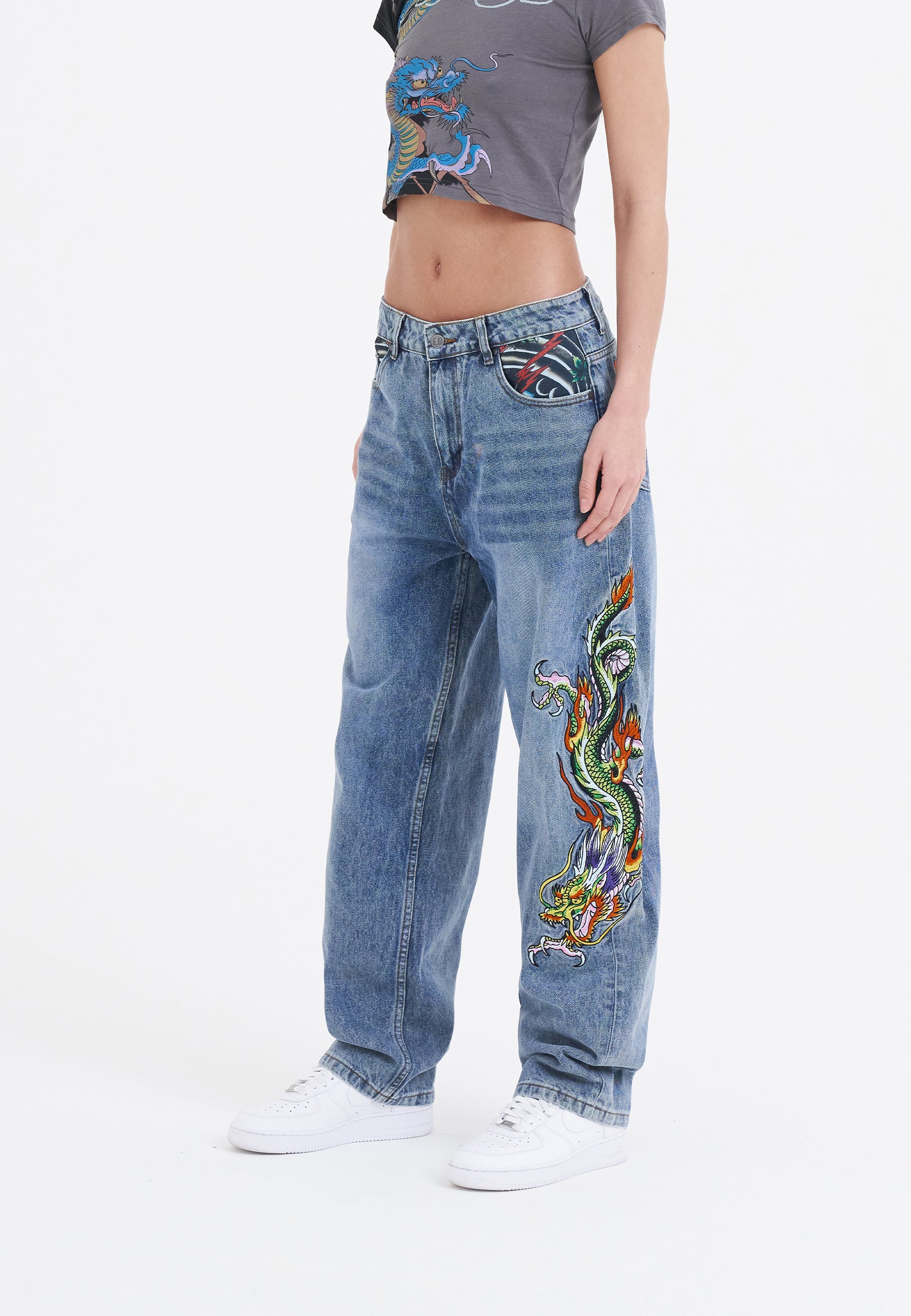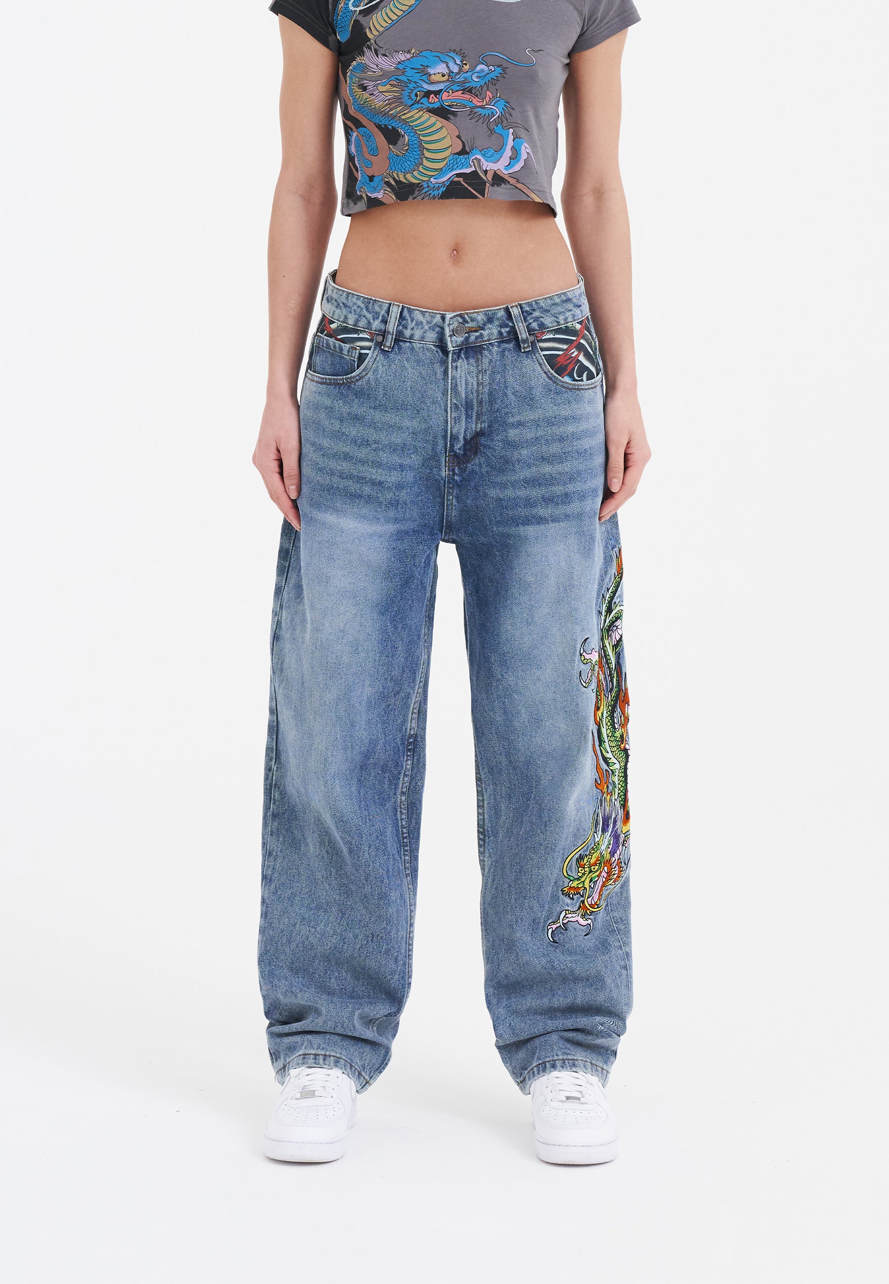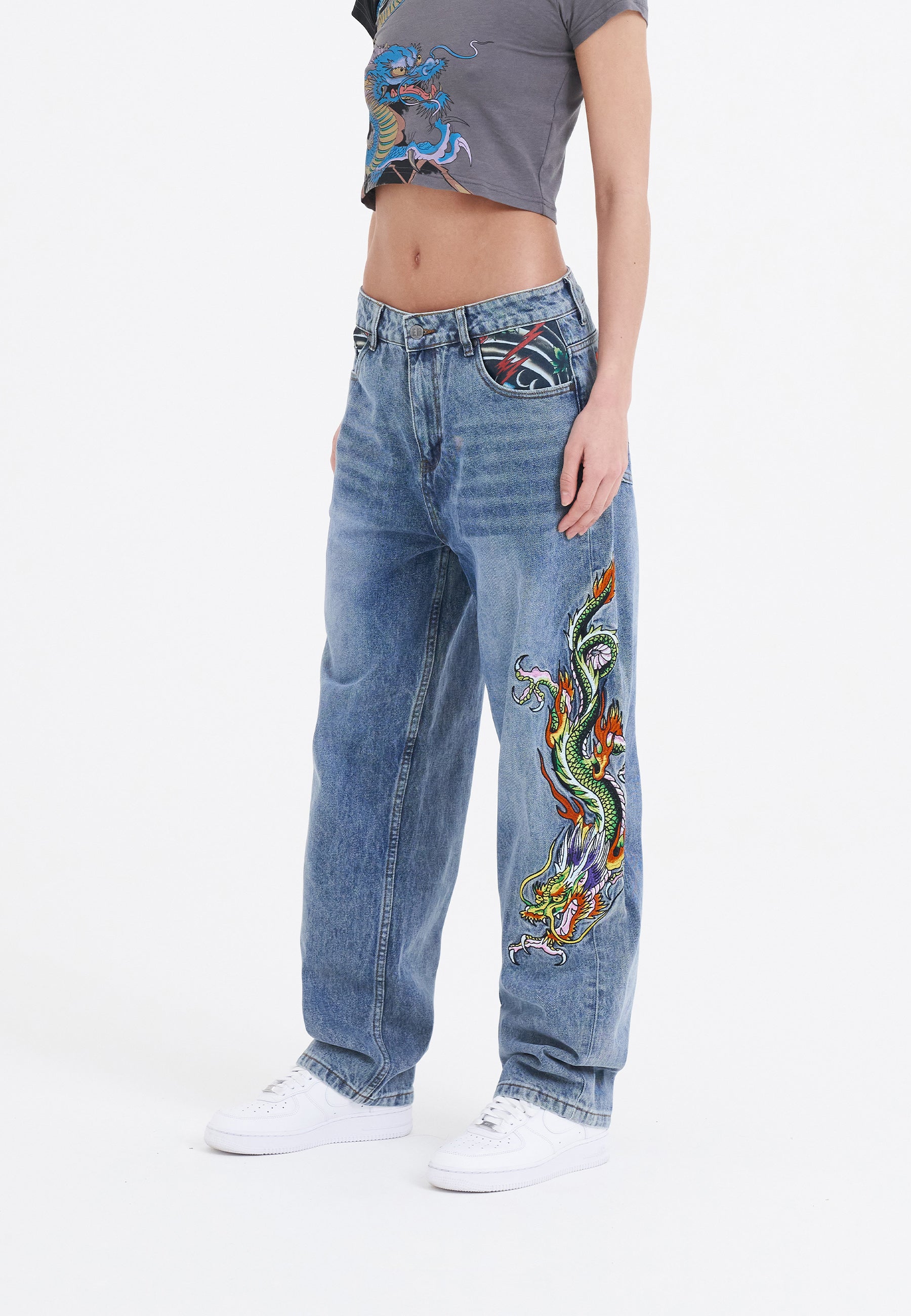 Calça Jeans Feminina Crawling Dragon Relaxada Fit Jeans - Bleach