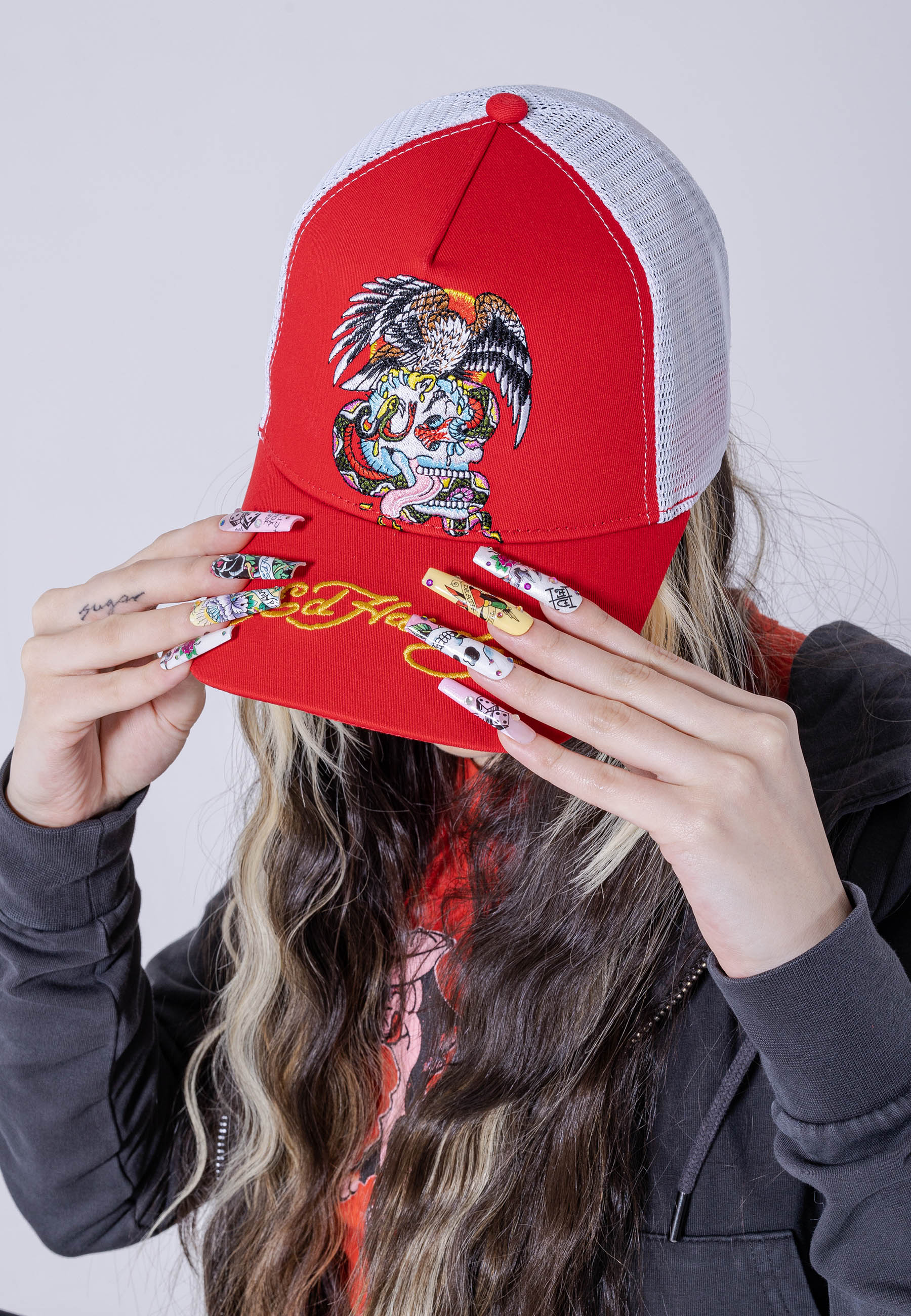 Eagle-Skull Twill Front Mesh Trucker - Red/White