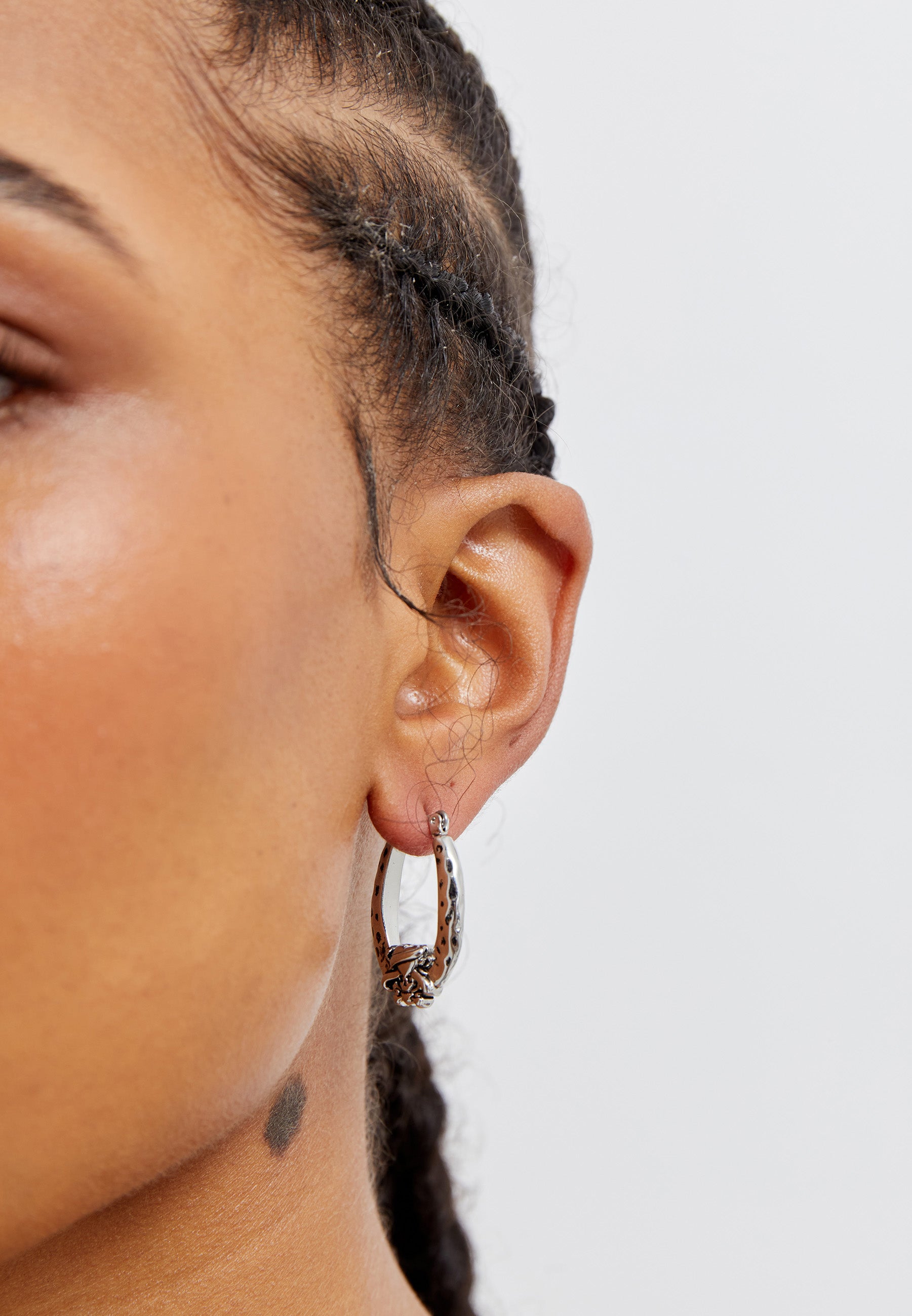 Ed Hardy custom cast textured hoops with Don Ed Hardy 'Love Kills Slowly' Skull and Heart design, hand finished in a silver finish with antiqued engraved detailing.