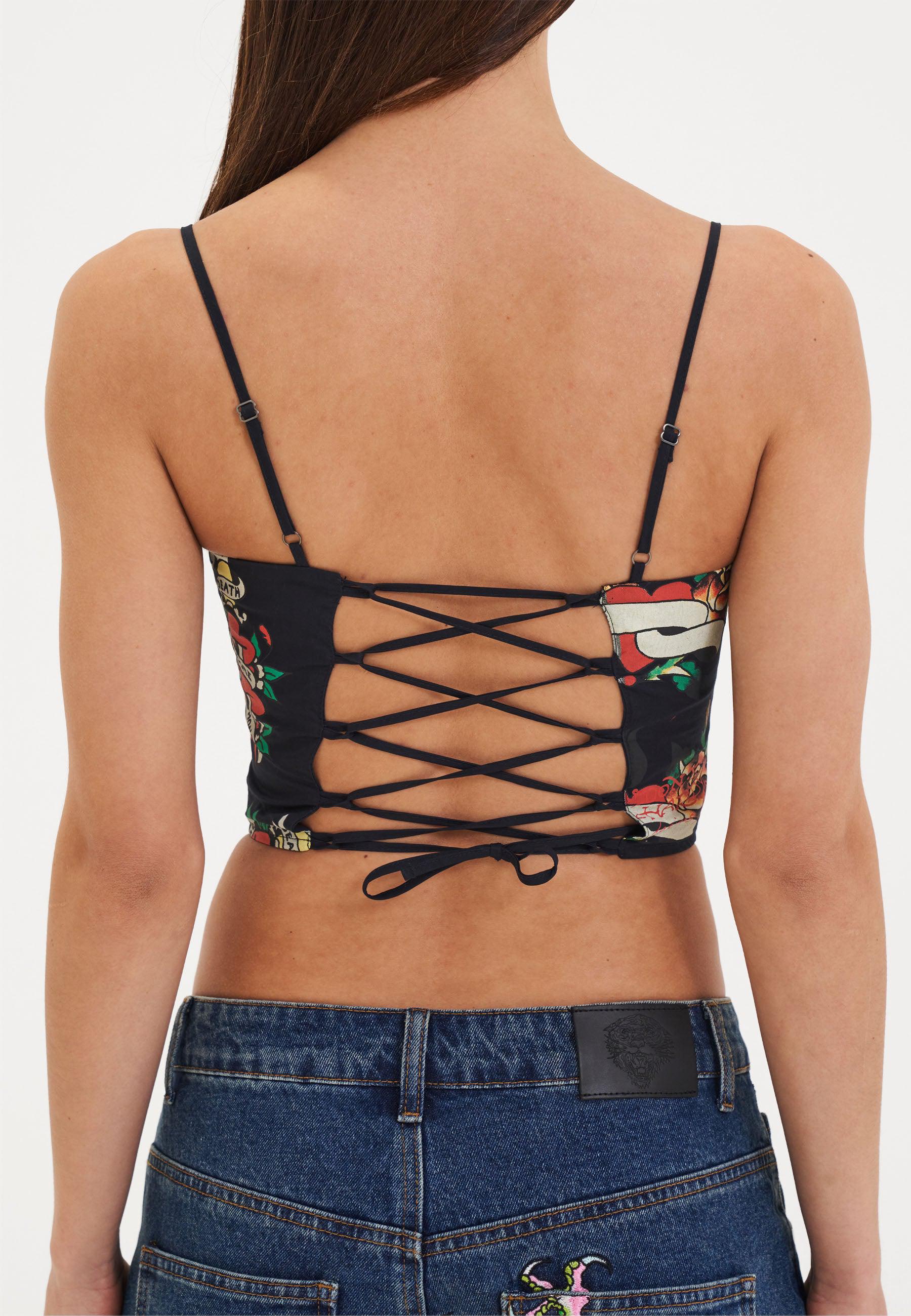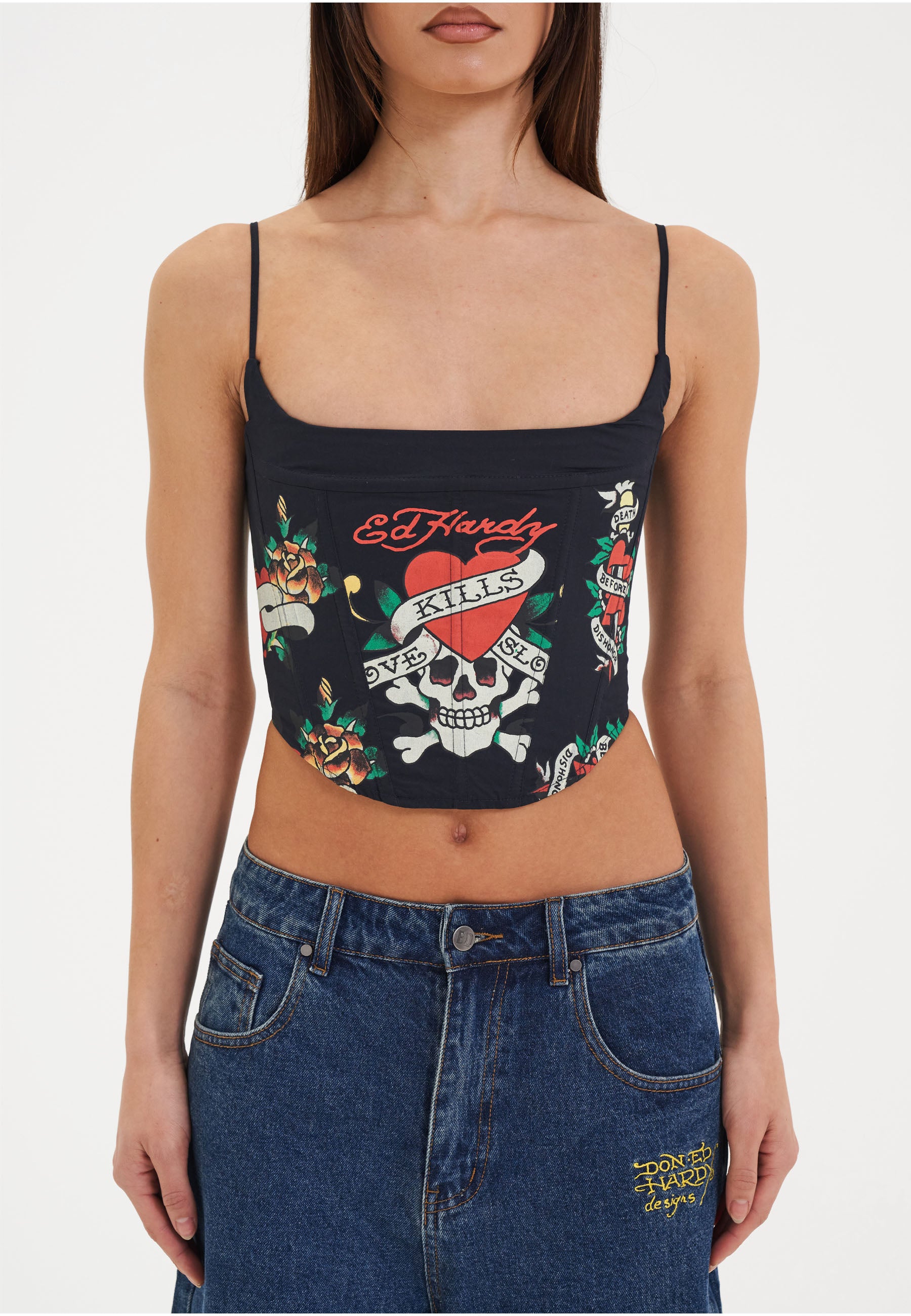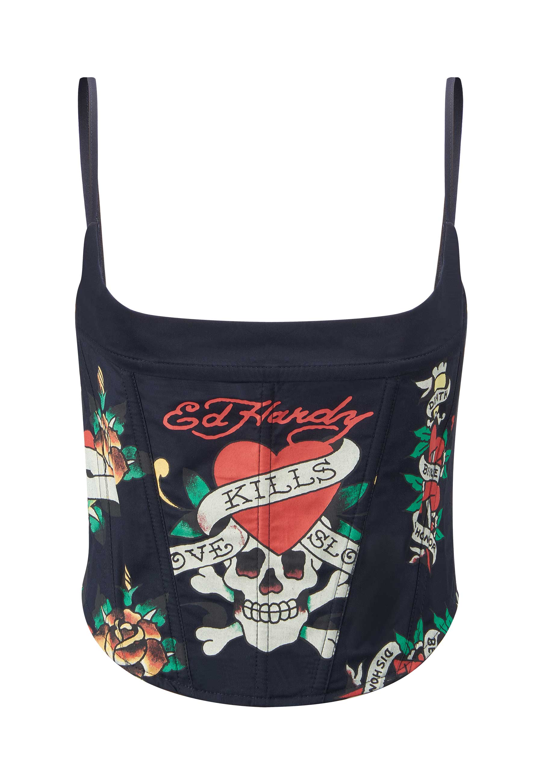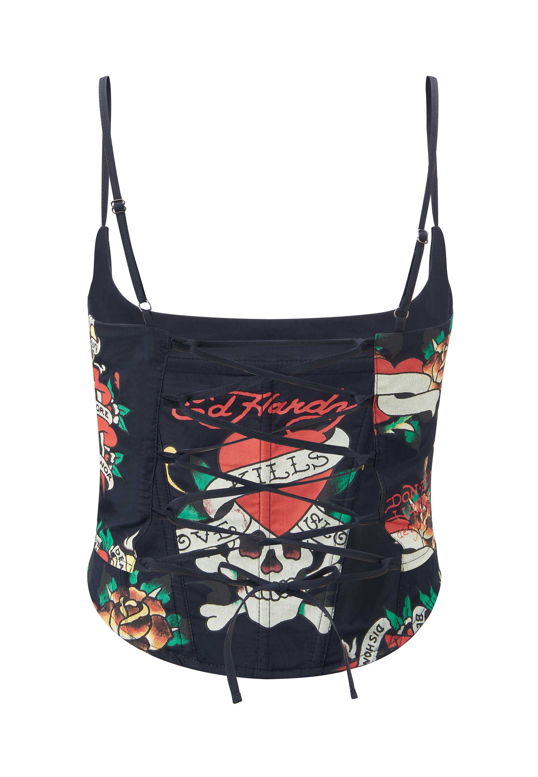 Top espartilho feminino Love Kills Tattoo - Azul Marinho