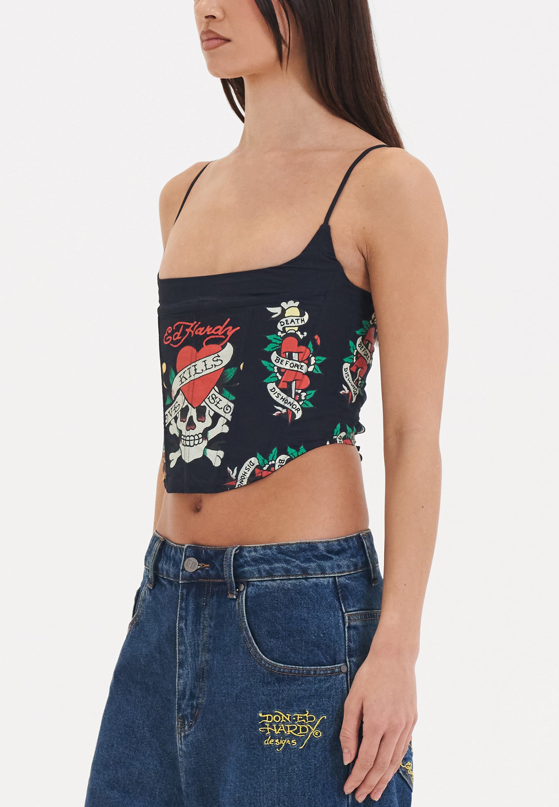 Destaque-se com o Love Kills Corset Top, uma expressão de rebelião sem remorso.