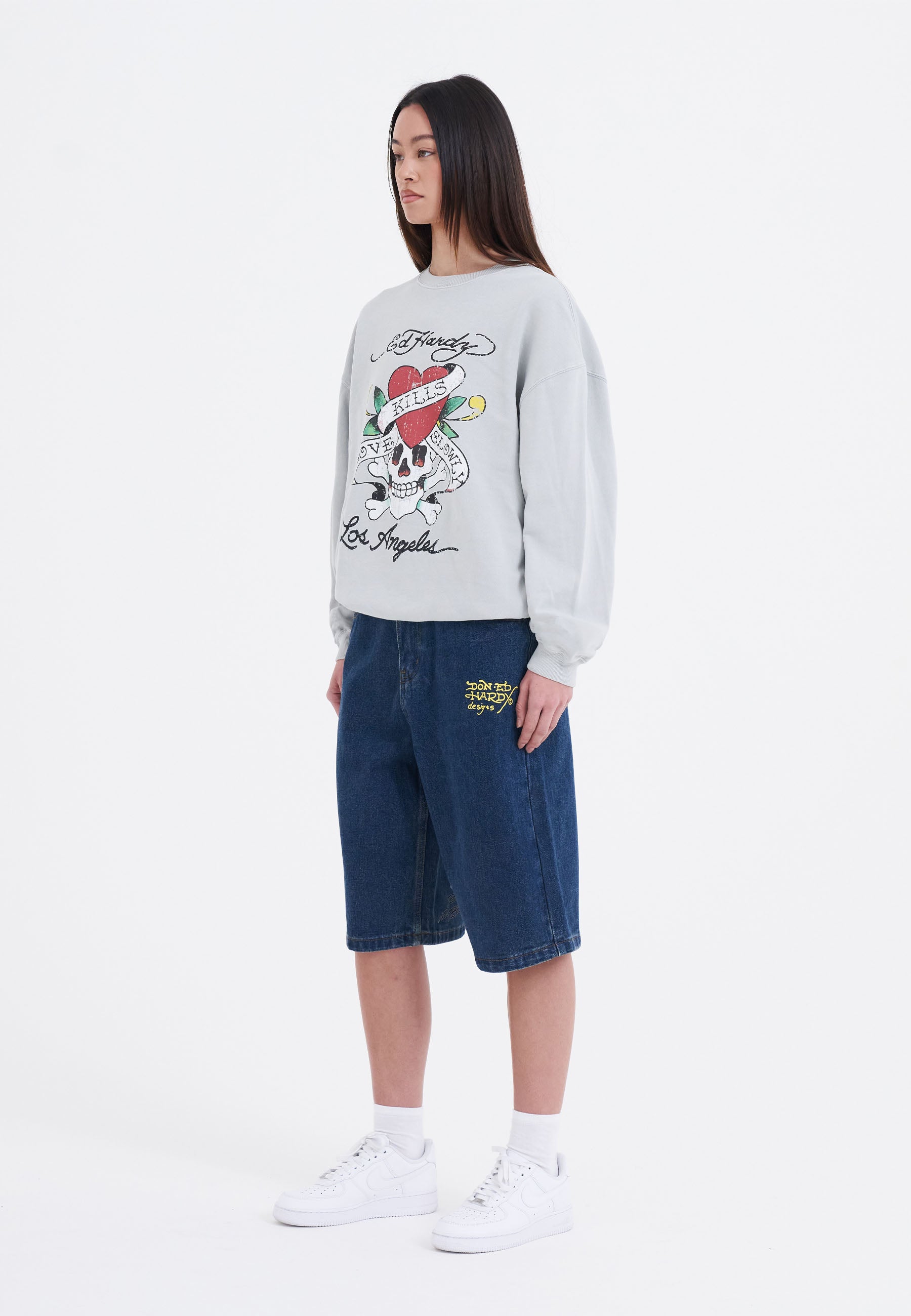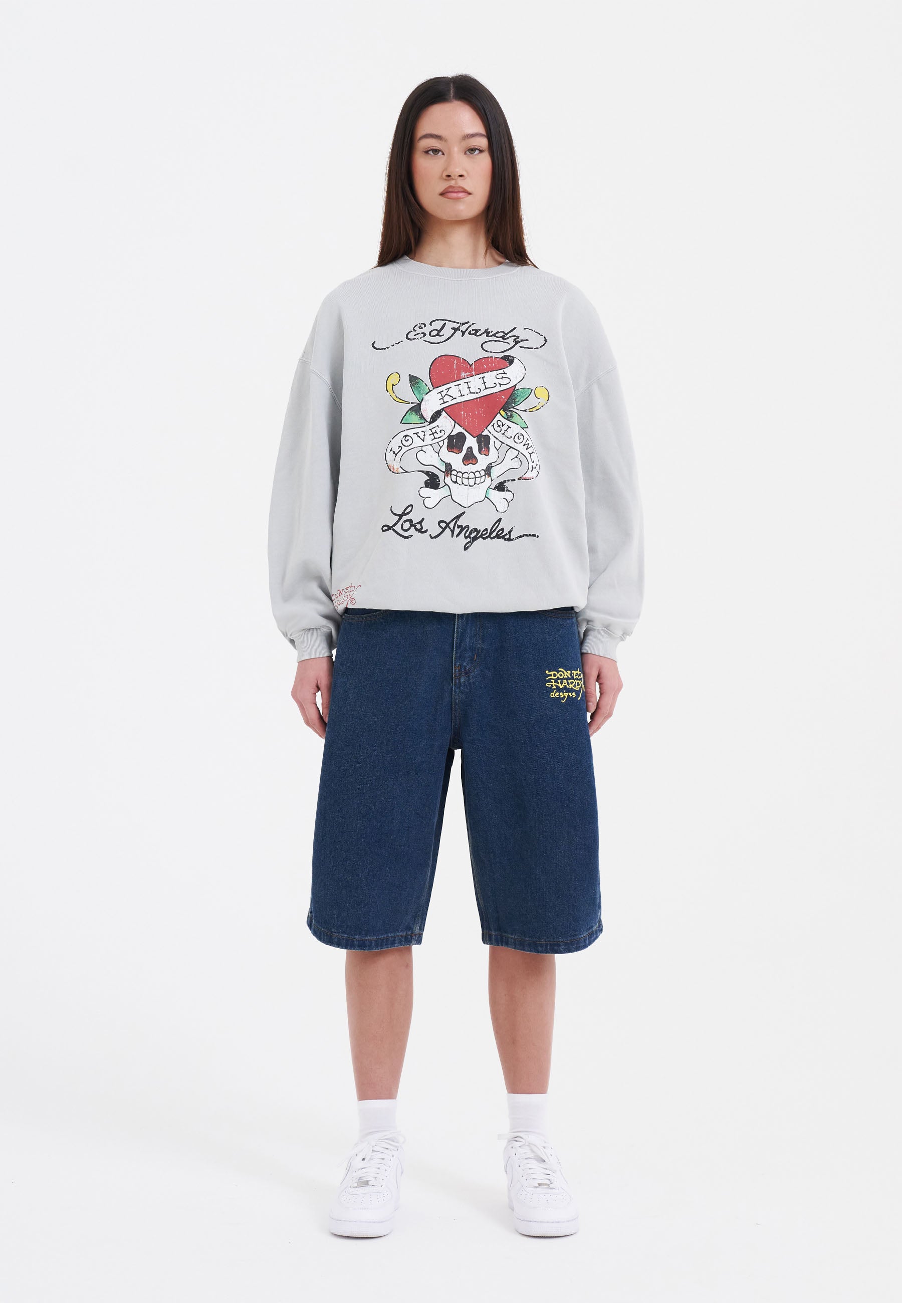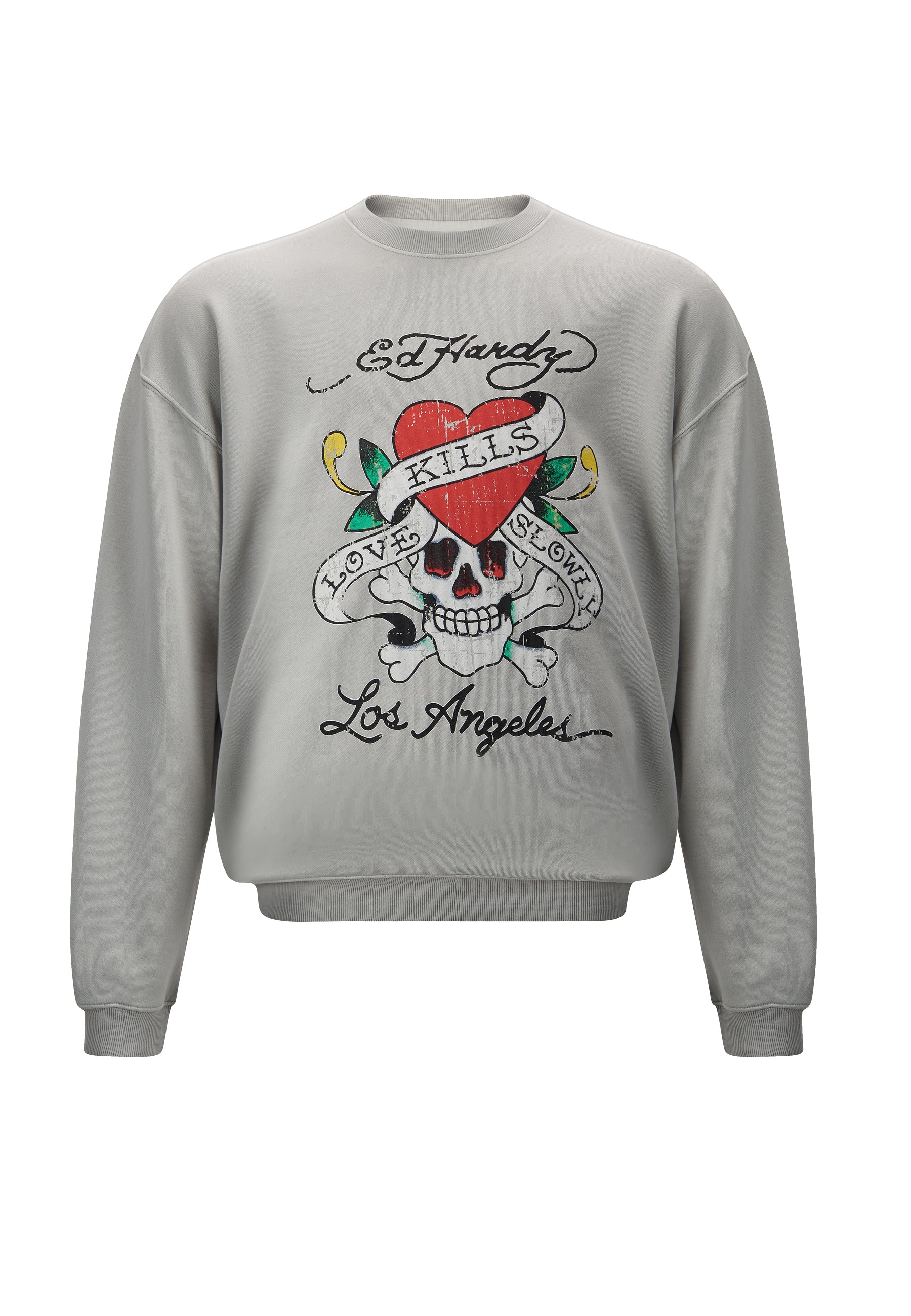 Moletom feminino Love Kill Slowly com gola redonda - cinza