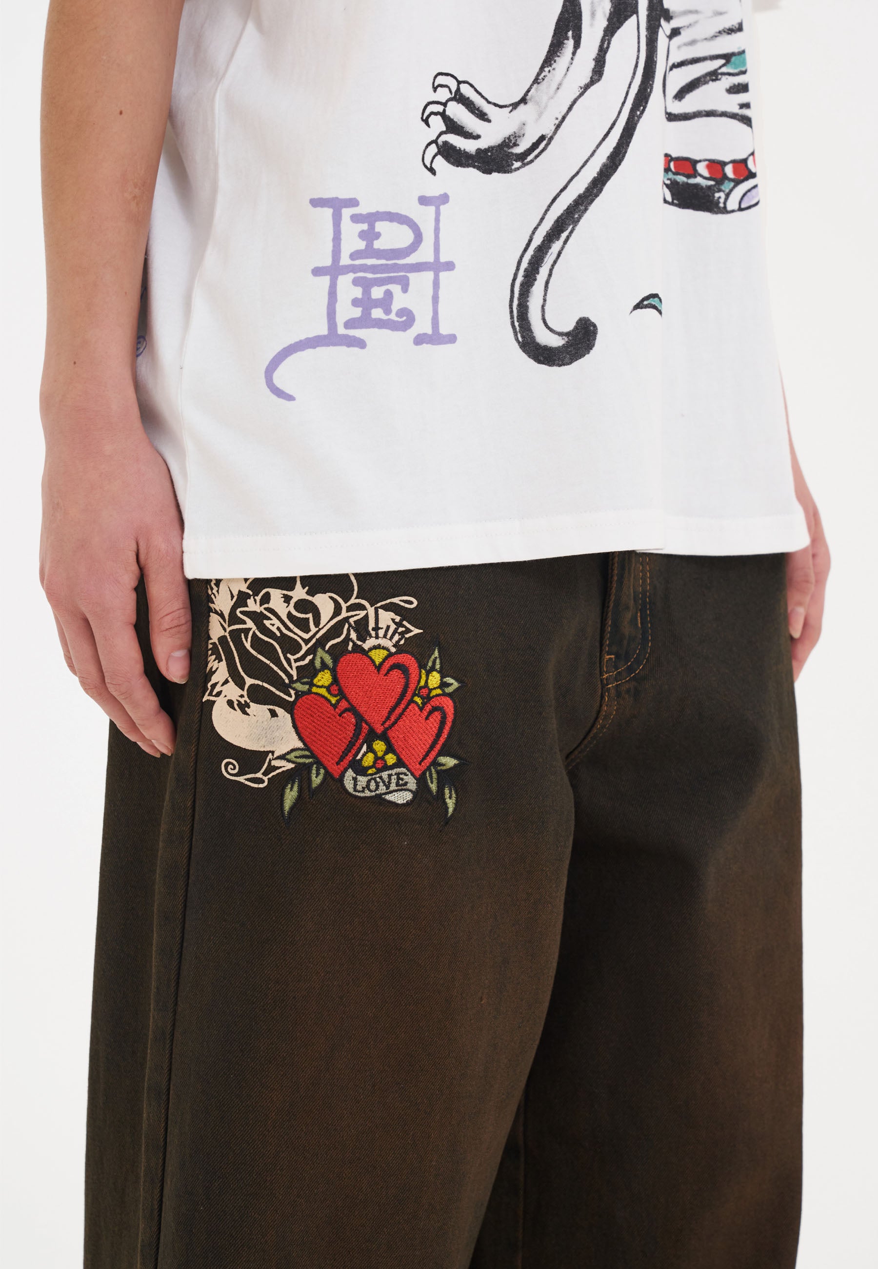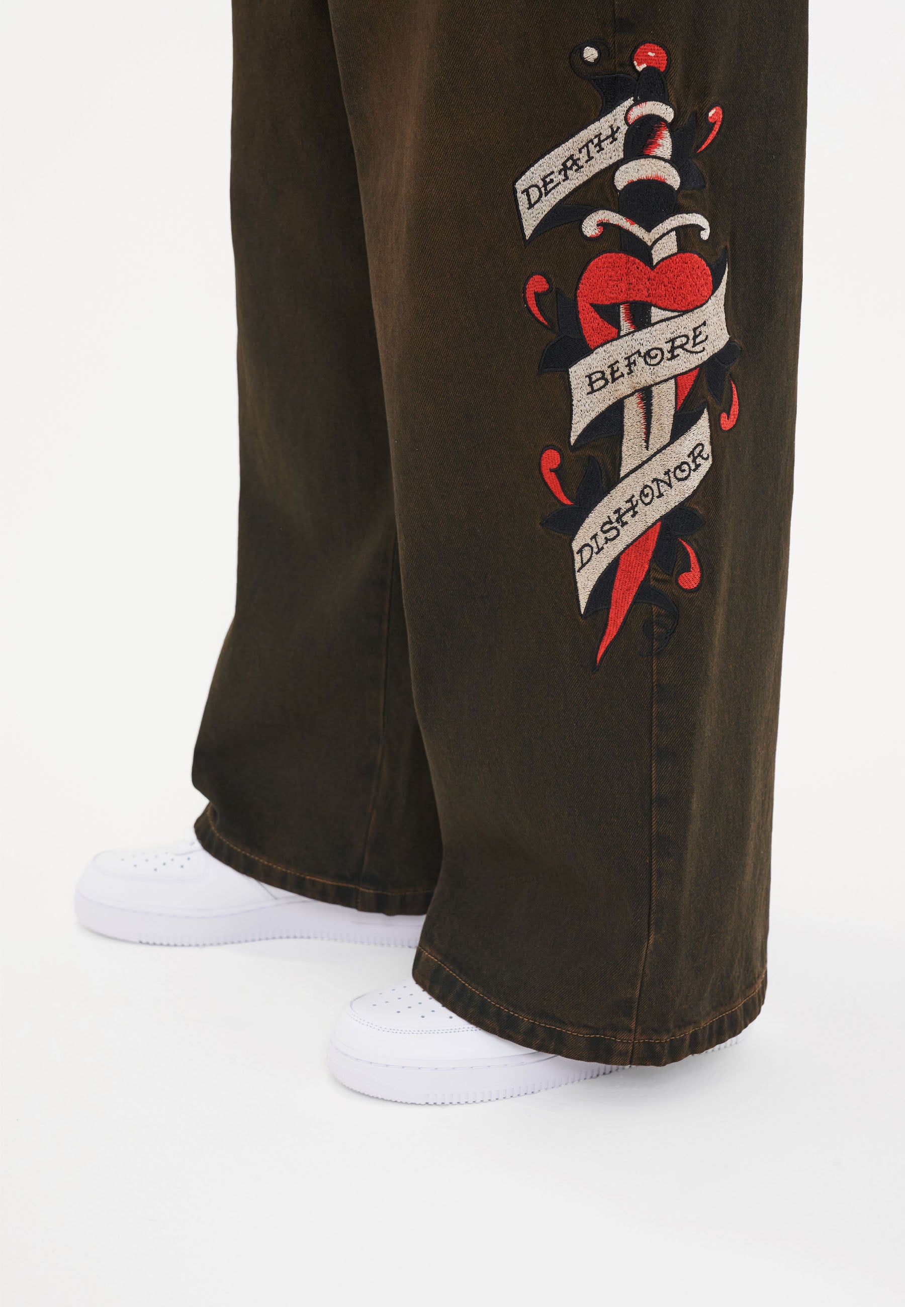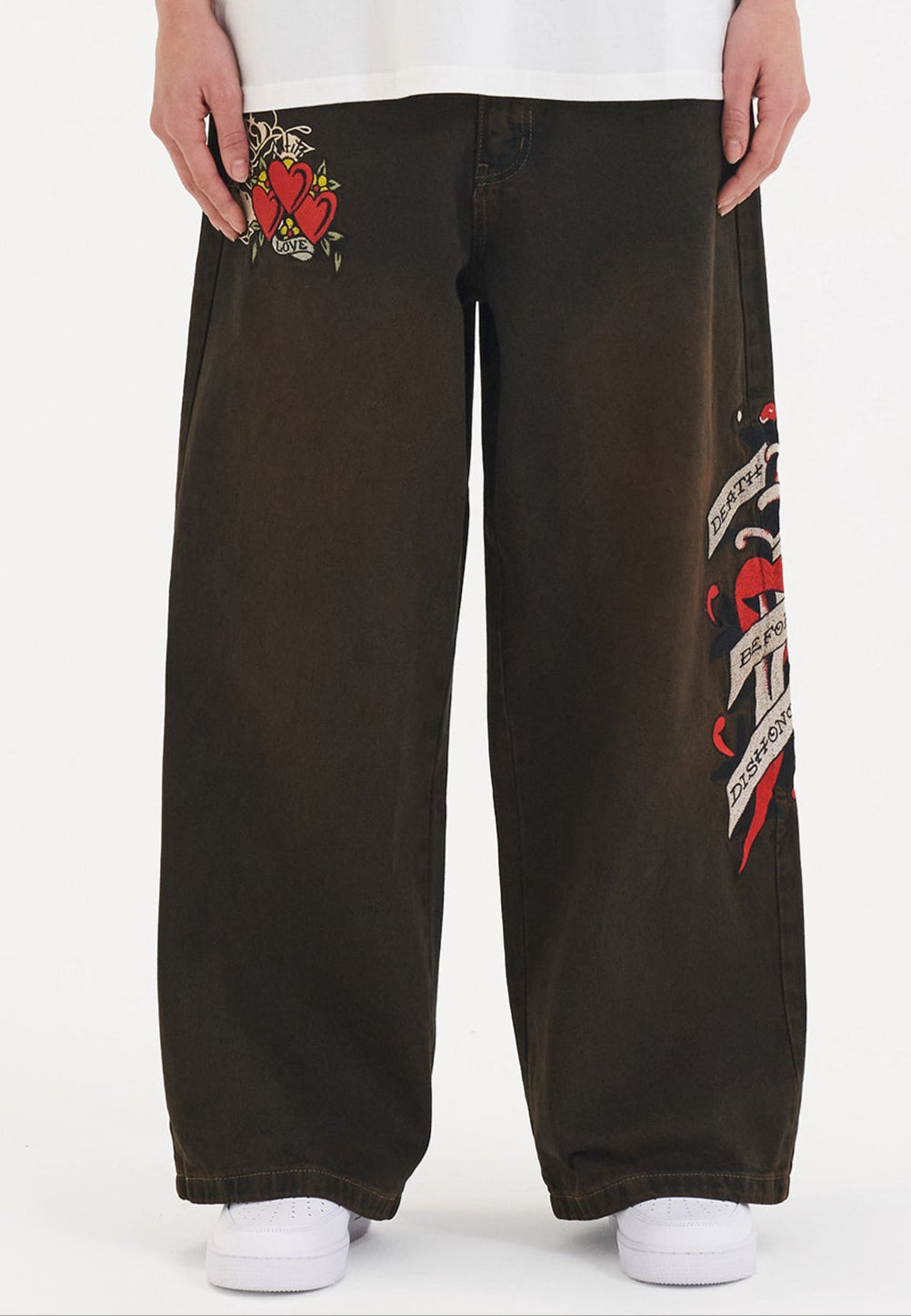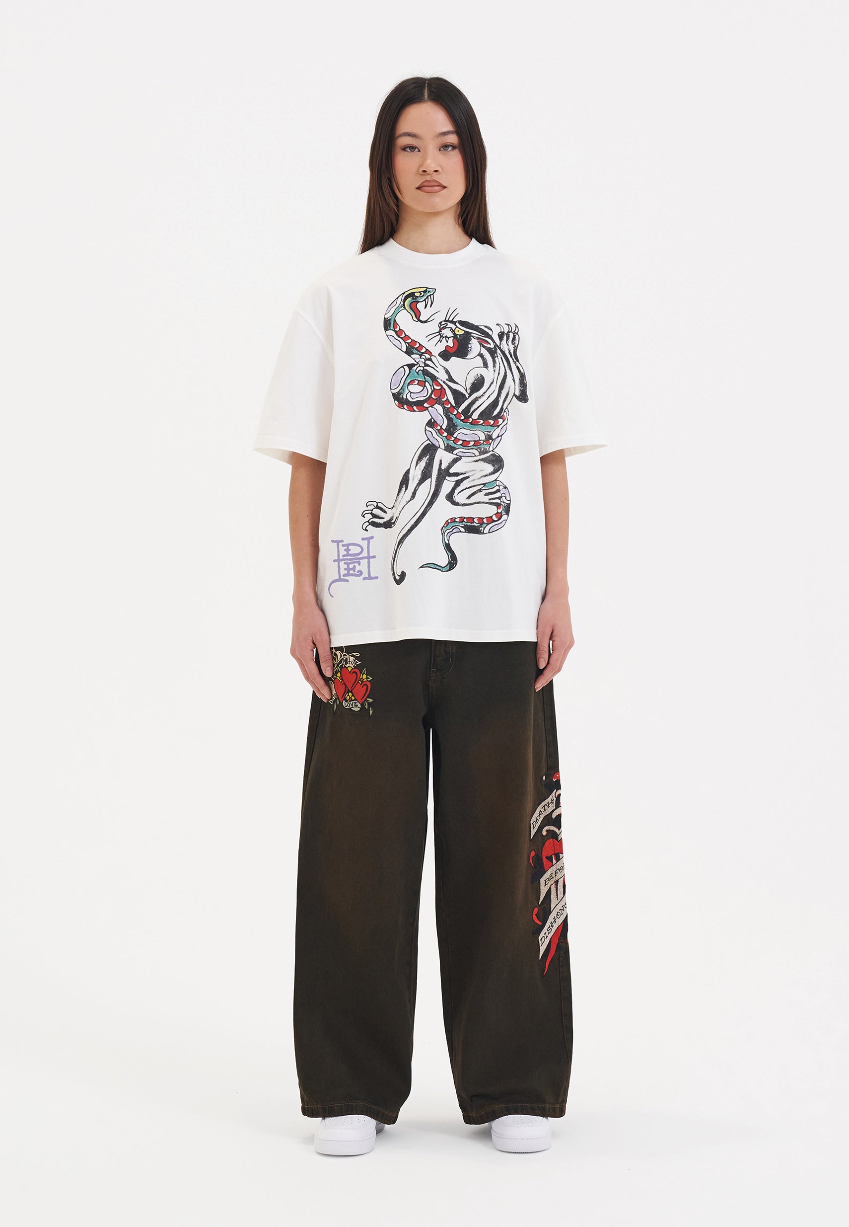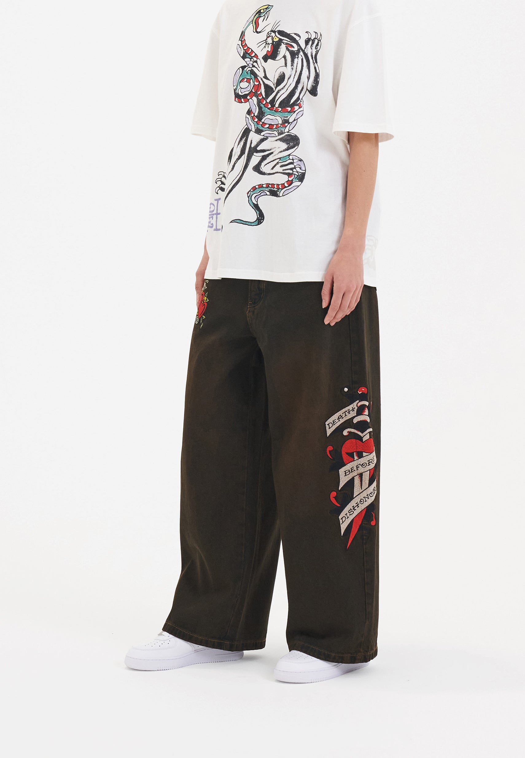 Redefina o conforto com os Death Before Dishonor Xtra Oversized Jeans; excepcionalmente espaçoso com um ajuste ultra descontraído; esta silhueta fresca foi projetada para uma nova era de Ed Hardy.