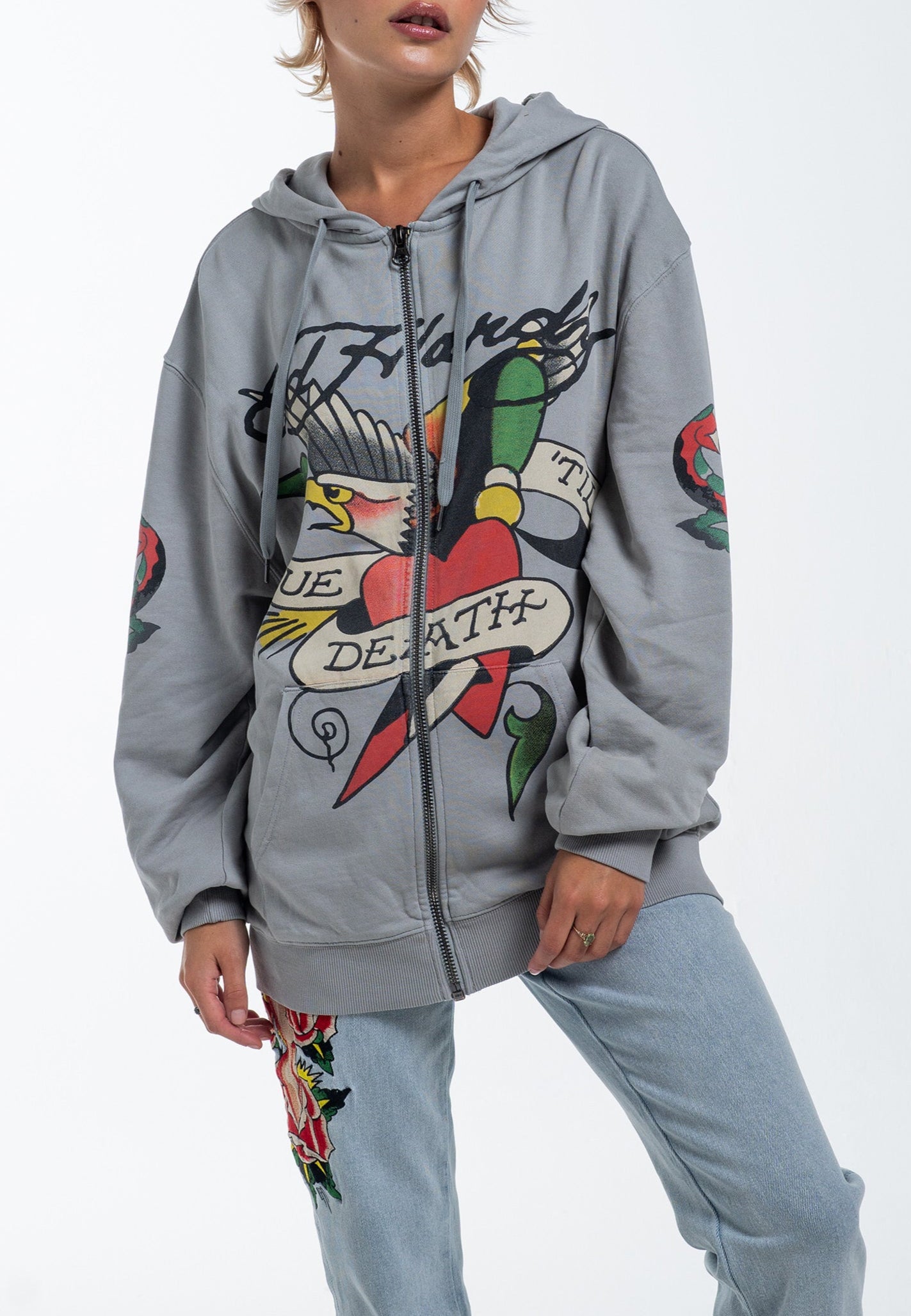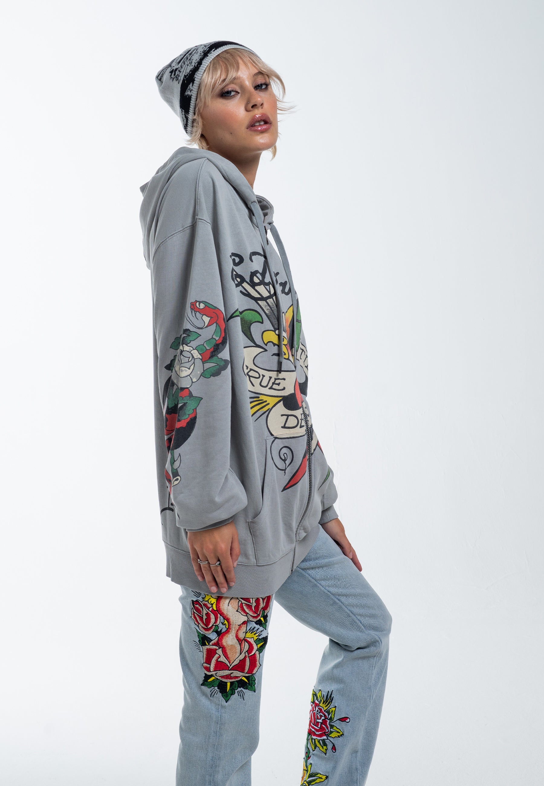 O gráfico True Til Death tornou-se um ícone atemporal de Ed Hardy, reimaginado ao longo dos anos com novas configurações para cada geração adorar. Entre na temporada com o clássico True Til Death Zip-Thru Hoodie, orgulhosamente apresentando o emblema duradouro no peito.