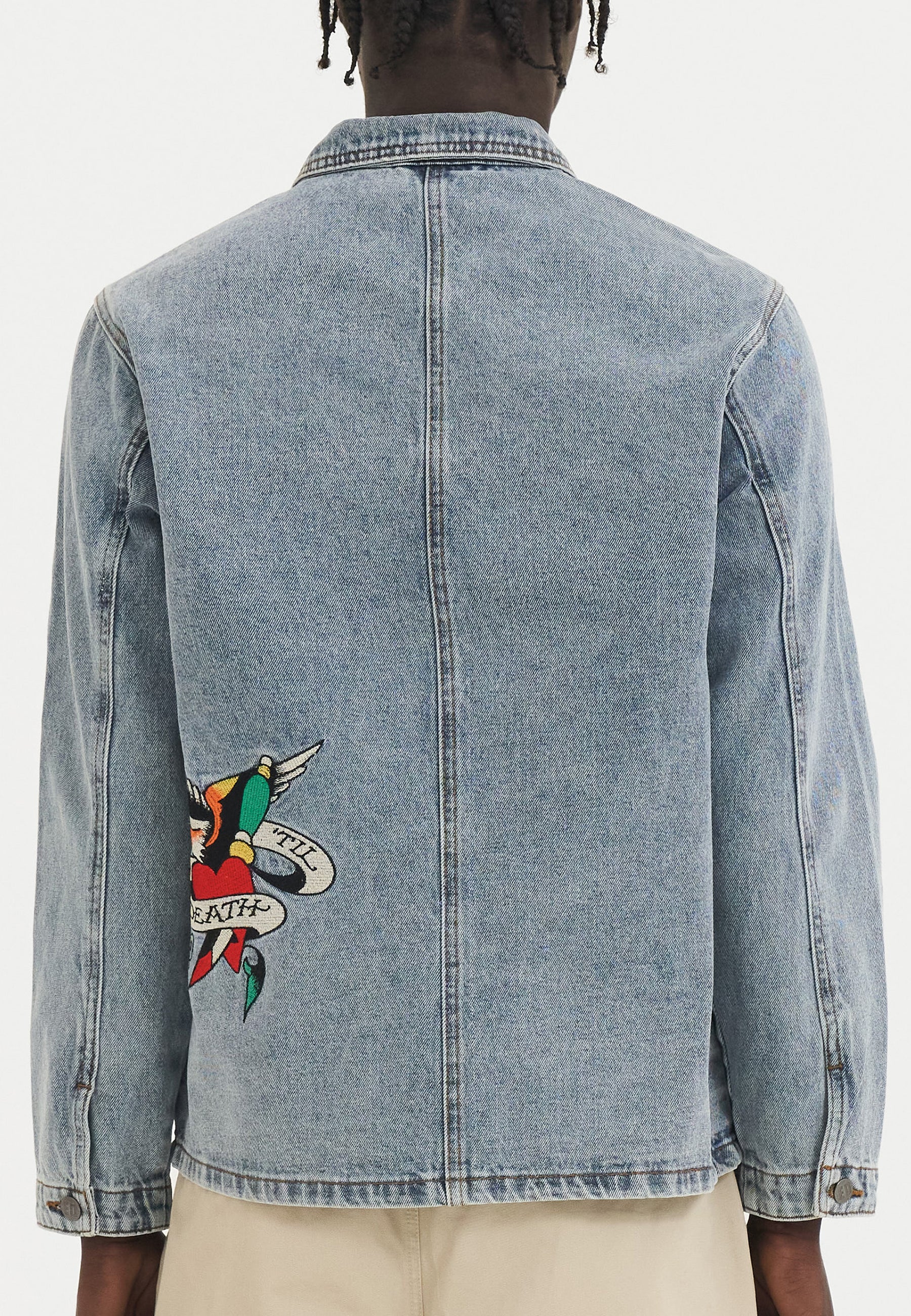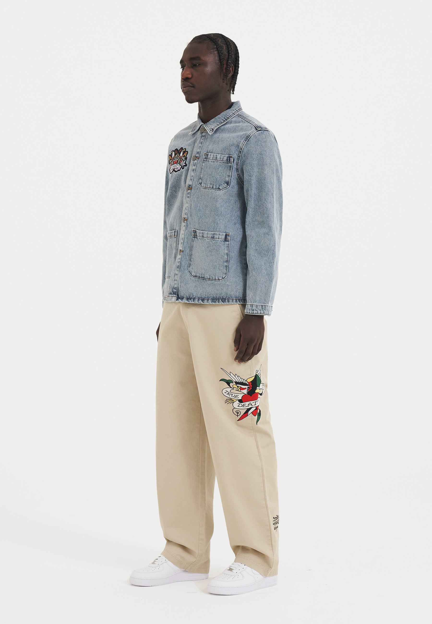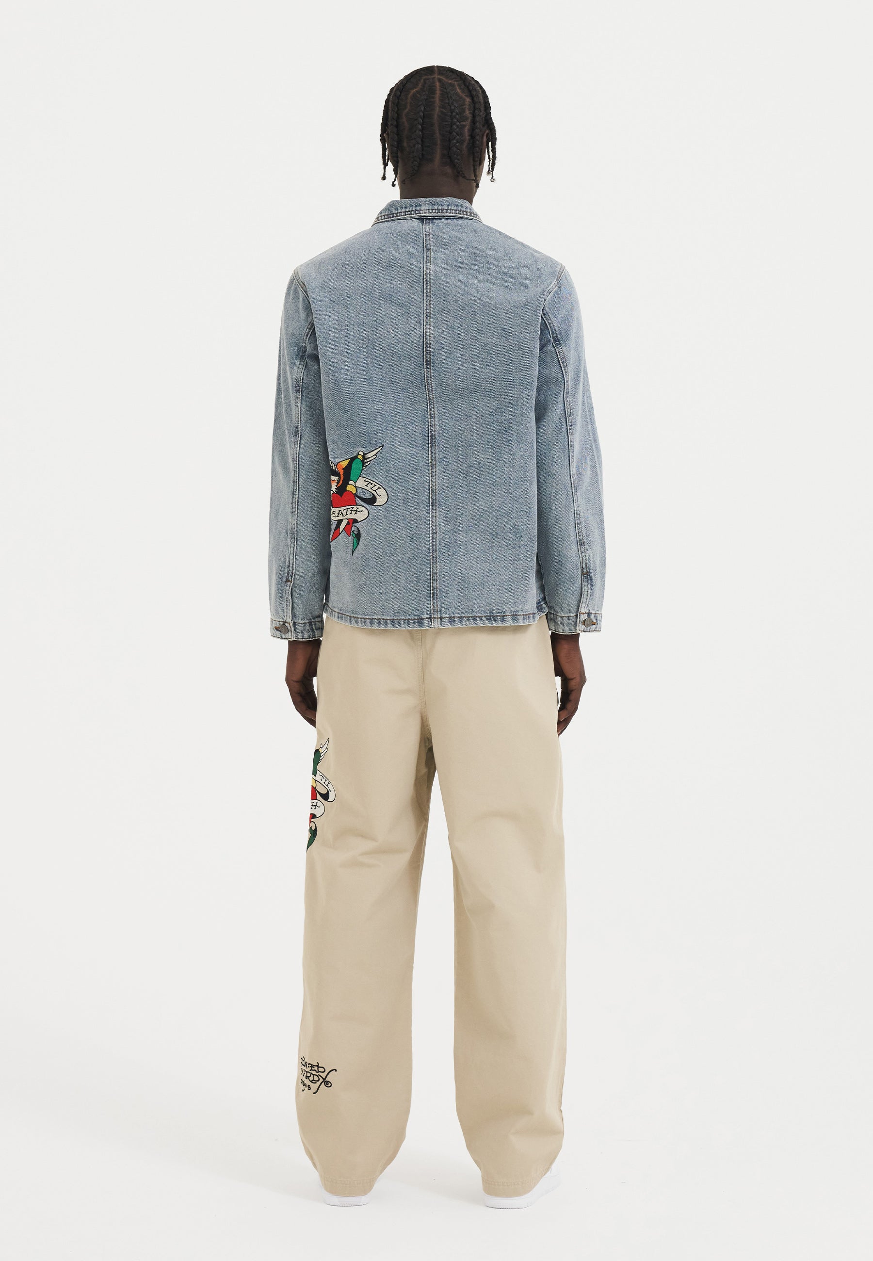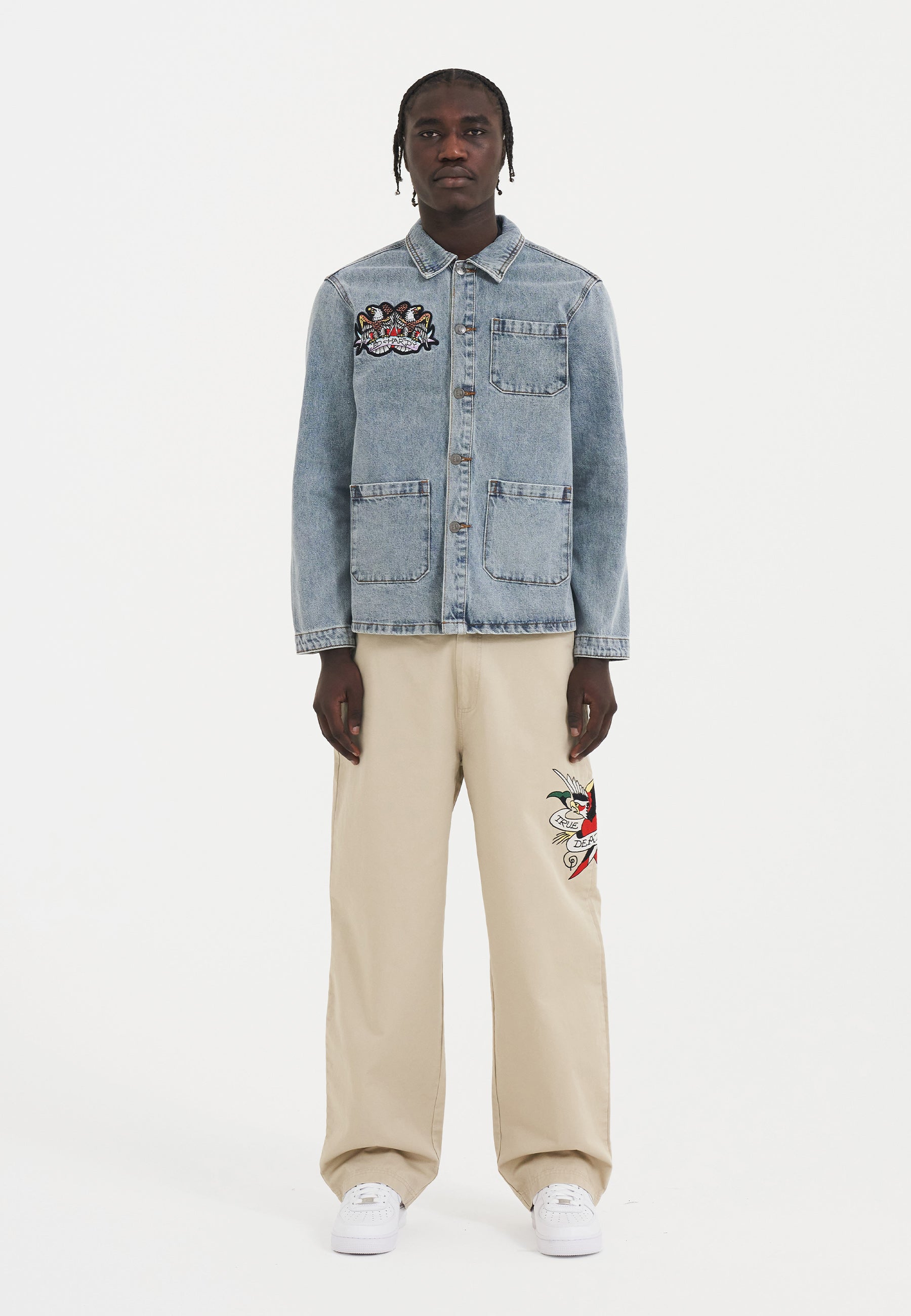 A nova temporada Battle of Eagles Denim Chore Jacket é uma jaqueta leve e premium, perfeita para sobrepor este AW. Revelando os desenhos icônicos das tatuagens de Ed Hardy mais uma vez em bordados coloridos.