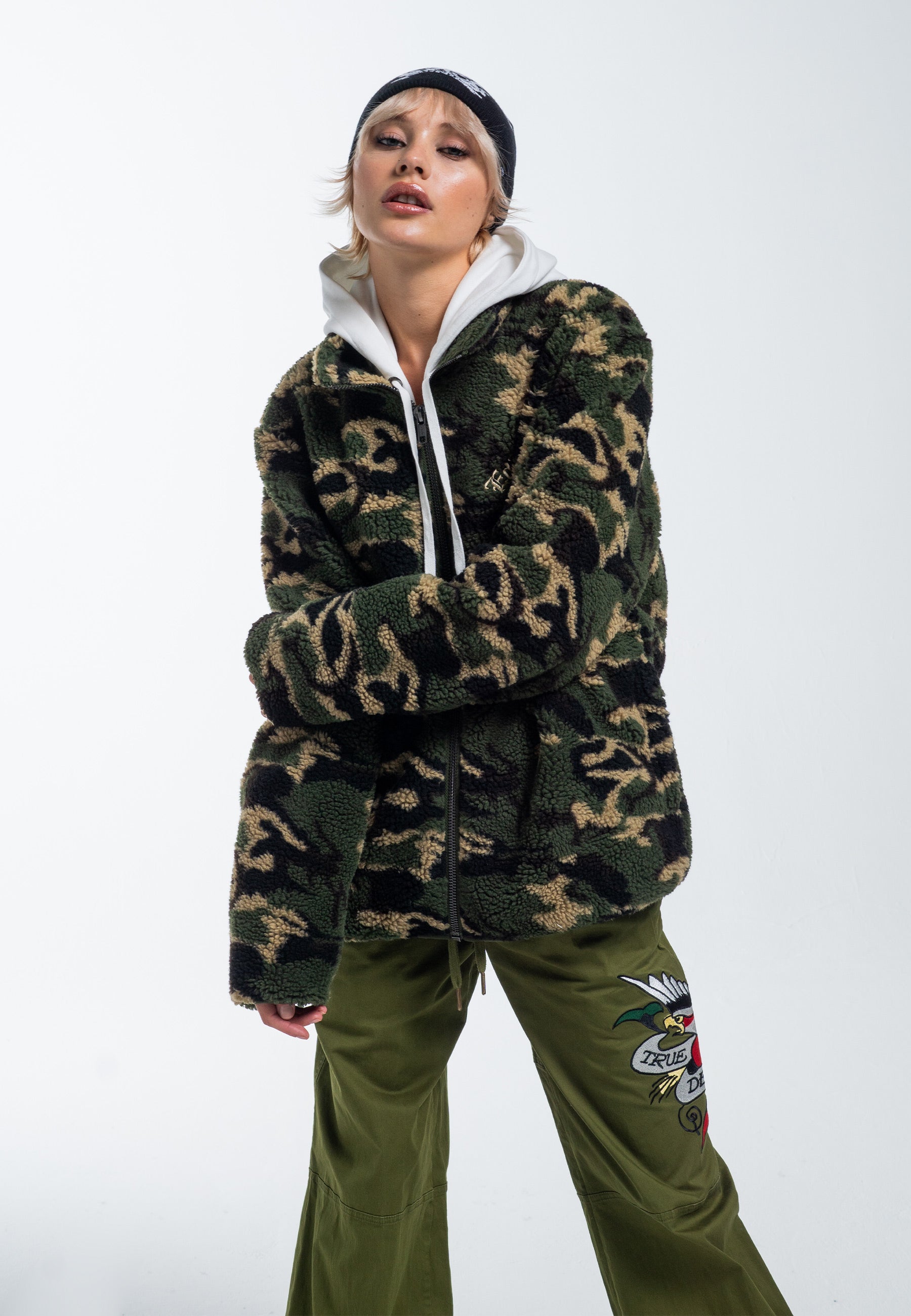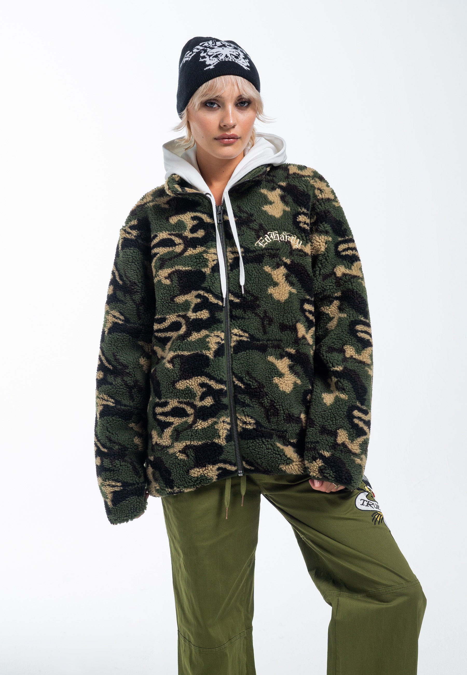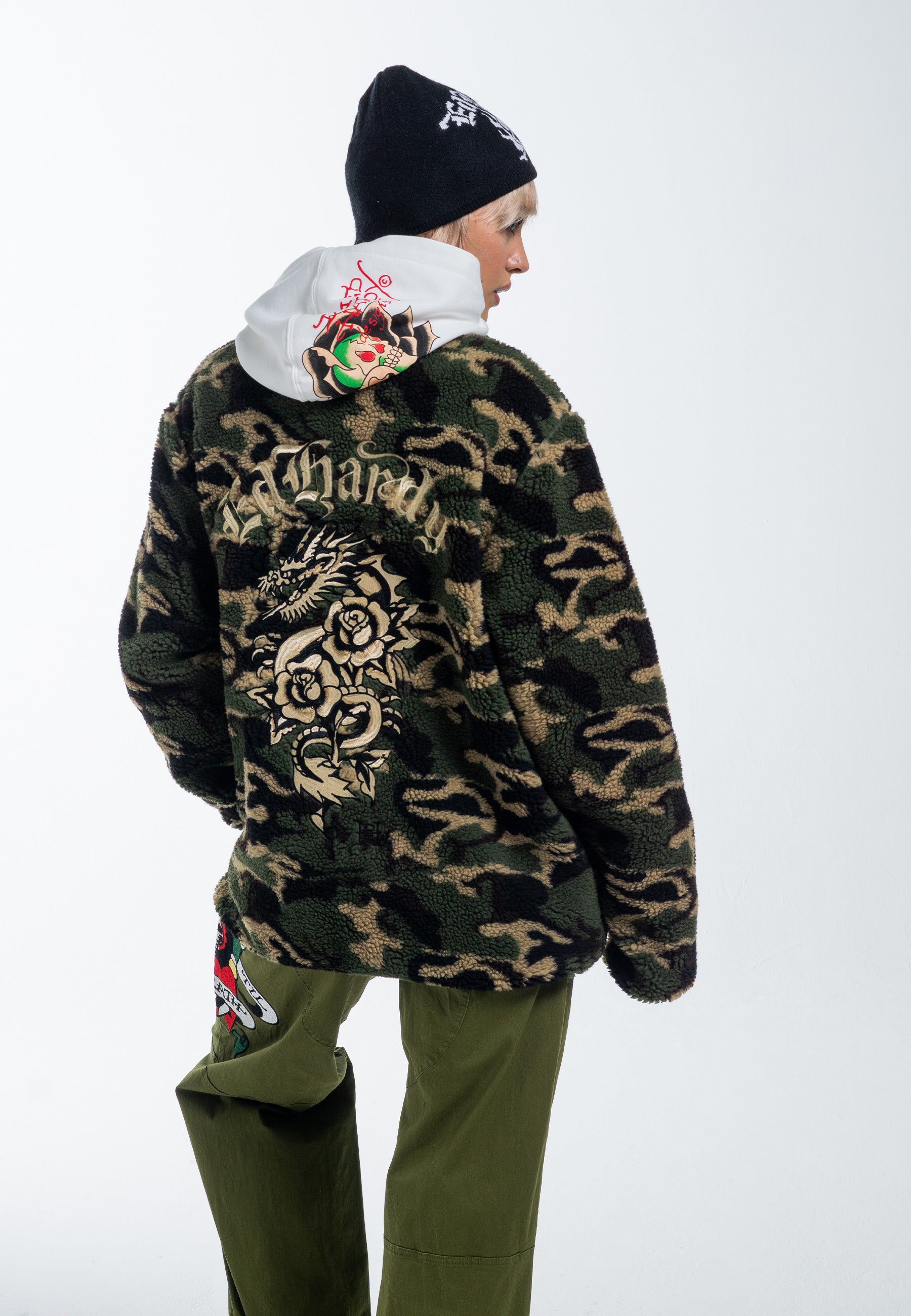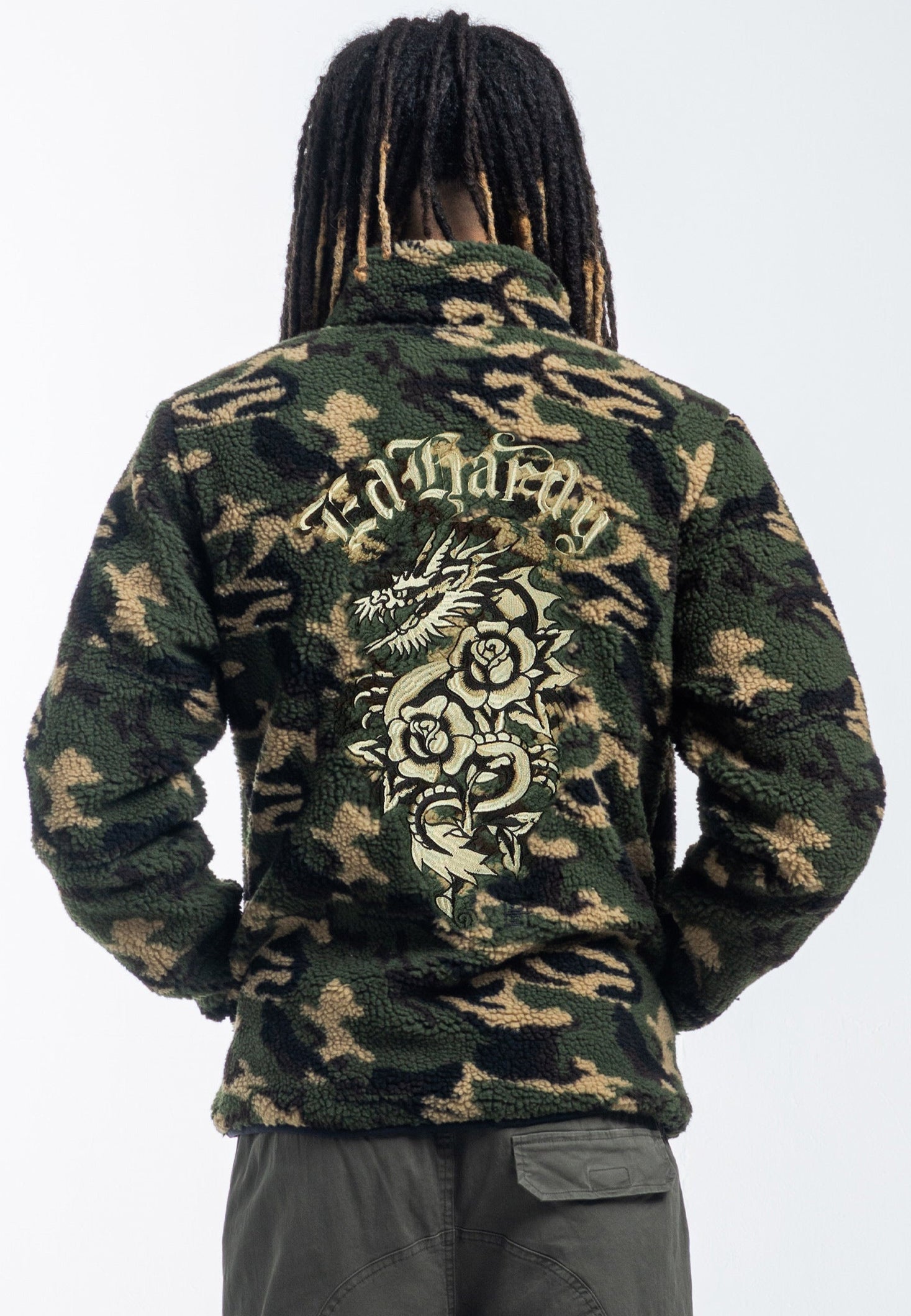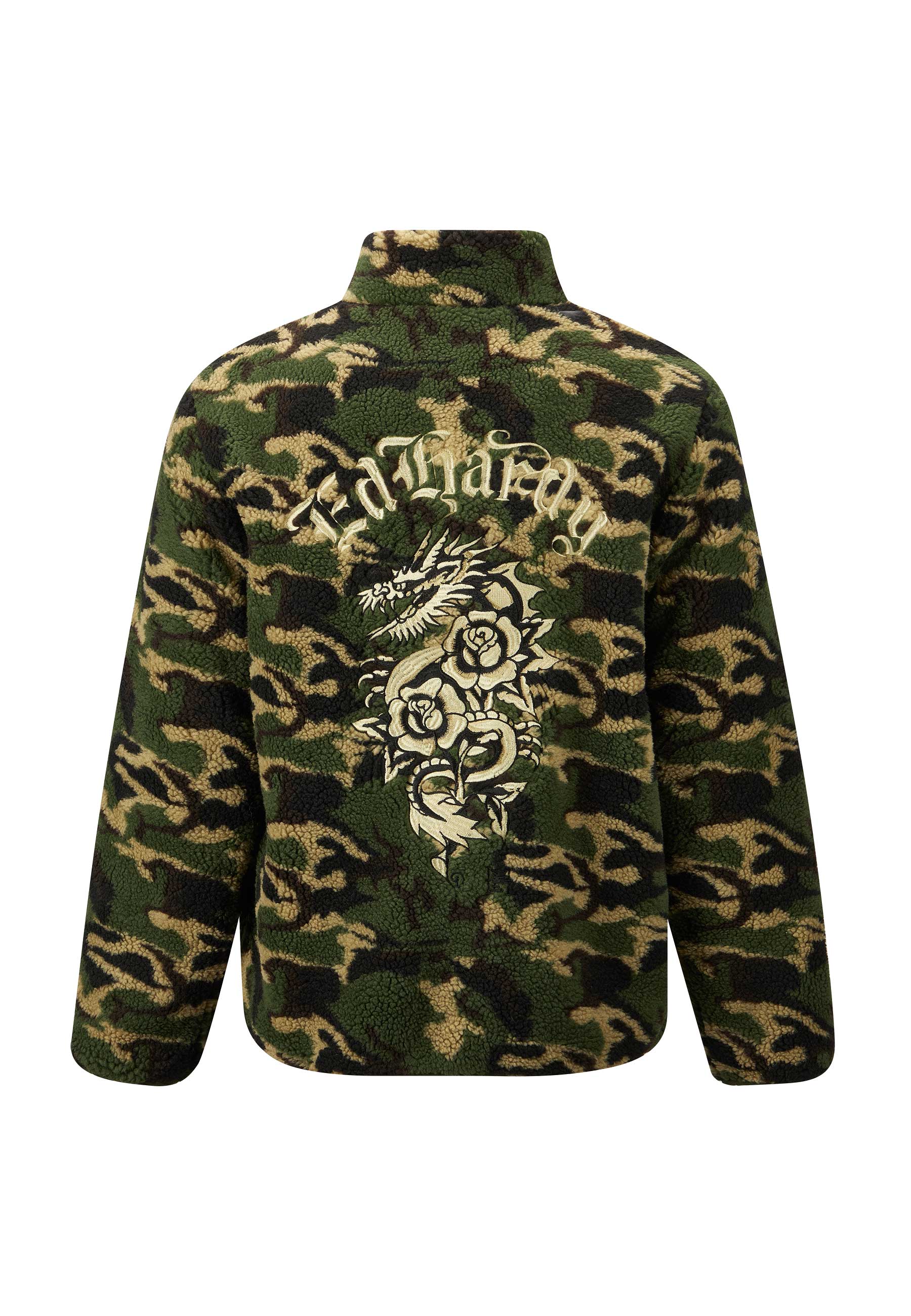 Jaqueta de lã masculina Dragon & Rose Camo Zip Thru Borg - Green Camo