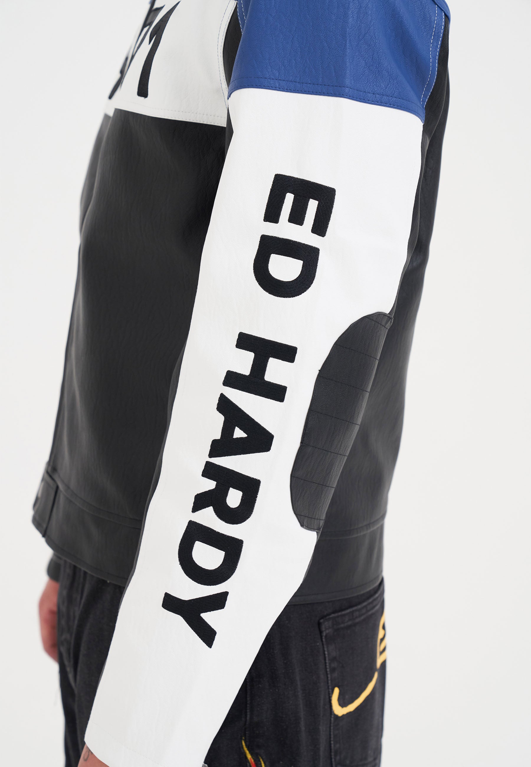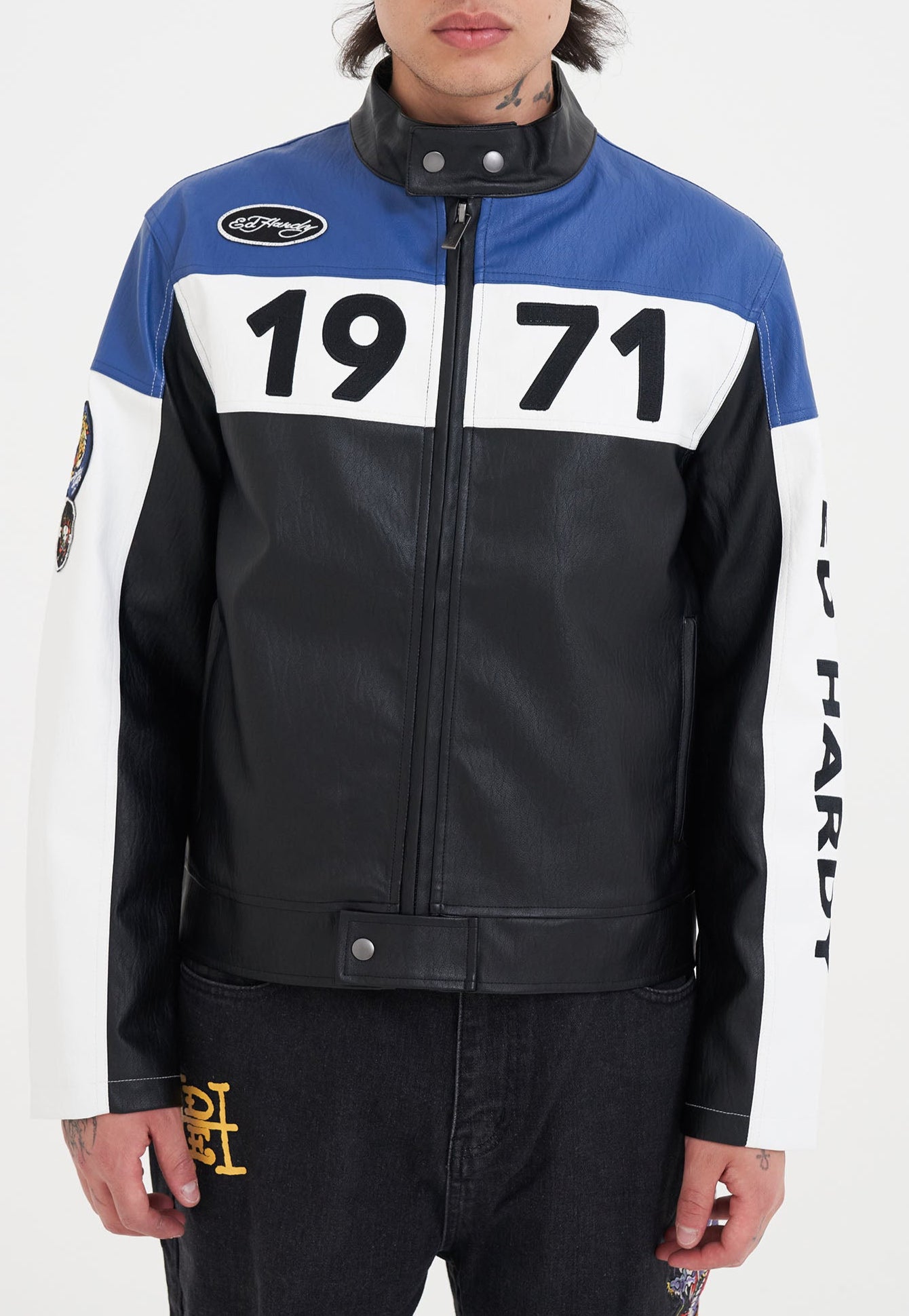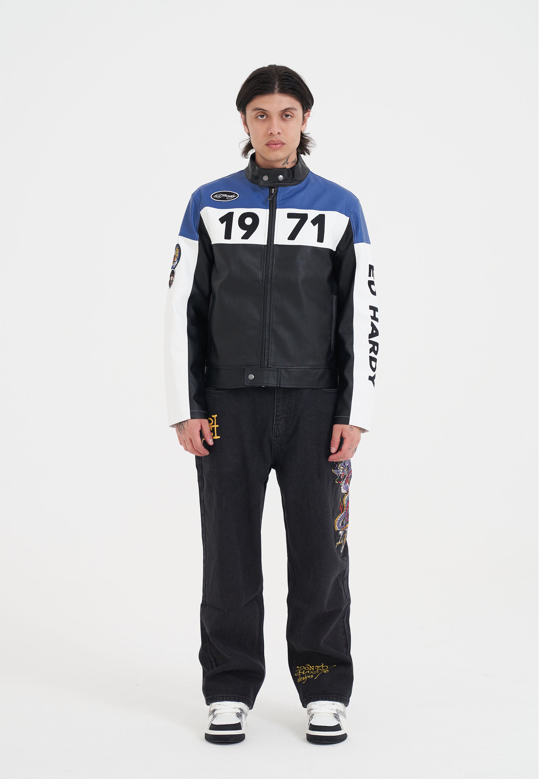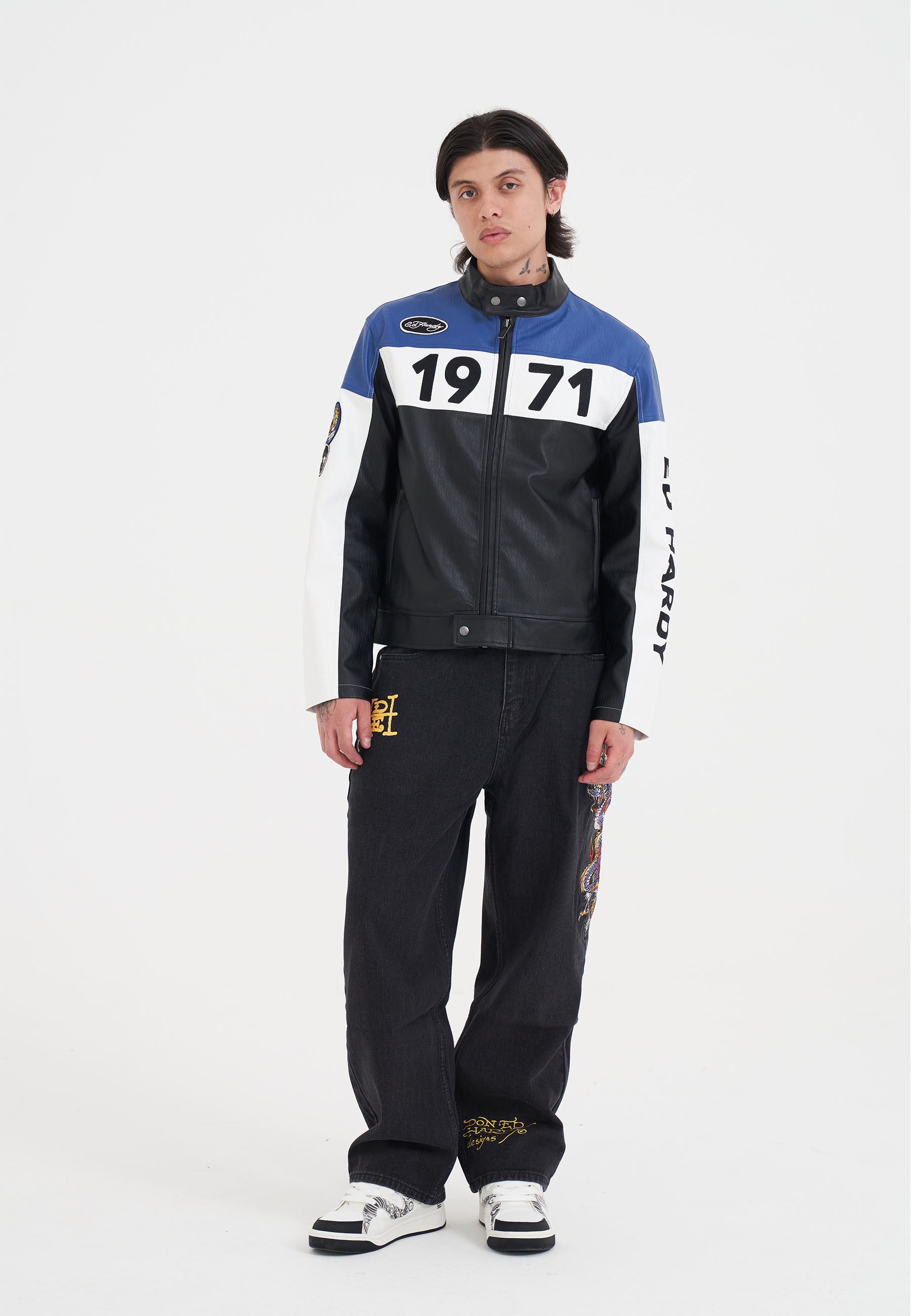 Jaqueta masculina ED-1971 Moto Biker - preta/azul/branca