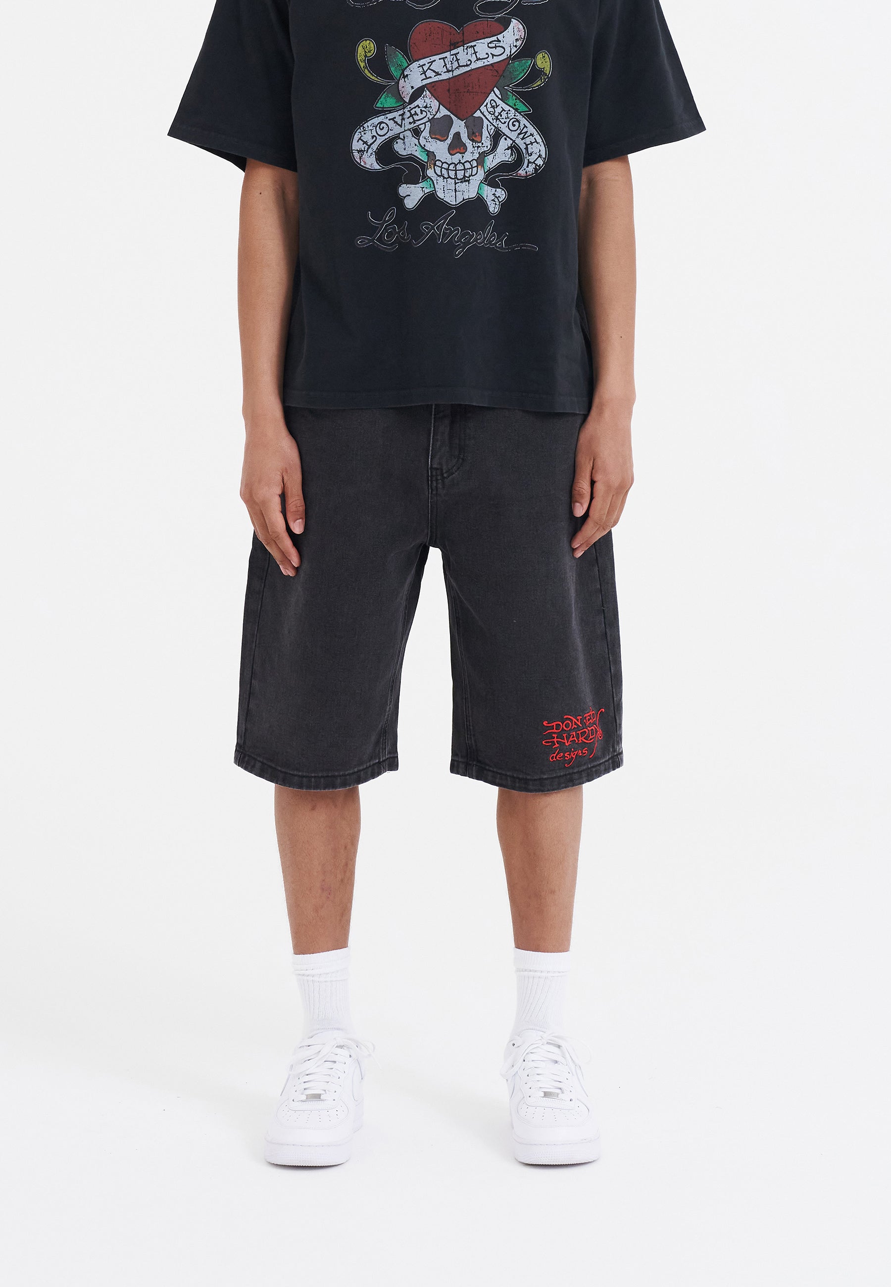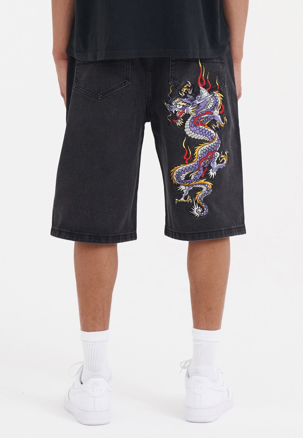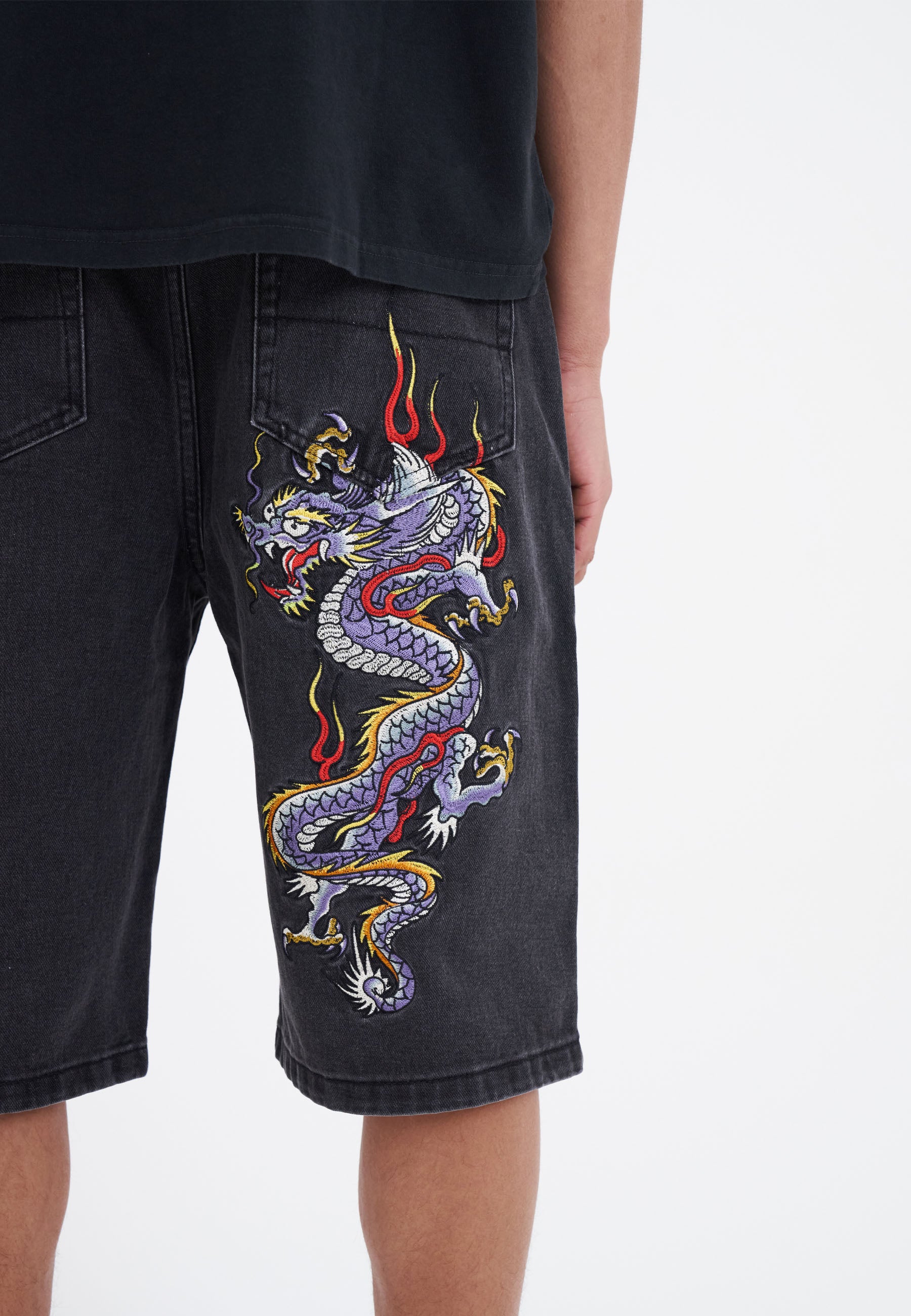 Shorts jeans masculinos Battle Dragon - preto lavado