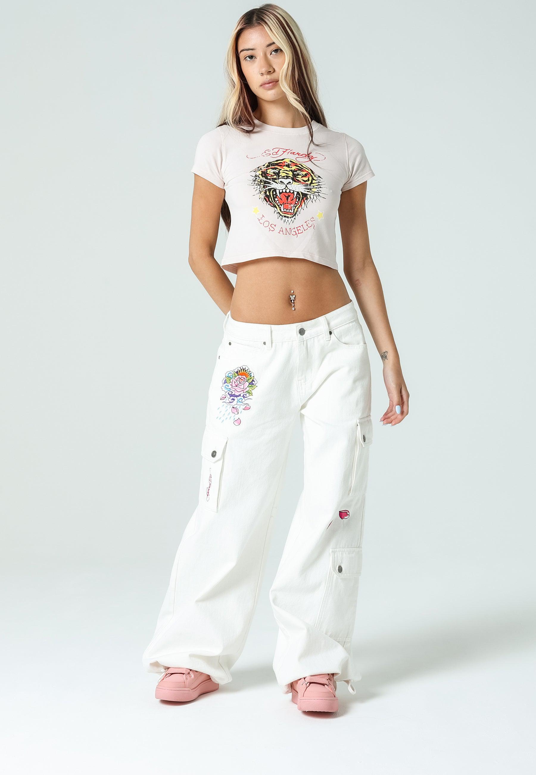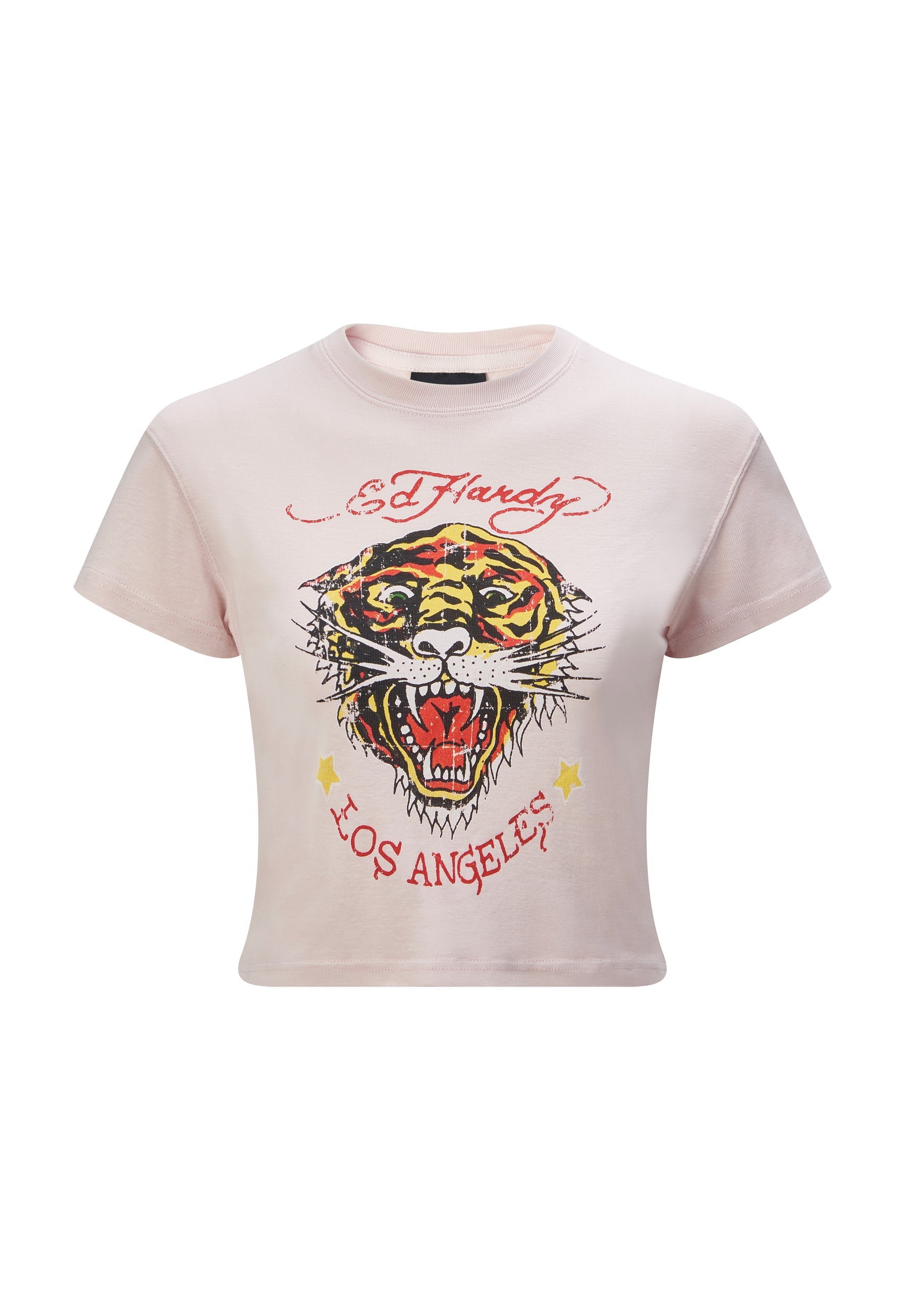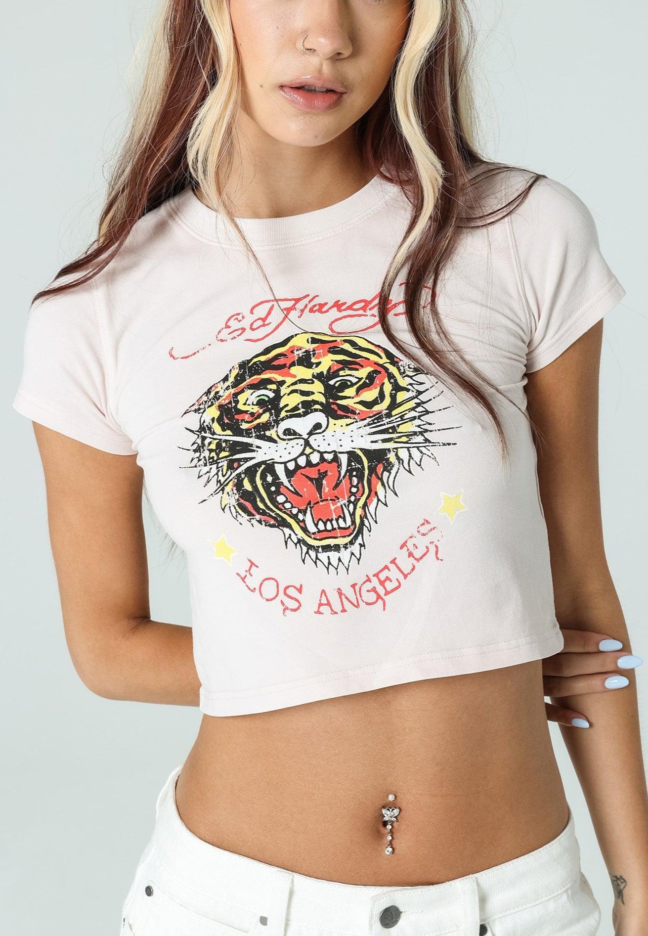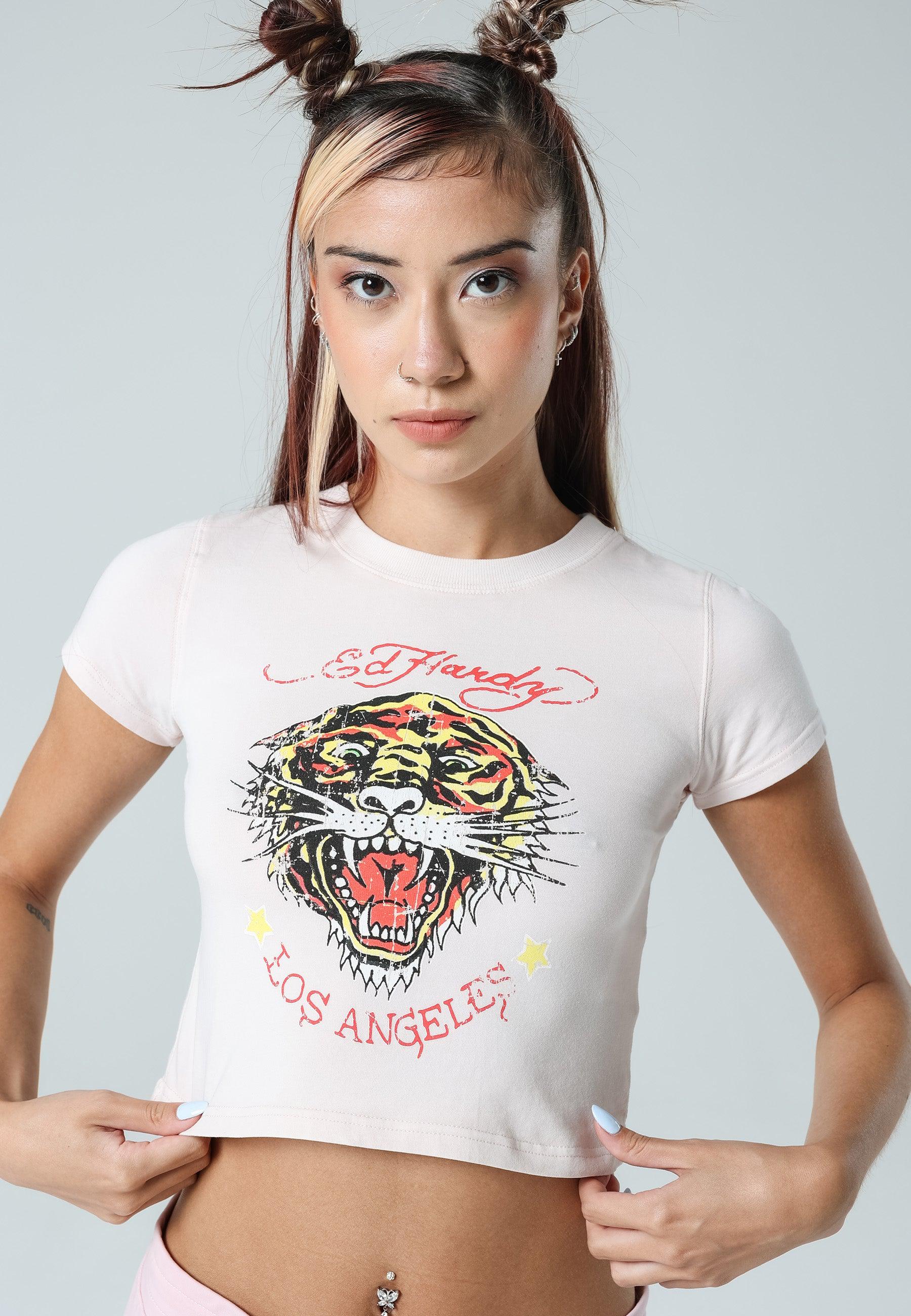 Camiseta feminina recortada La-Roar-Tiger para bebê - rosa