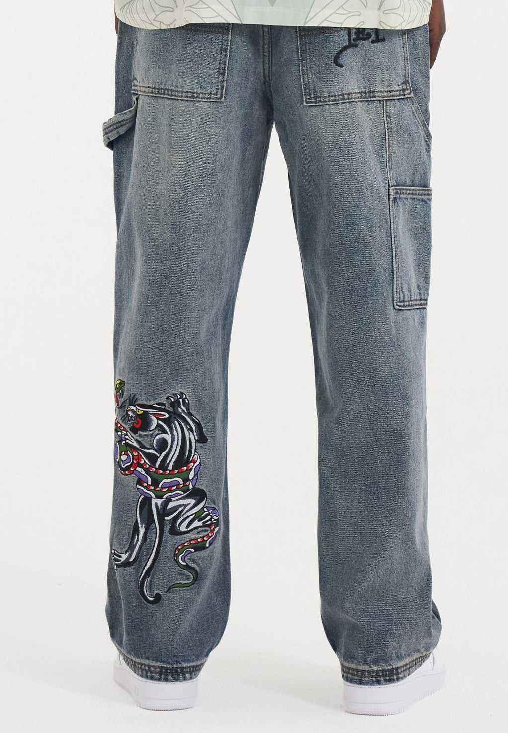 Reimagine seus clássicos de jeans com as calças jeans Snake & Panther Carpenter. Apresentando bordados em cores vibrantes e um corte descontraído.