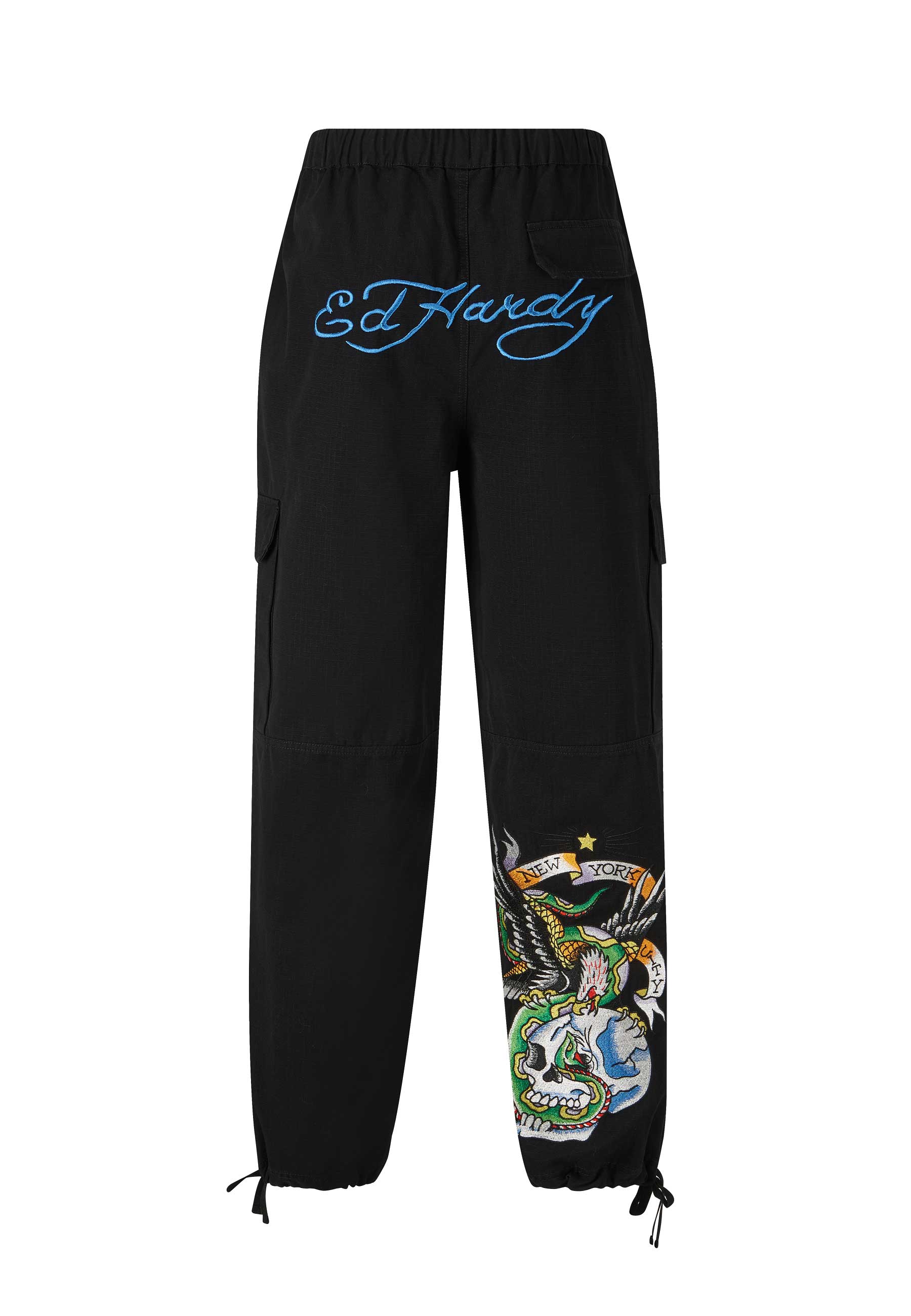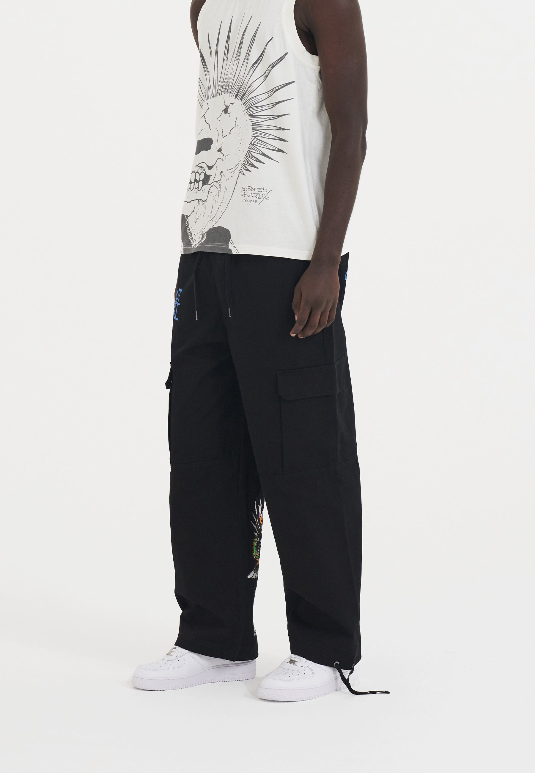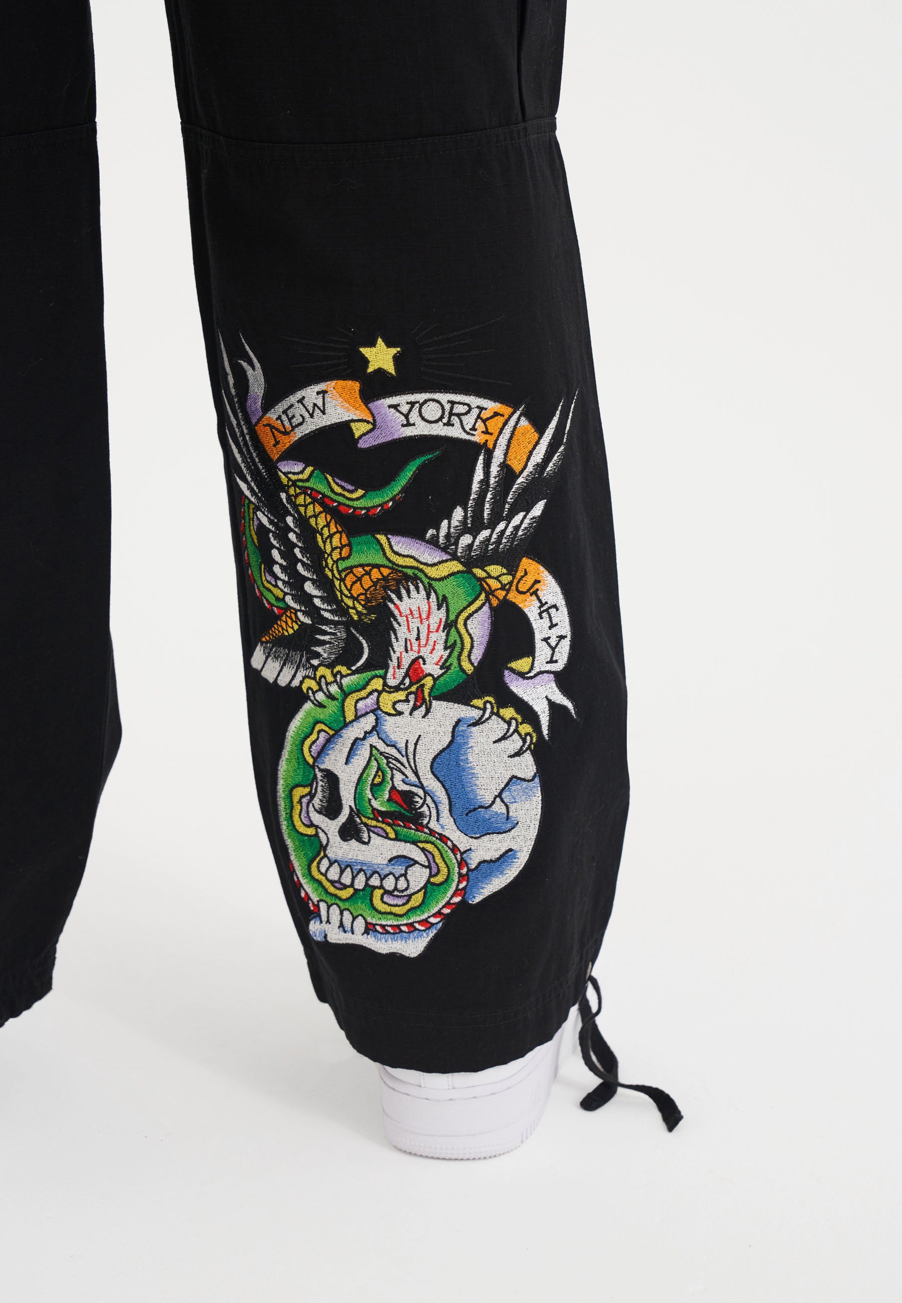 Essas calças leves e adaptáveis trazem a marca inconfundível de Ed Hardy, exibindo suas lendárias ilustrações vibrantes de cadernos de desenho remasterizados em bordados.