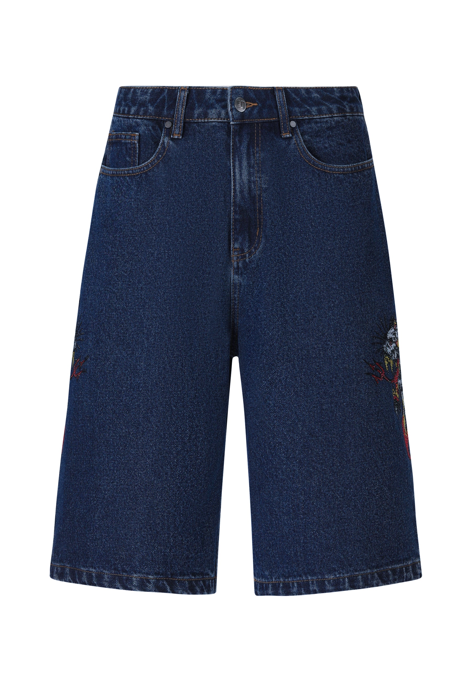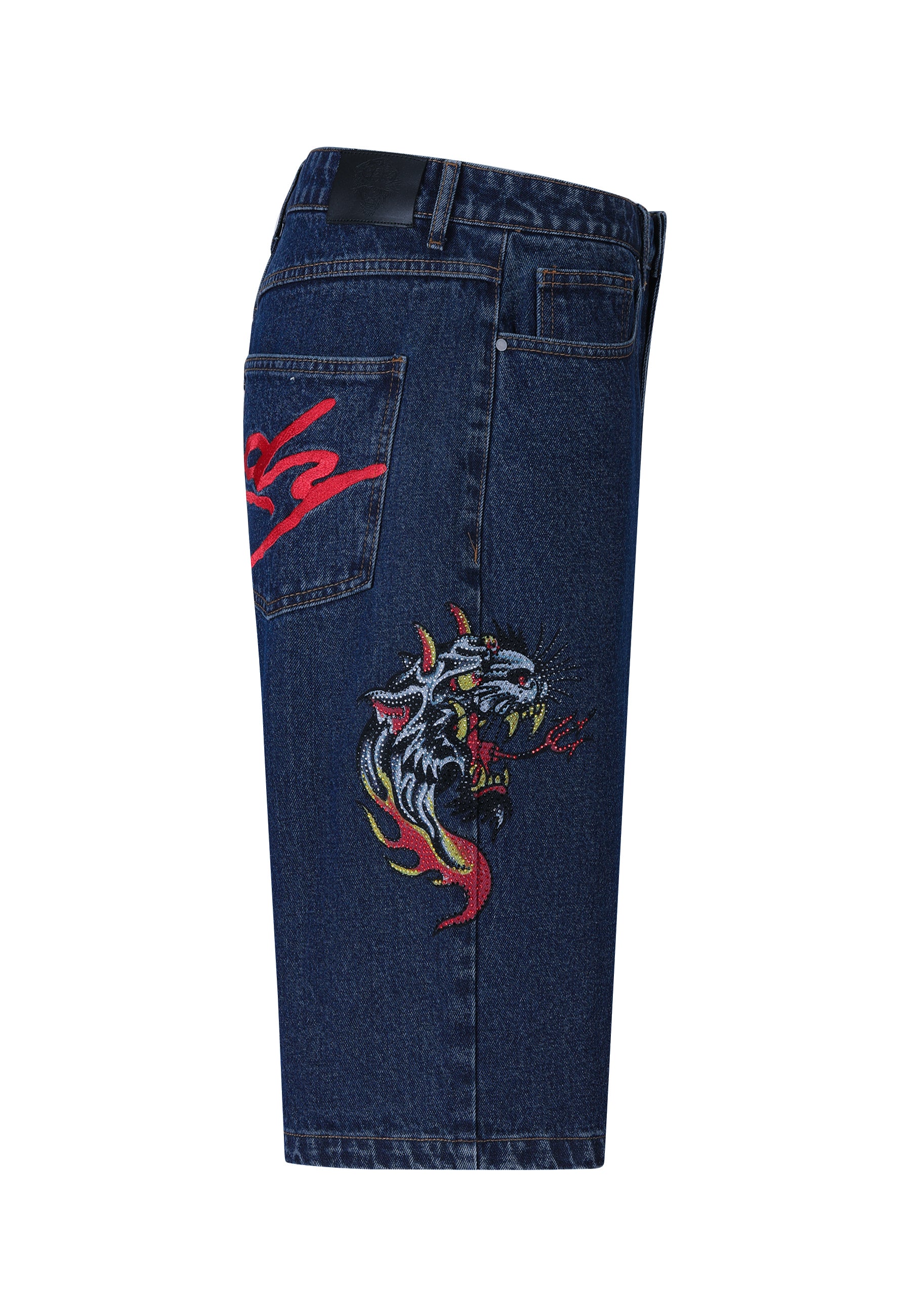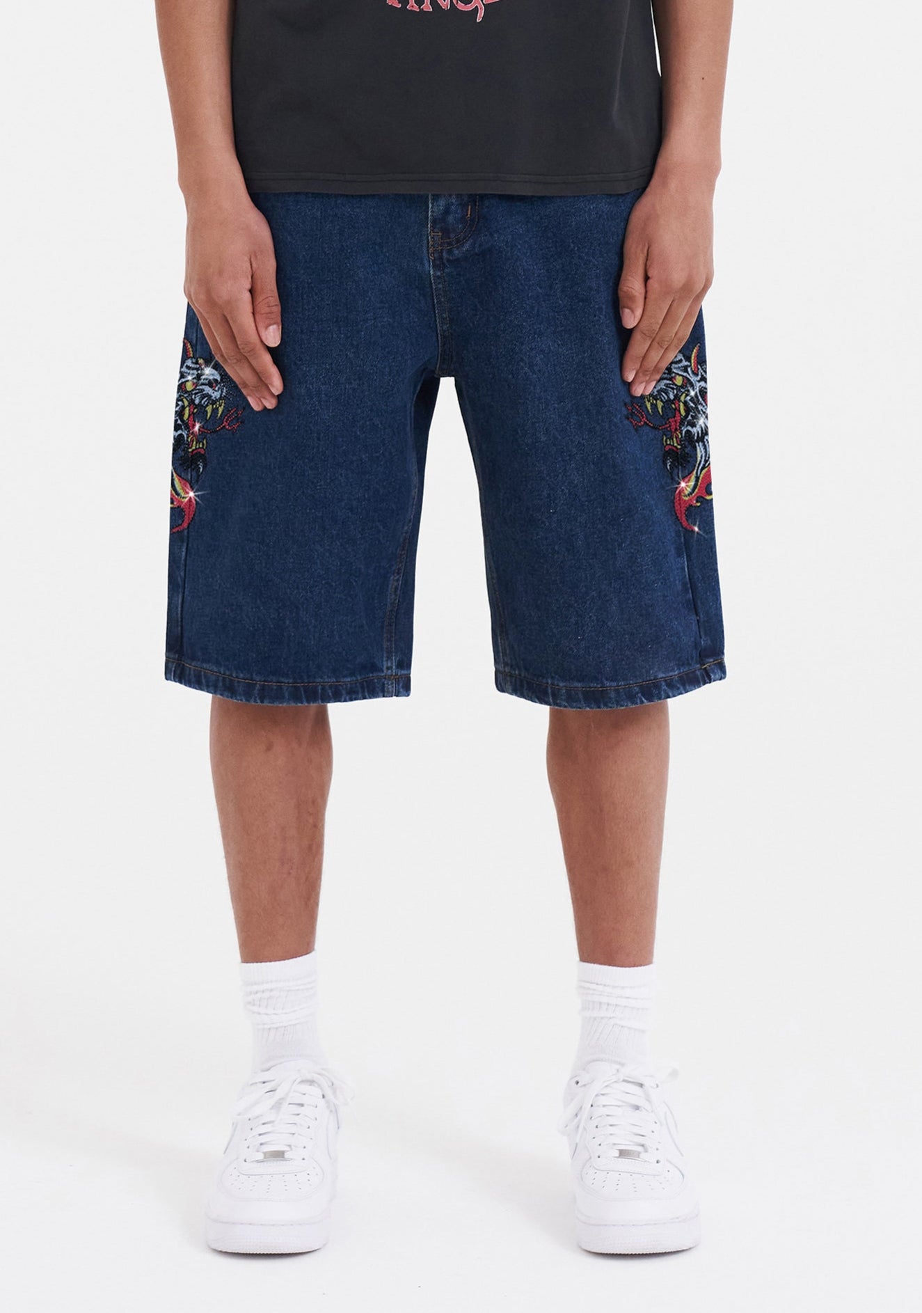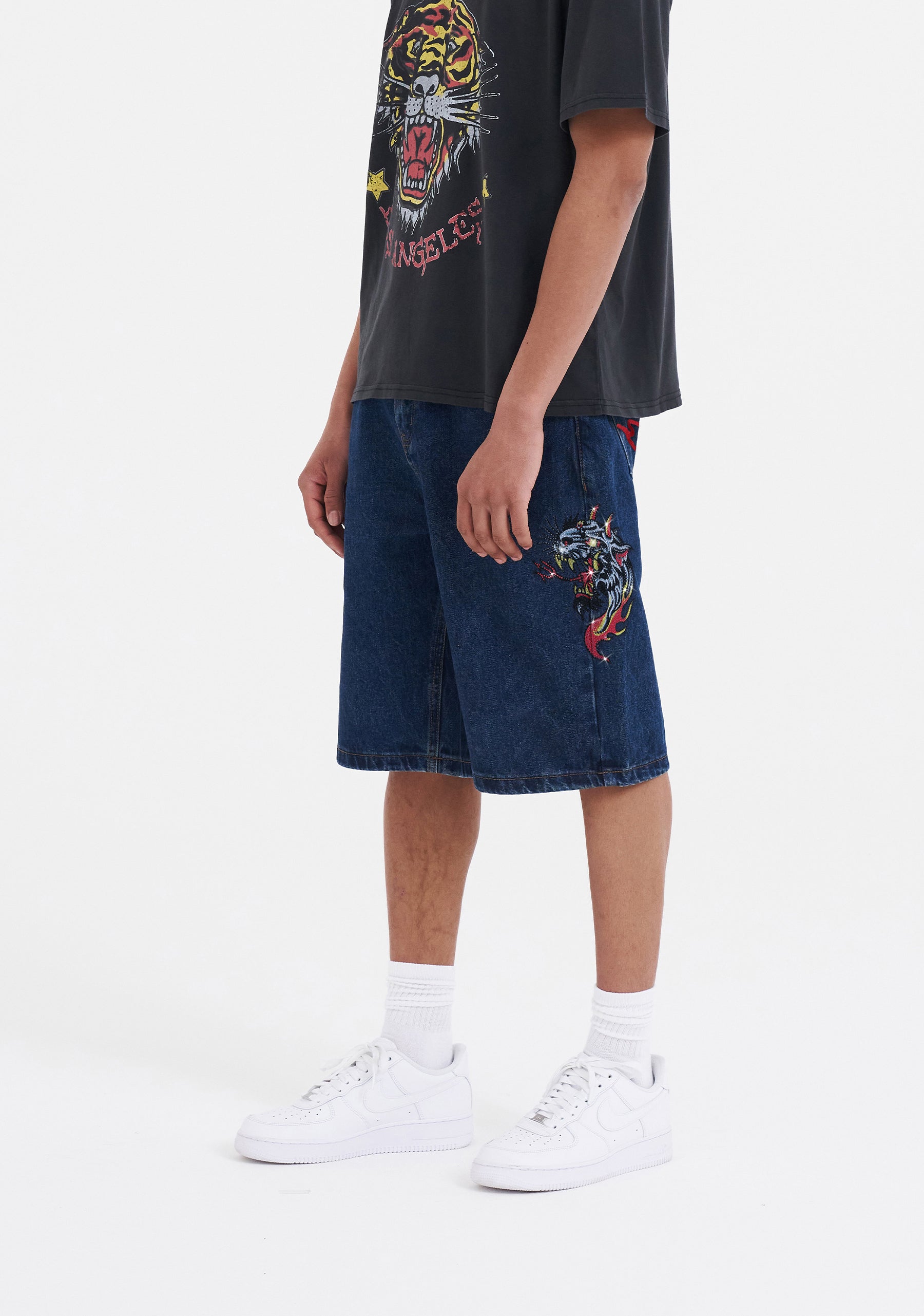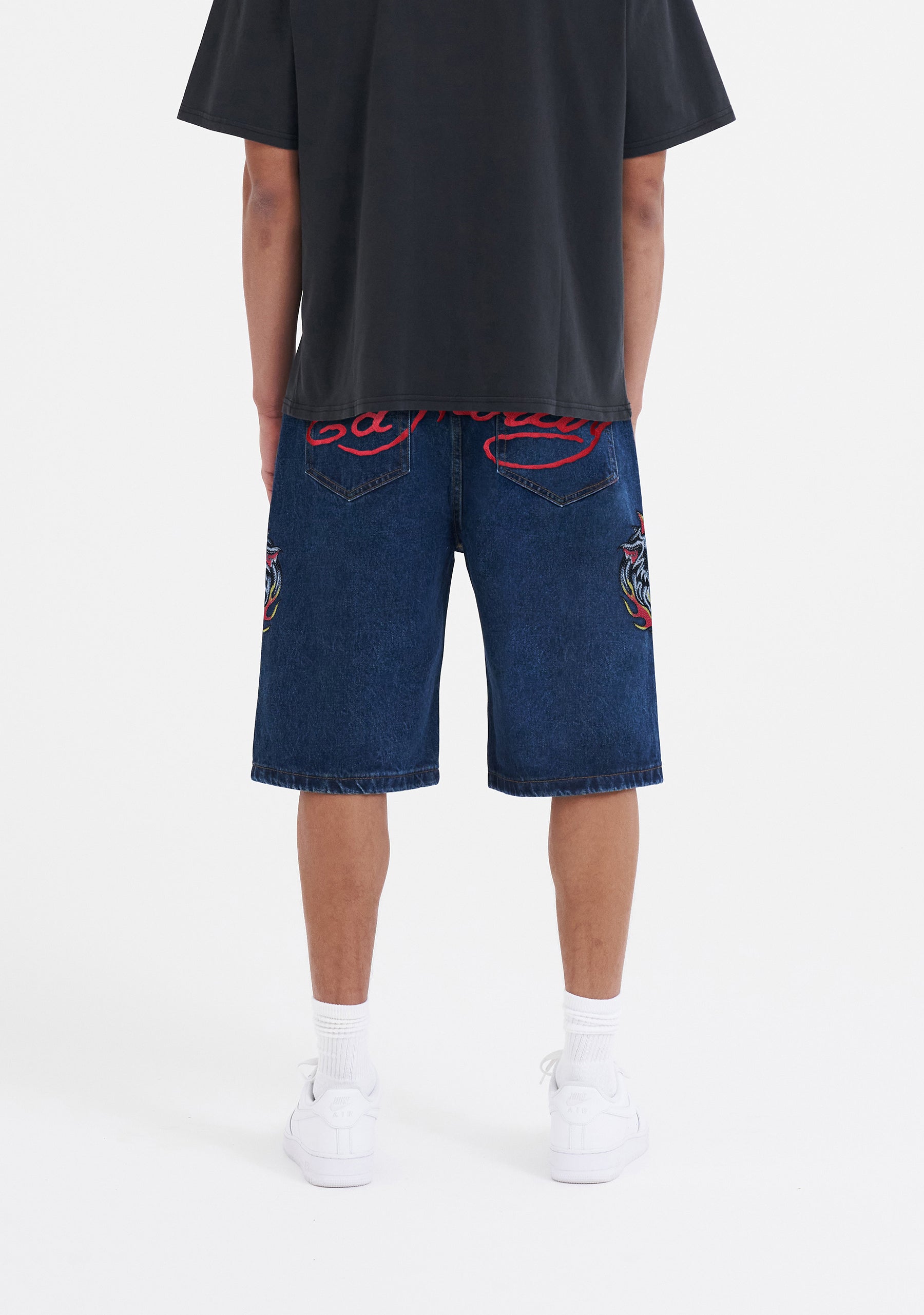 Mens Hellcats Diamante Denim Shorts Shorts - Indigo