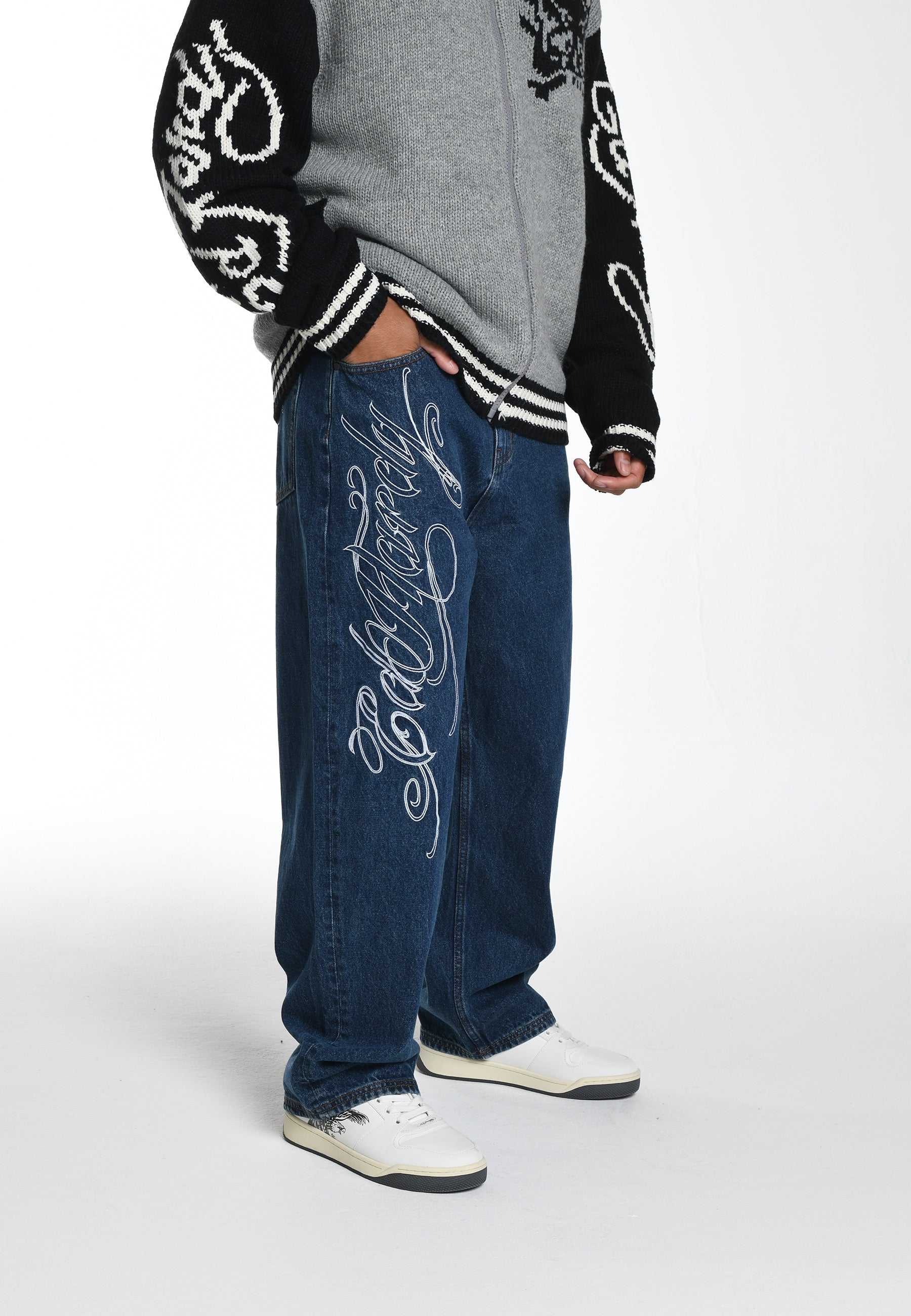 Os jeans Relaxed-Fit apresentam bordados coloridos e estampas em cada perna e o monograma Ed Hardy no bolso traseiro direito. Feito de jeans 100% algodão.