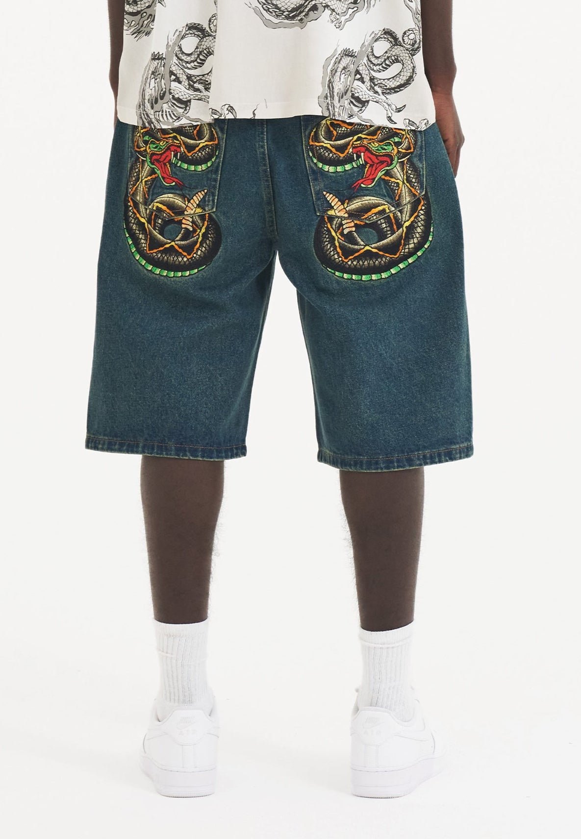 Shorts masculinos pretos Snake Denim Jorts - Verde