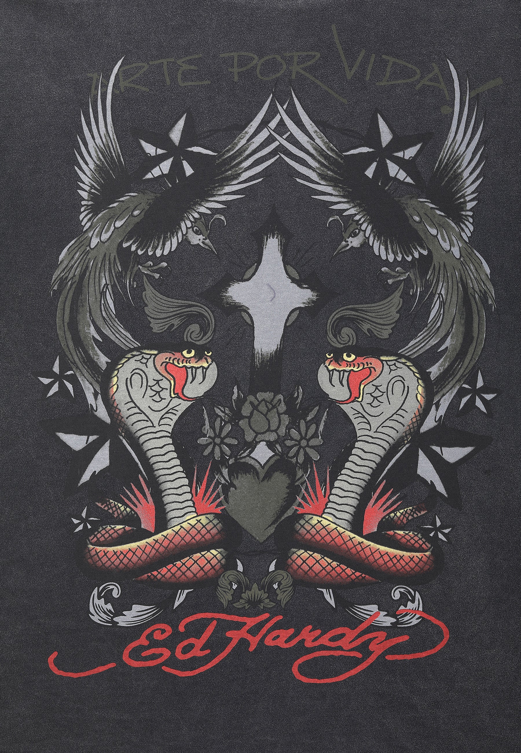 - RISING COBRA TATTOO GRAPHIC AT CENTRE BACK