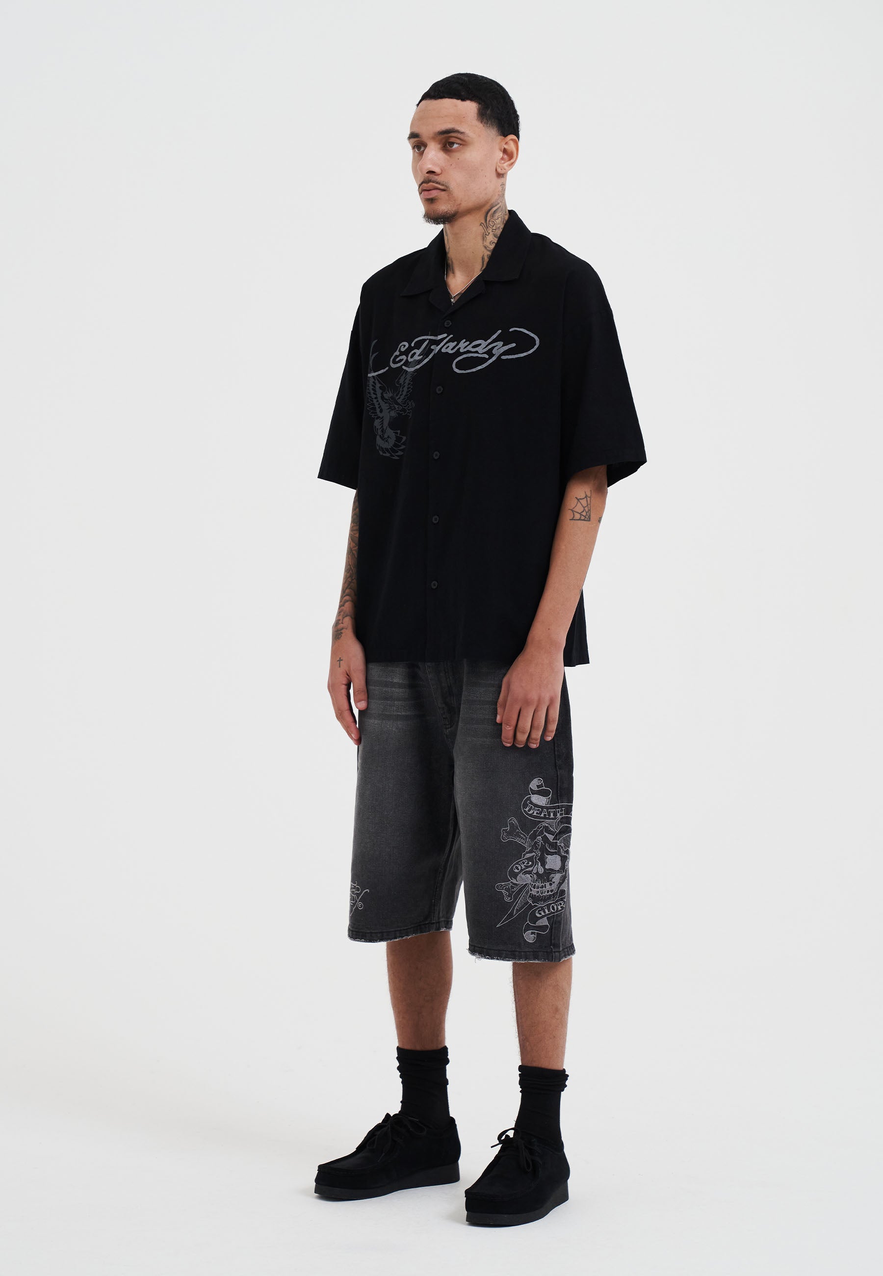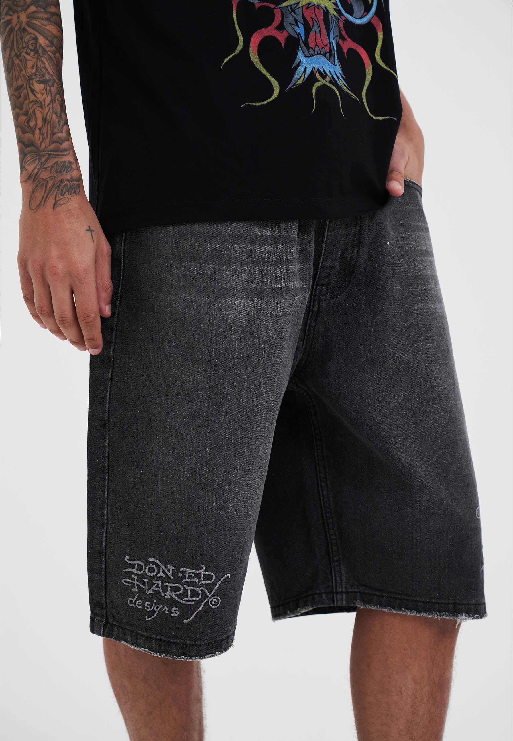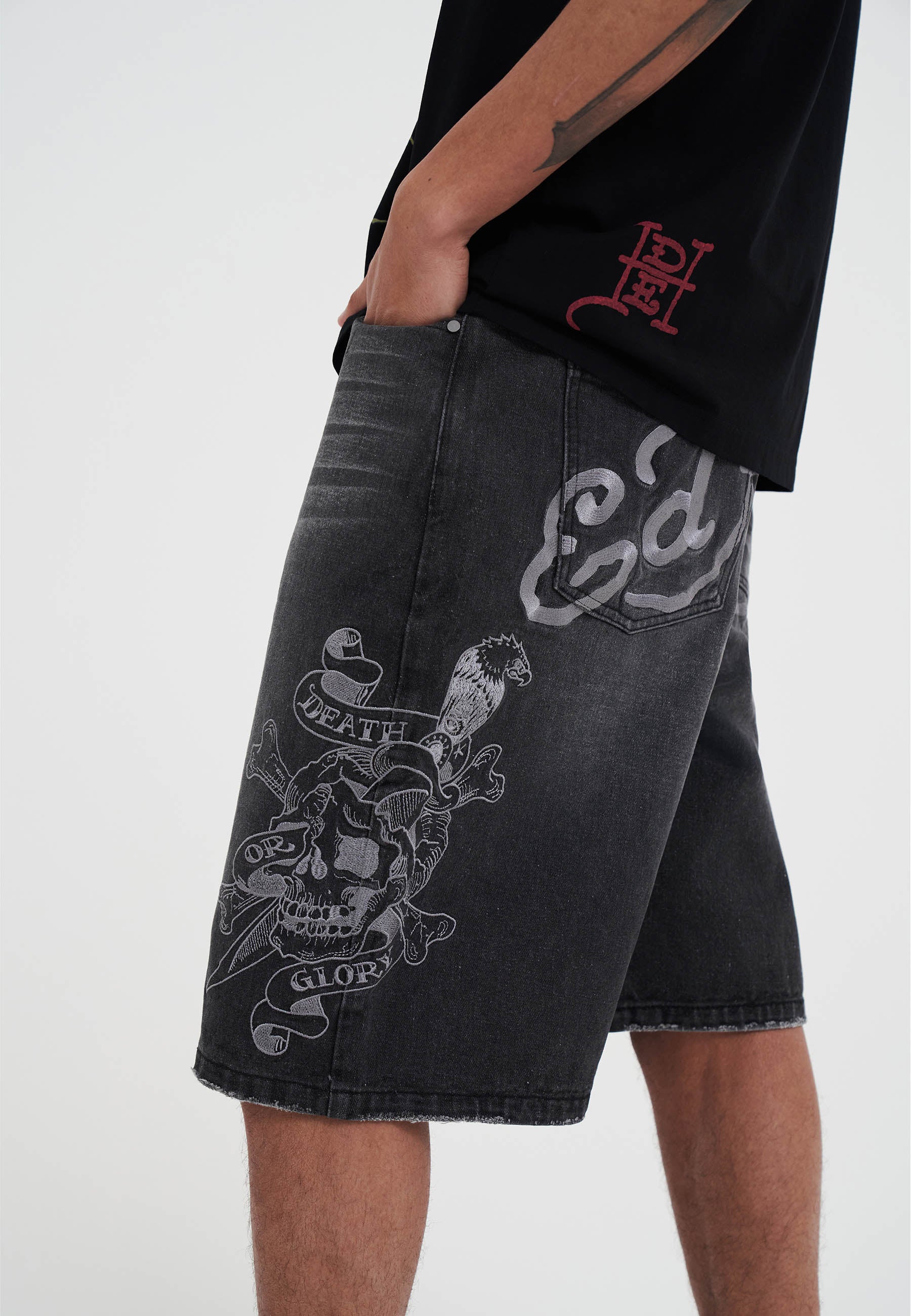 Mens Death Or Glory Denim Skater Jorts Shorts - Black