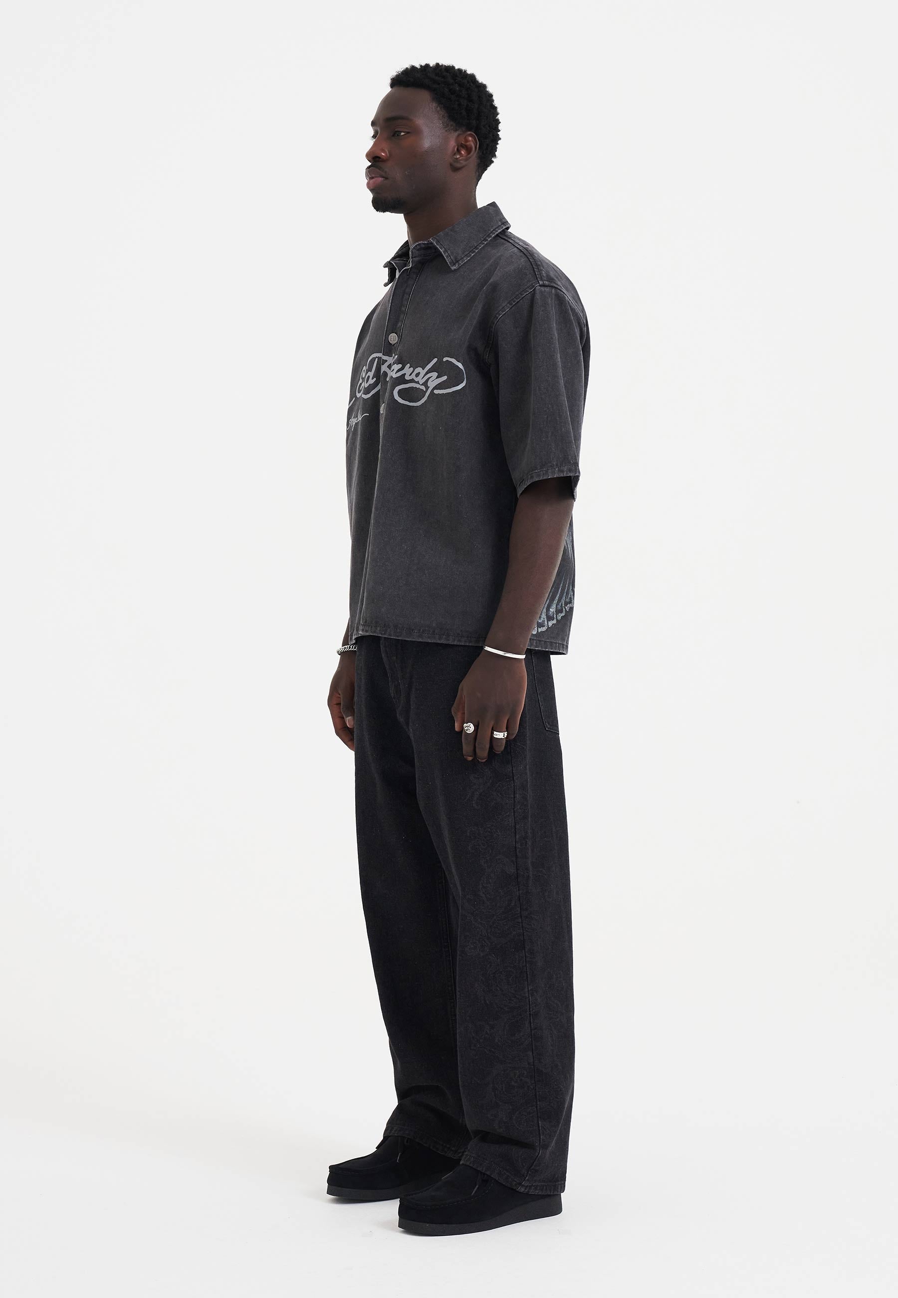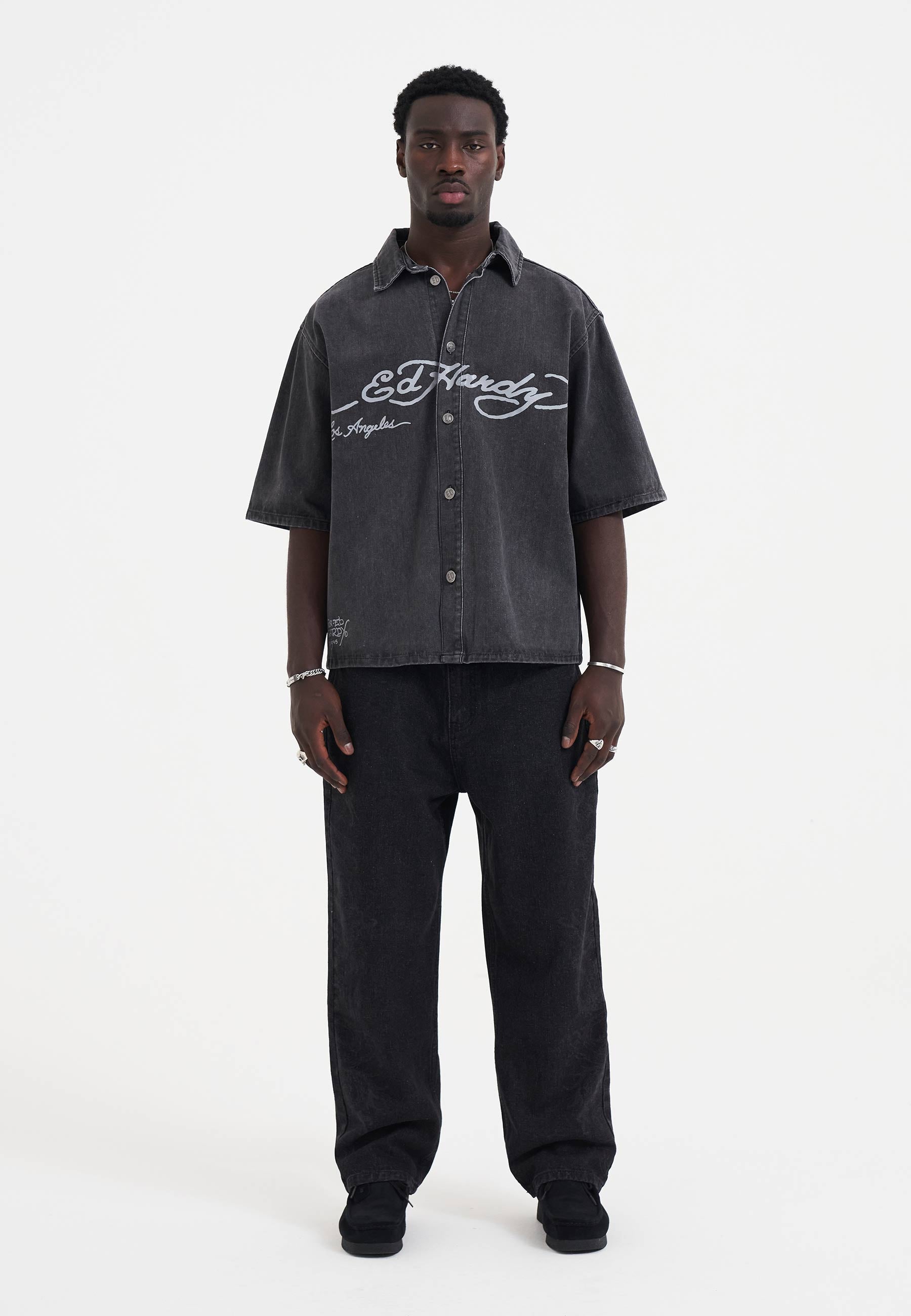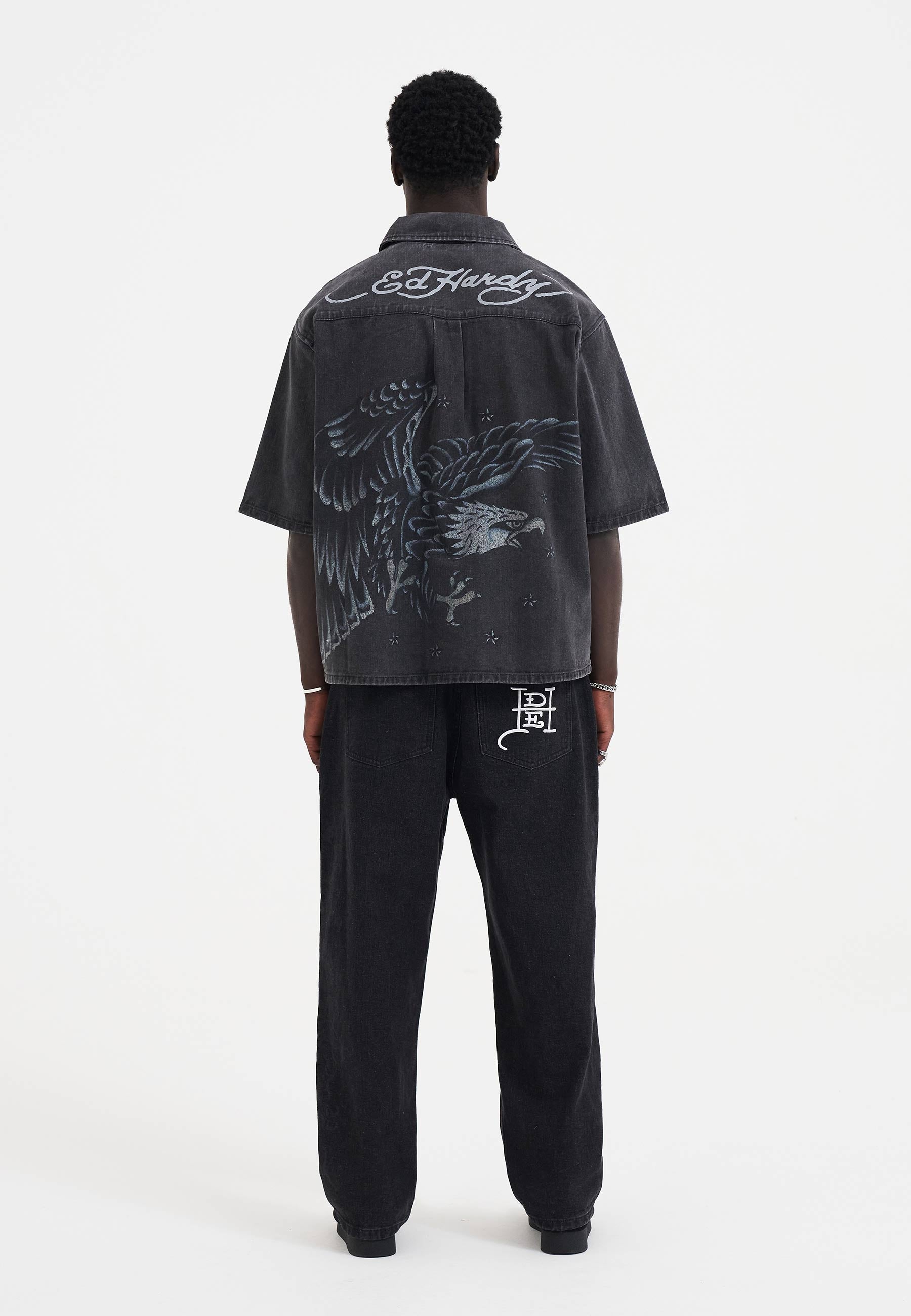 Mens Eagle And Stars Relaxed Denim Shirt - Black